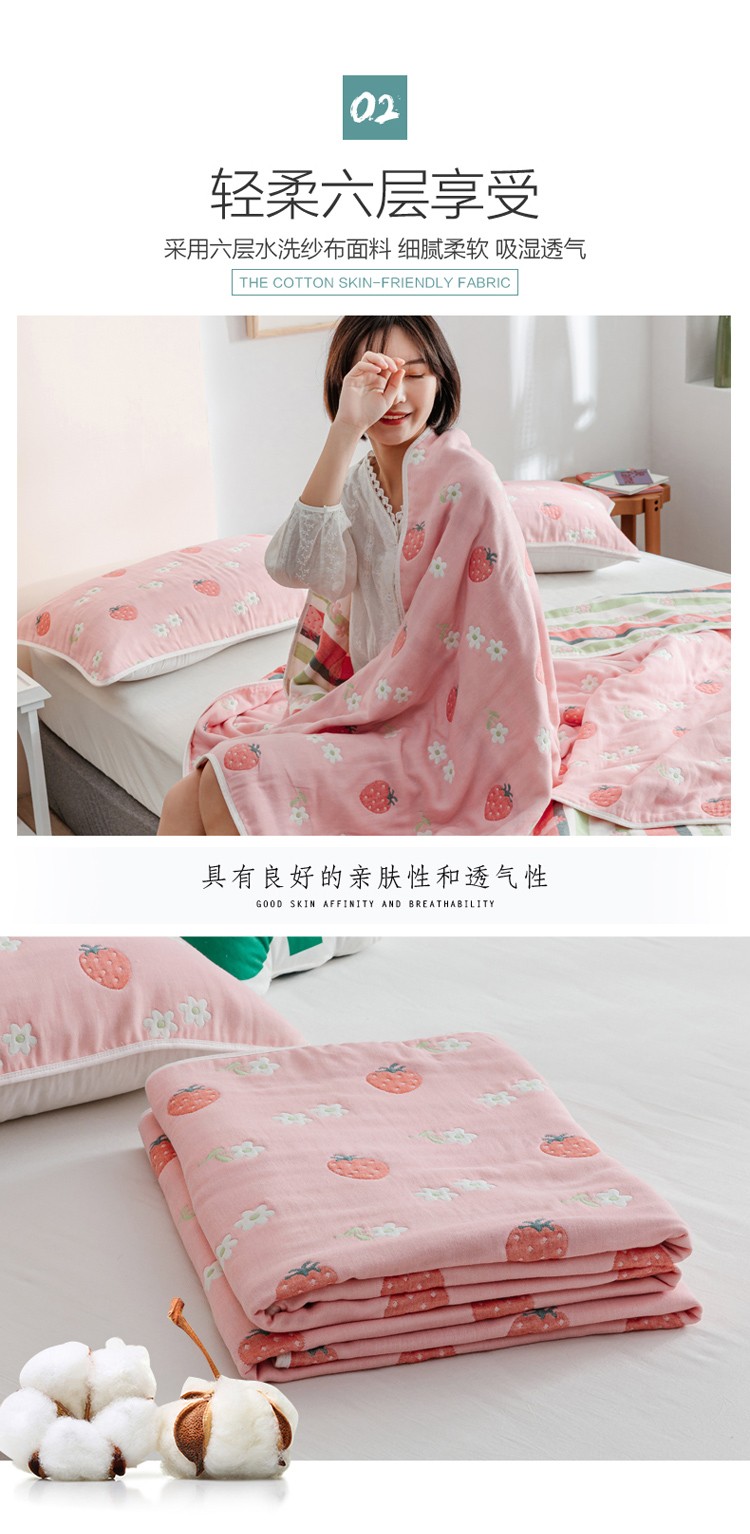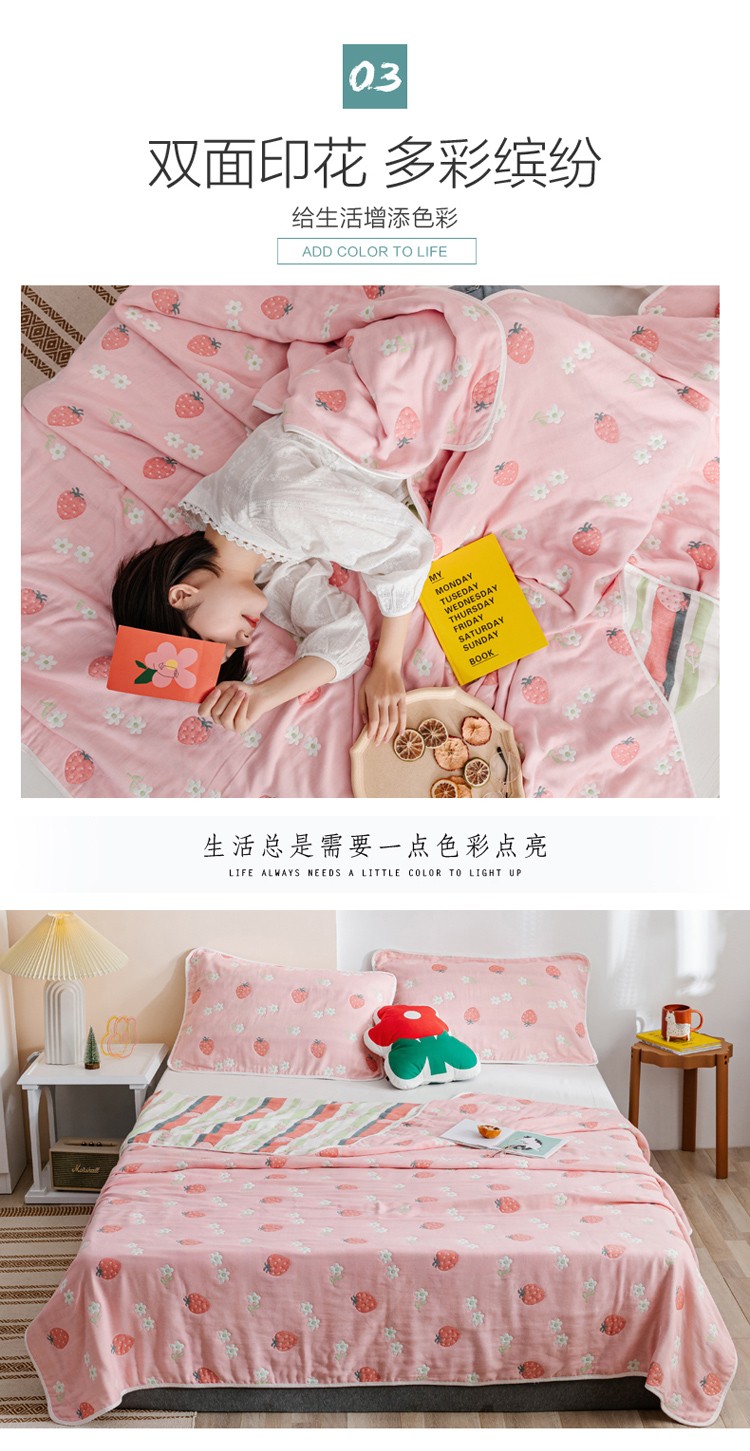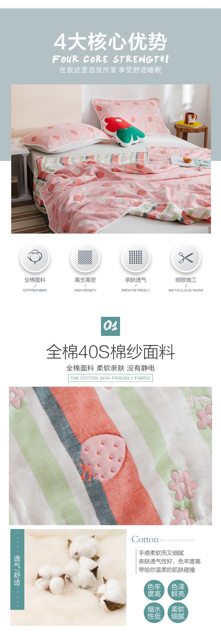 商品名称:朴尔家纺 2021新款六层全棉纱布毛巾被 甜甜草莓-粉
