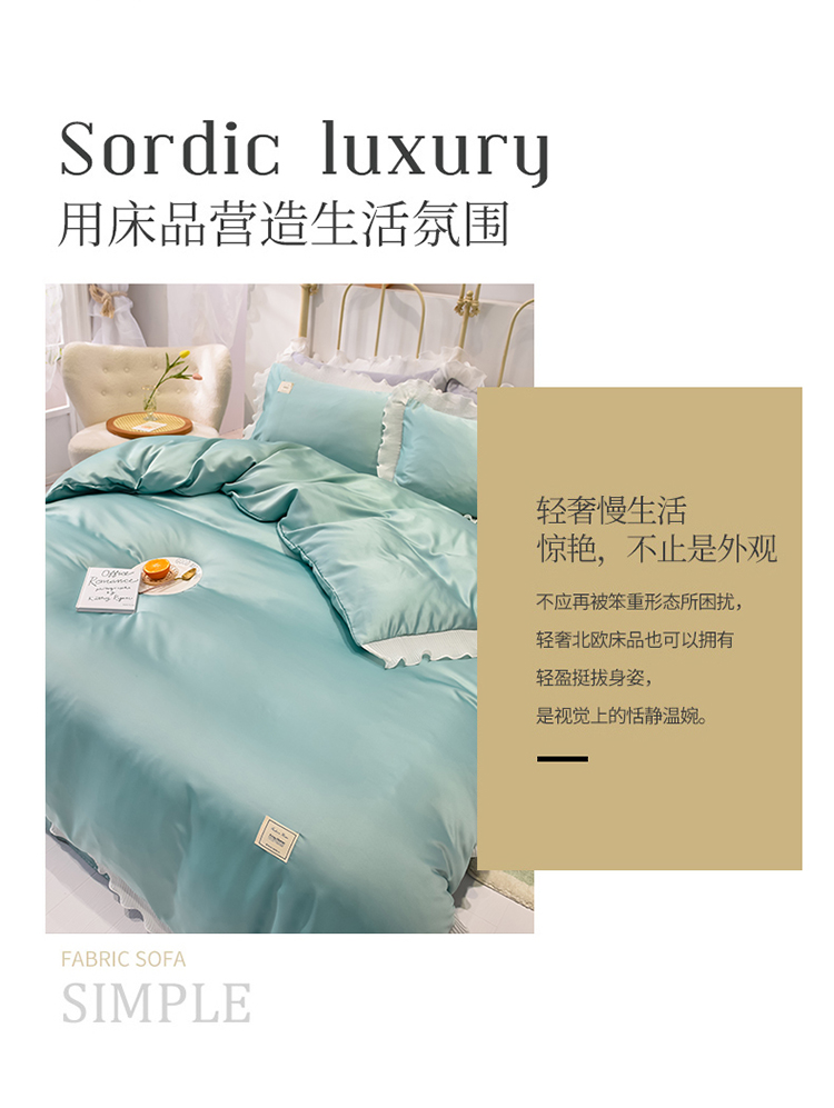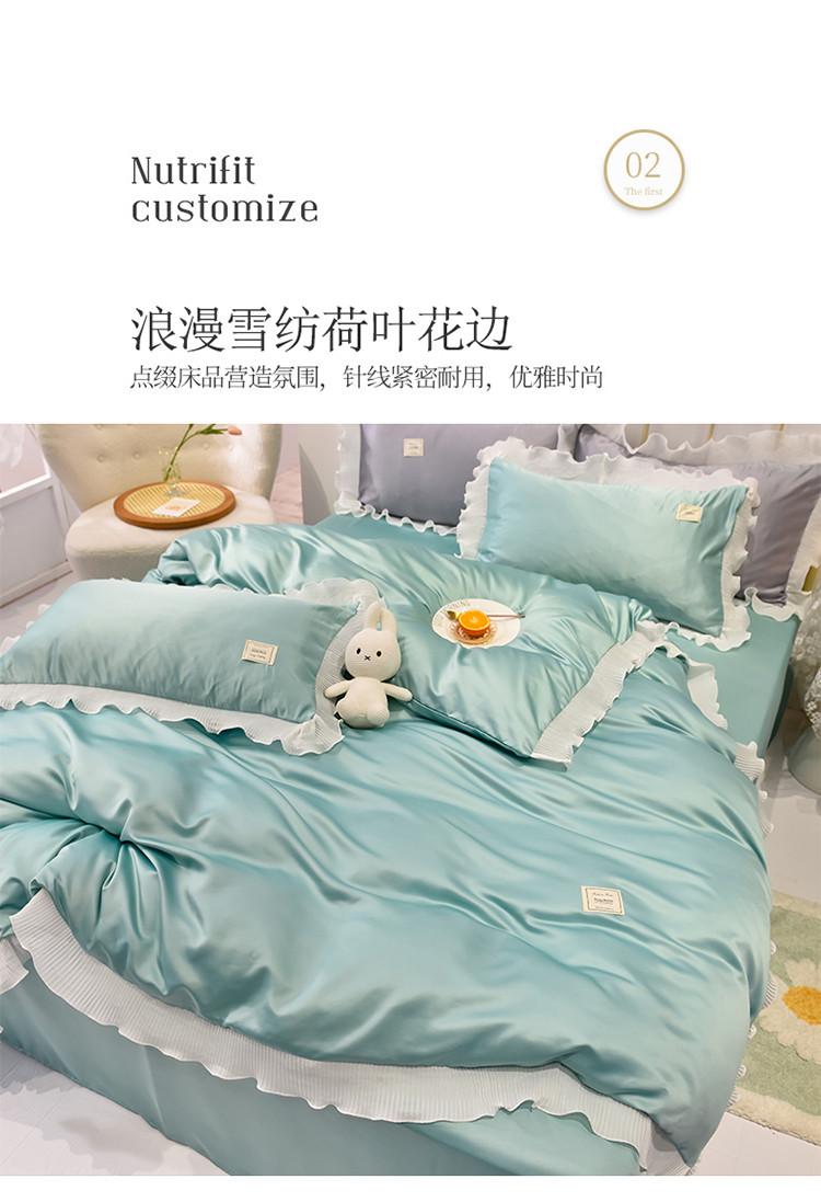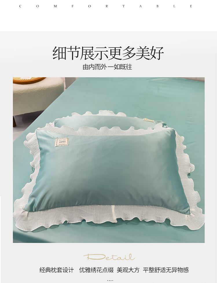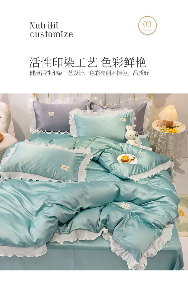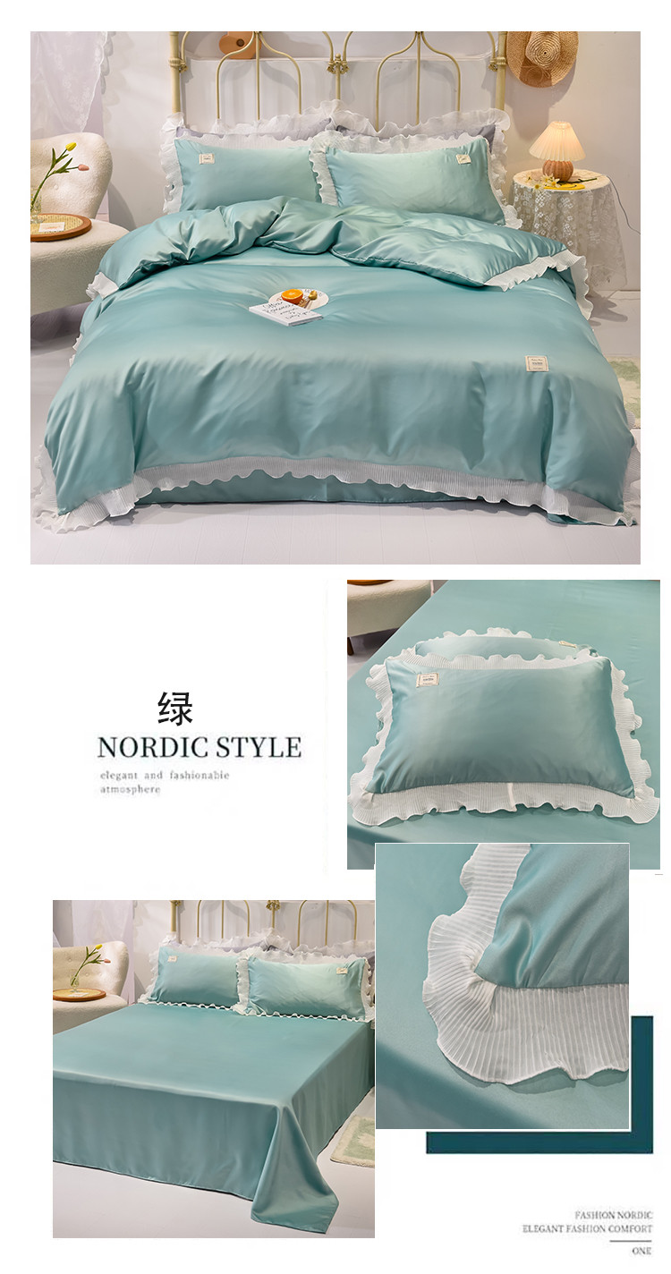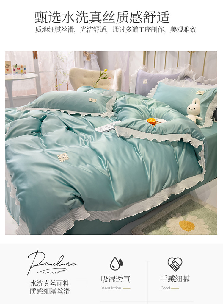 当前位置: 91家纺网 > 商品网购 > 床品套件 > 四件套 > 化纤普通四件套 > 艾米 2025新款水洗真丝雪纺花边揽梦系列四件套 绿