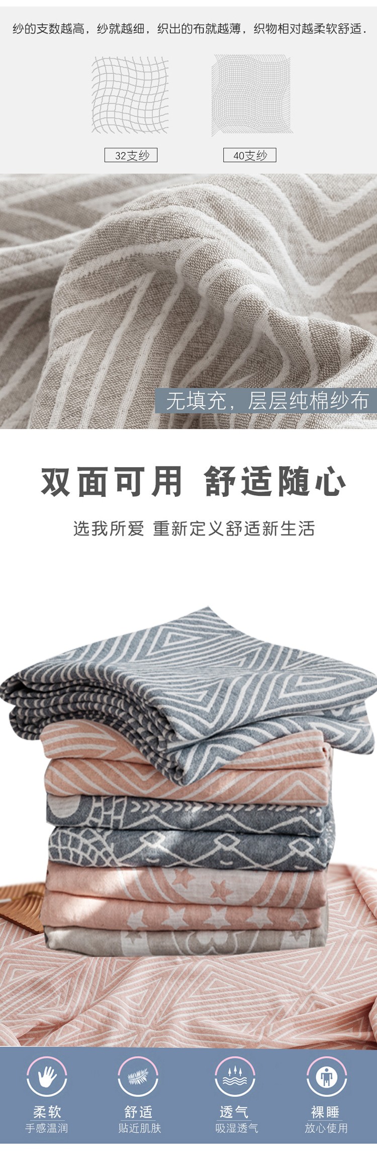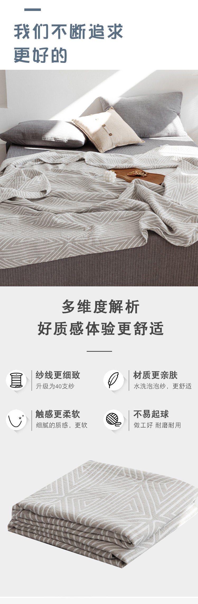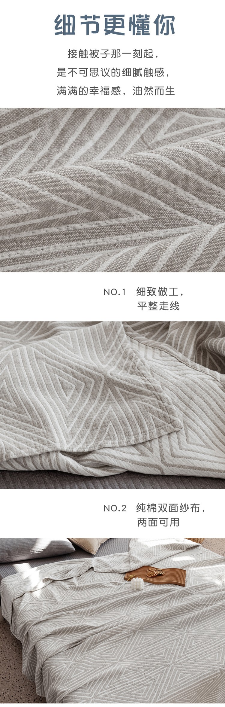 商品名称:朴尔家纺 新款加厚三层水洗棉全棉纱布毛巾被 等边三角-浅灰