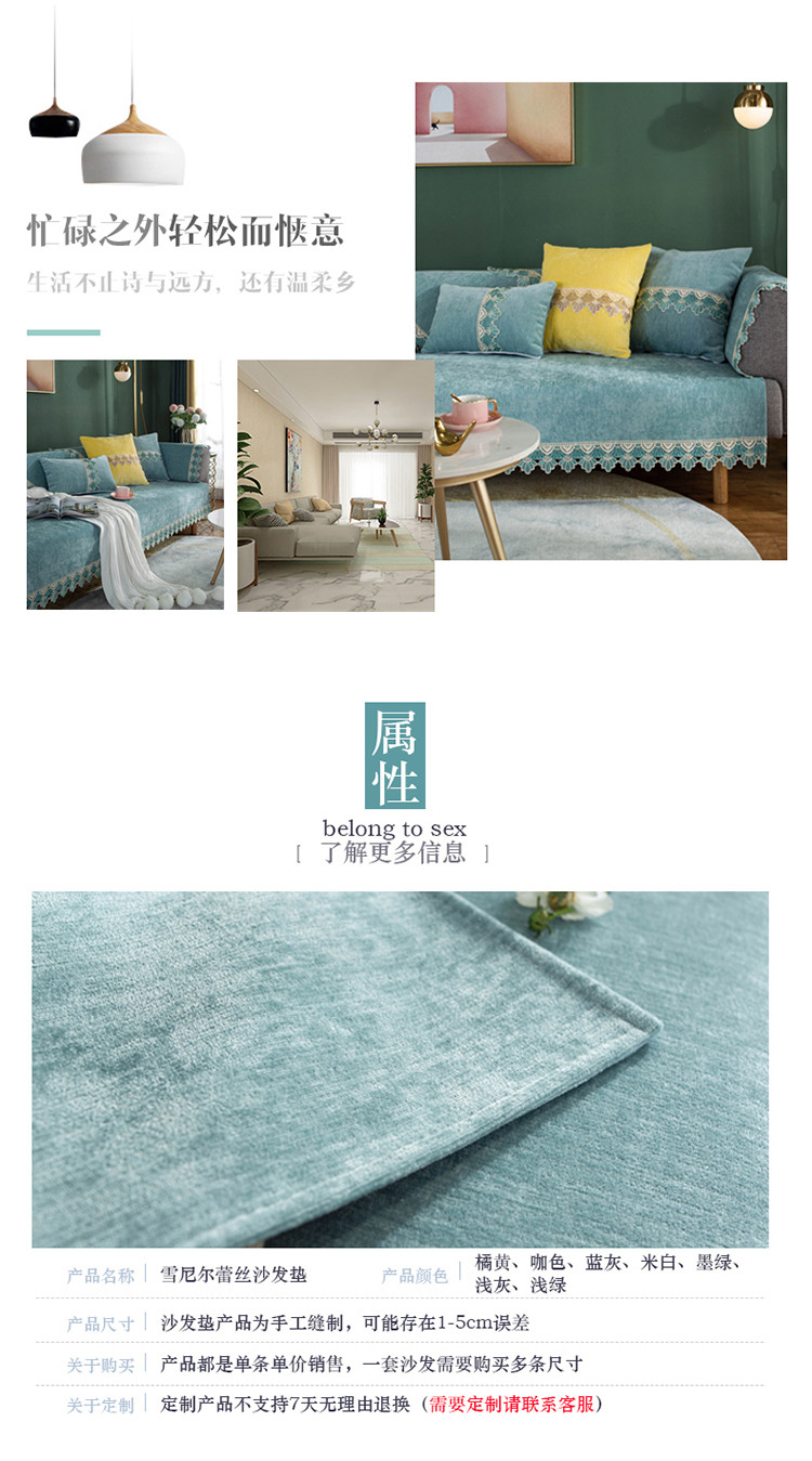 商品名称:(总)共鸣沙发垫 北欧简约沙发垫四季通用防滑雪尼尔沙发套罩