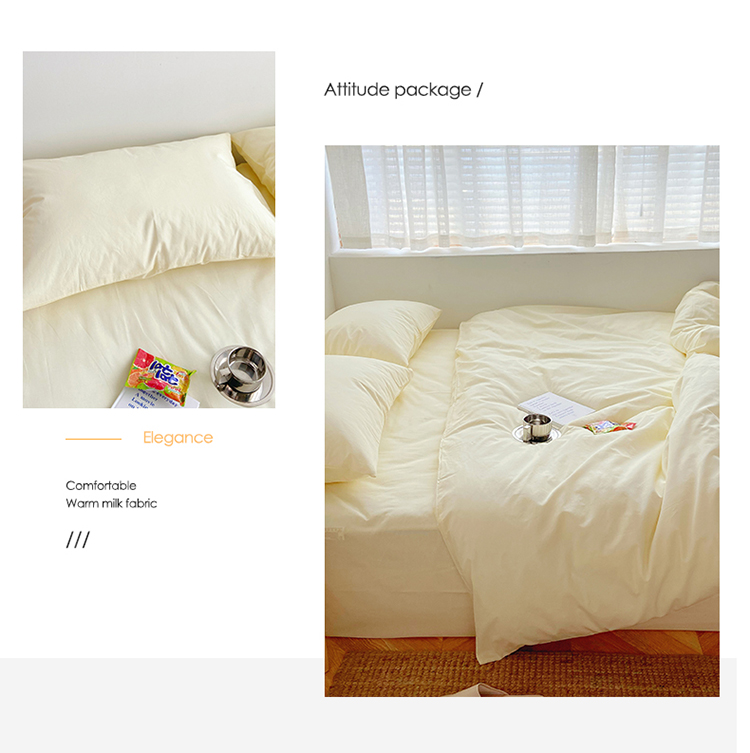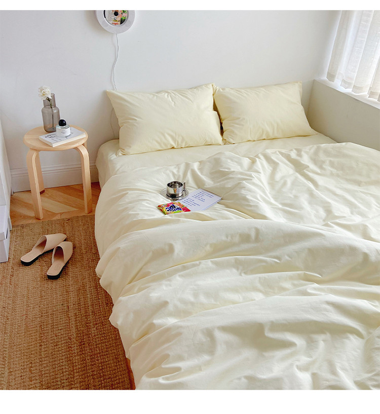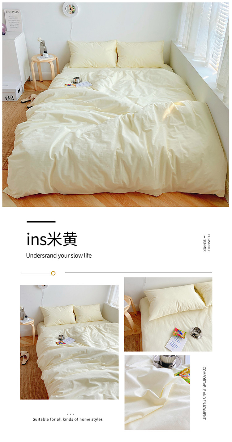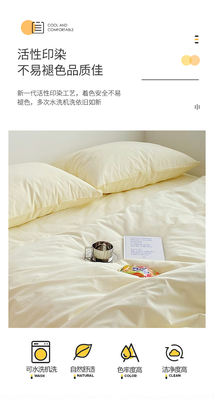 雅居纺家纺 2022新款全棉水洗棉四件套 ins米黄