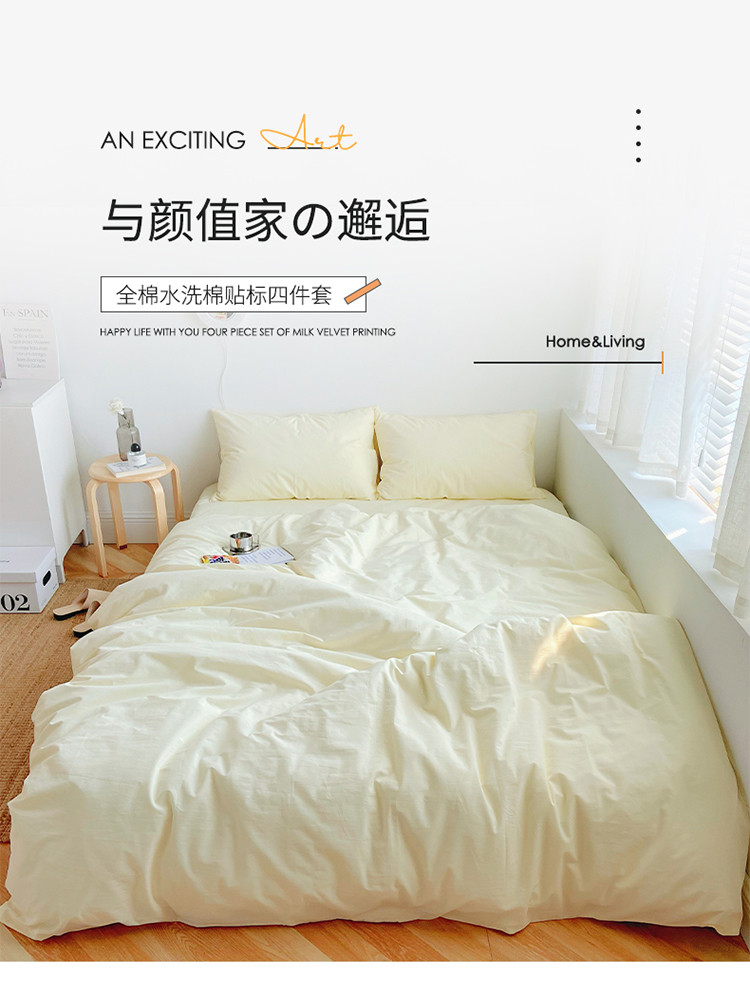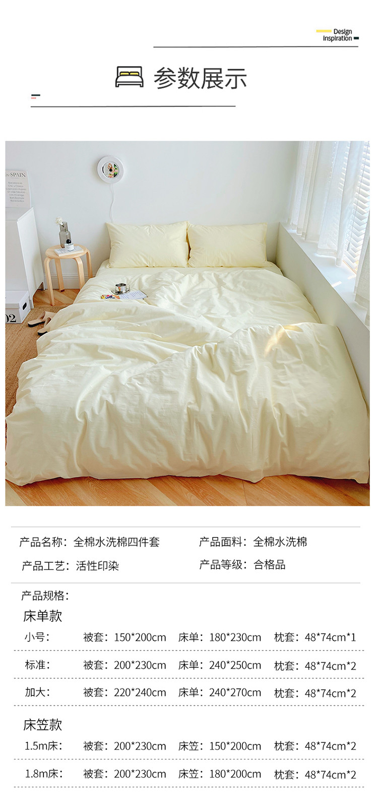 (总)雅居纺家纺 2022新款全棉水洗棉四件套,Ins粉蓝,ins浅蓝,白+墨子绿,白+绅士红,低调灰,低调灰绅士灰,豆绿+米黄,复古绿卡其,果绿绅士黄,焦糖咖啡,咖啡+卡其,米黄,米黄+明黄,米黄咖啡,米黄水绿,墨子绿,墨子绿卡其,墨子绿绅士黄,牛仔蓝低调灰,浅蓝深灰,清雅蓝绅士灰,绅士红卡其,绅士黄卡其,绅士灰,新蓝米黄