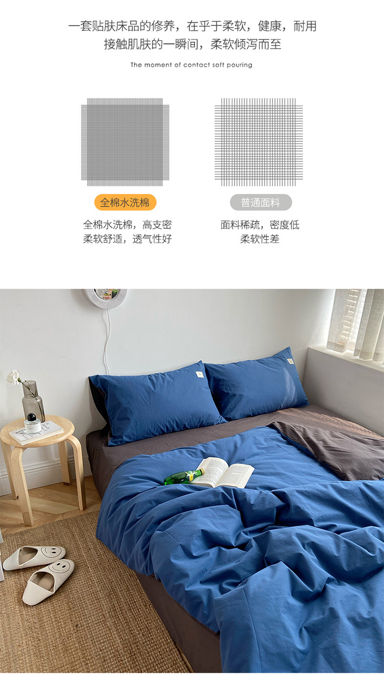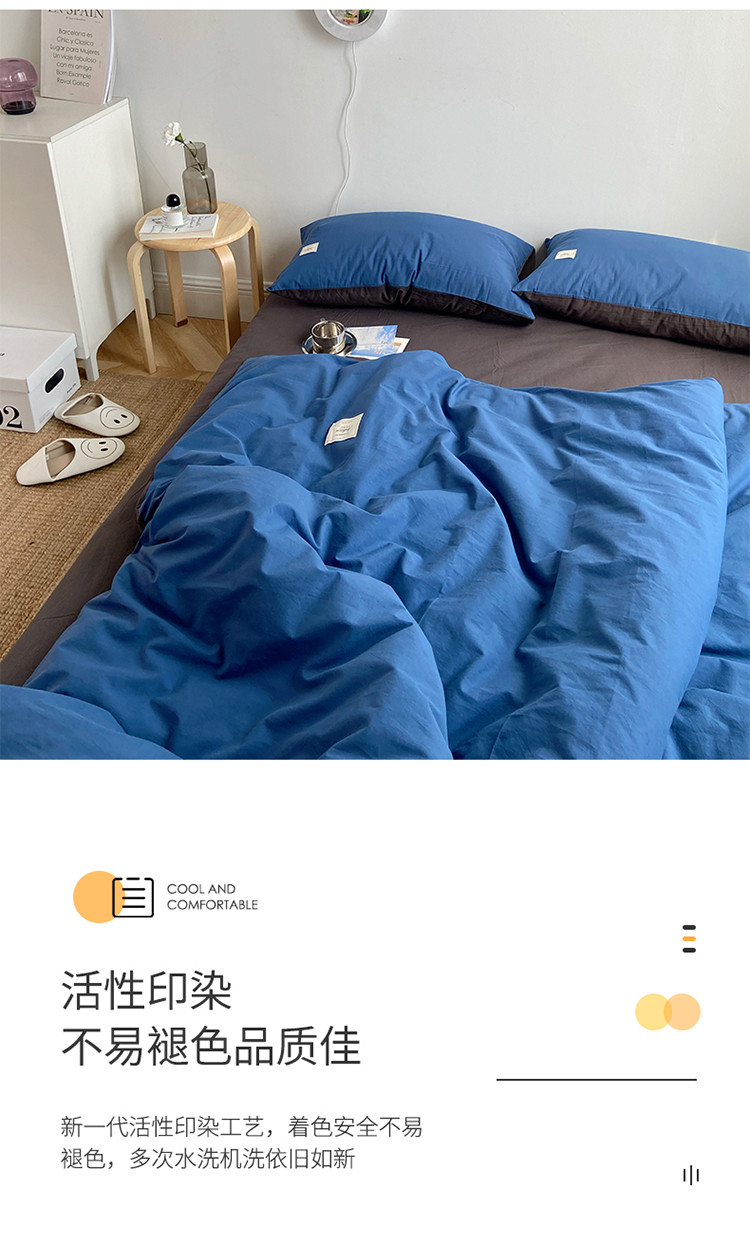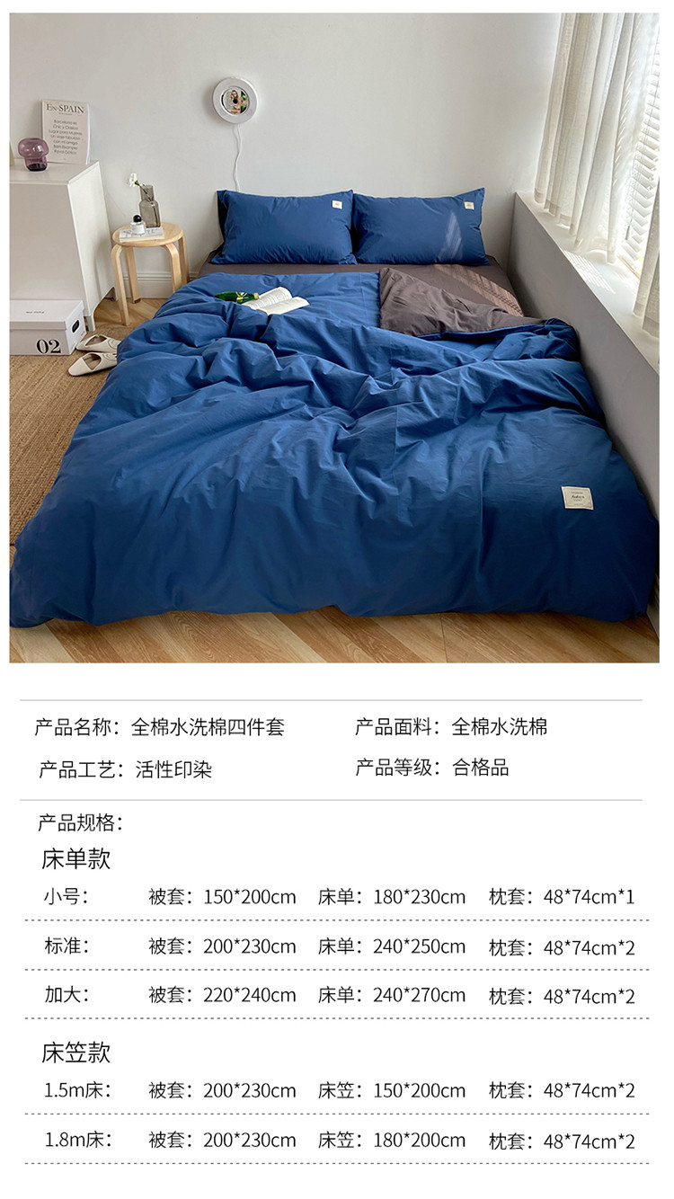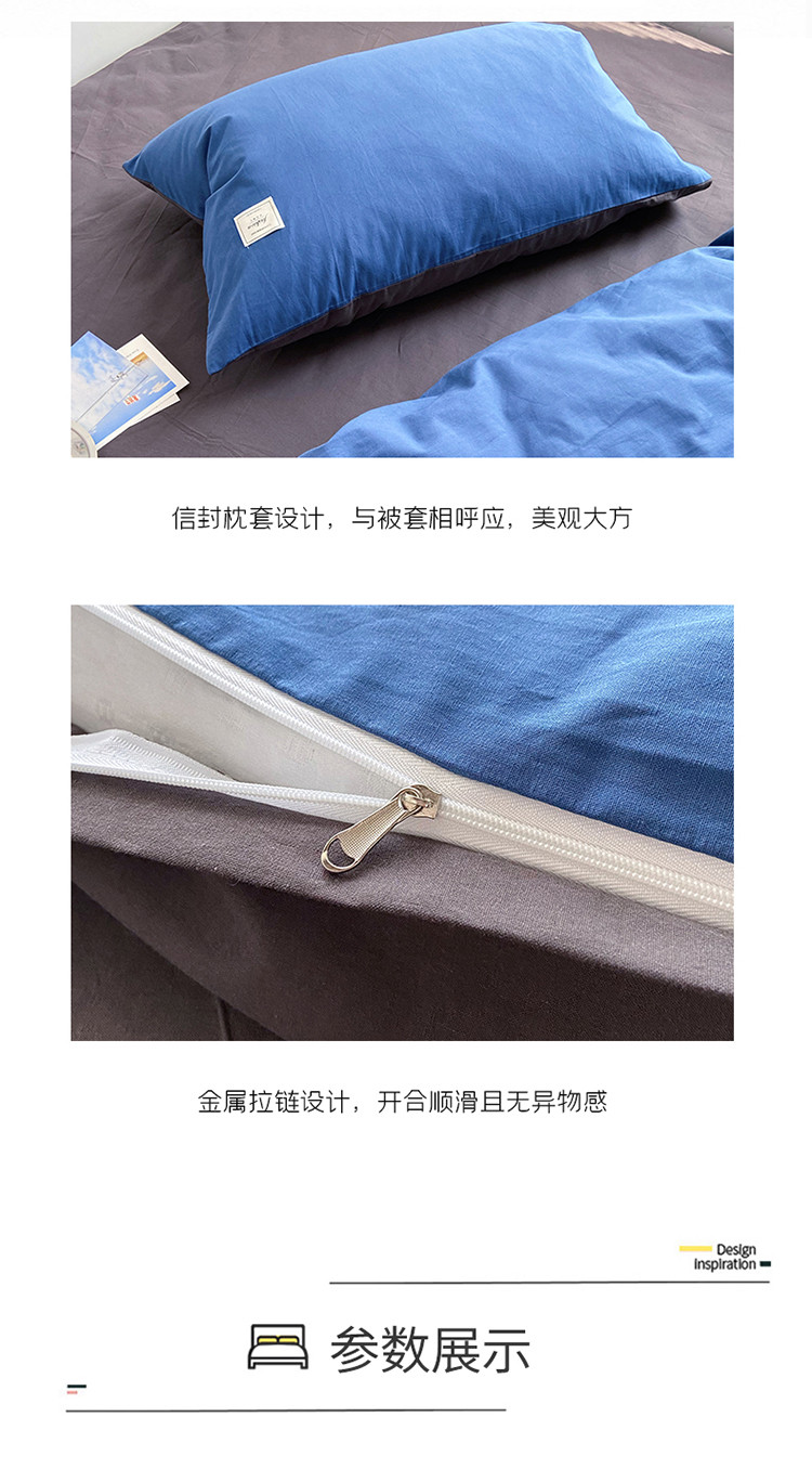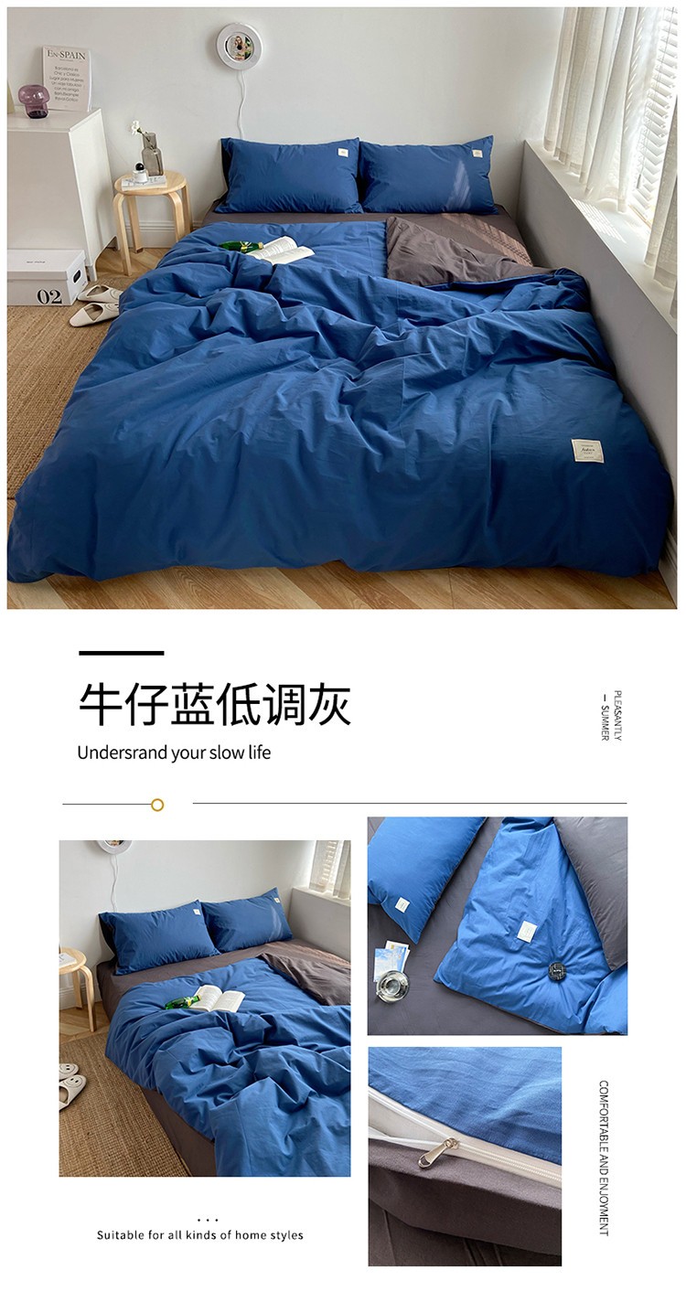 商品名称:雅居纺家纺 2022新款全棉水洗棉四件套 牛仔蓝低调灰