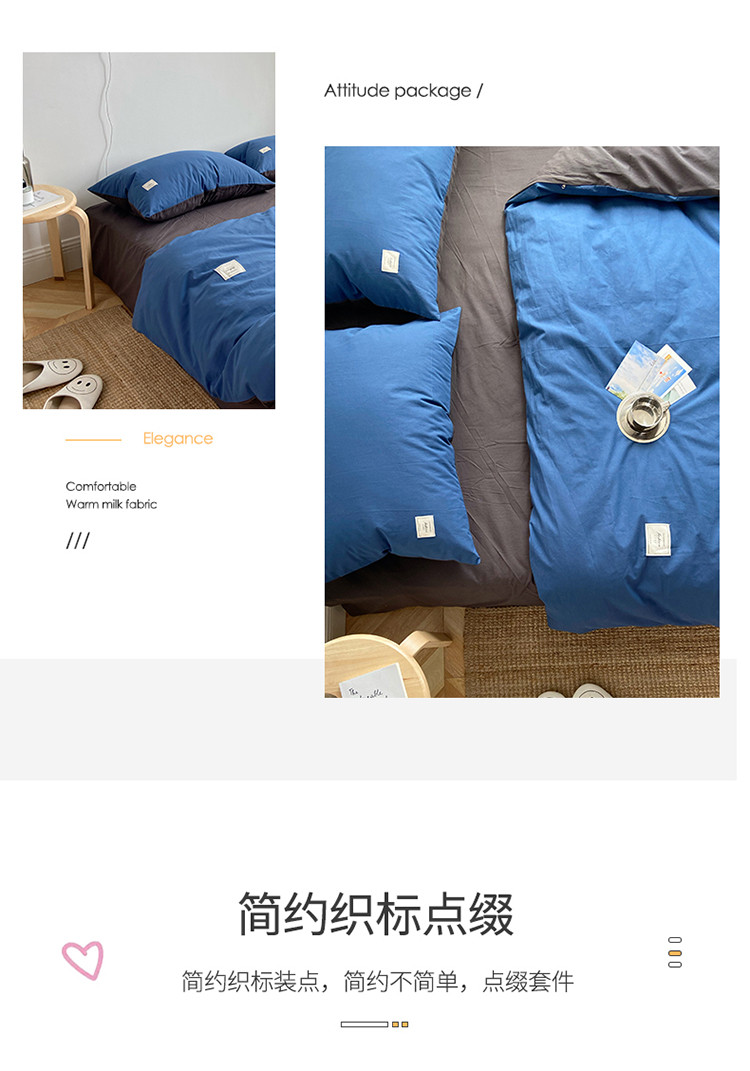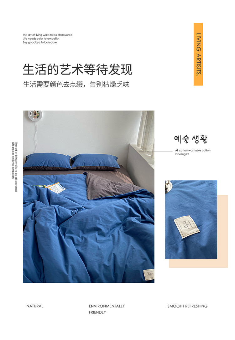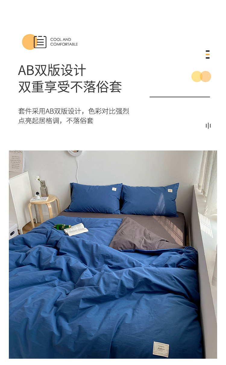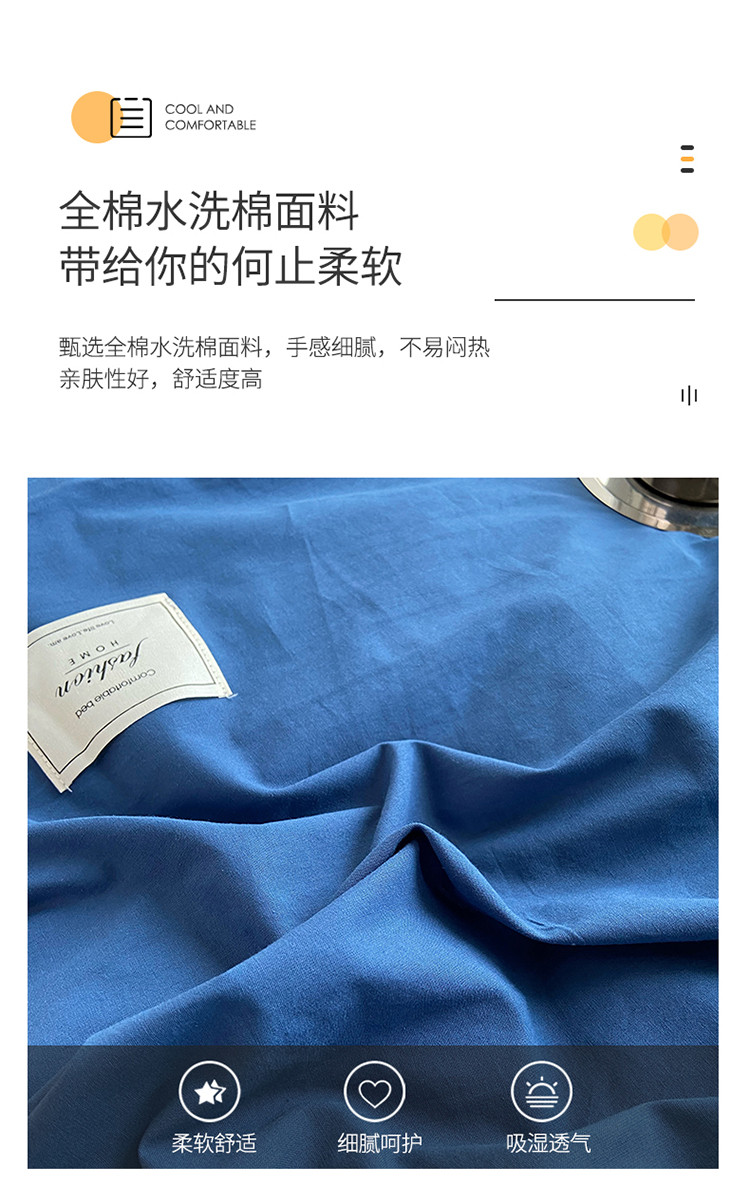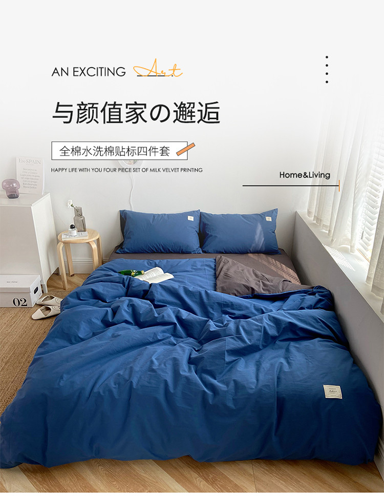商品名称:雅居纺家纺 2022新款全棉水洗棉四件套 牛仔蓝低调灰
