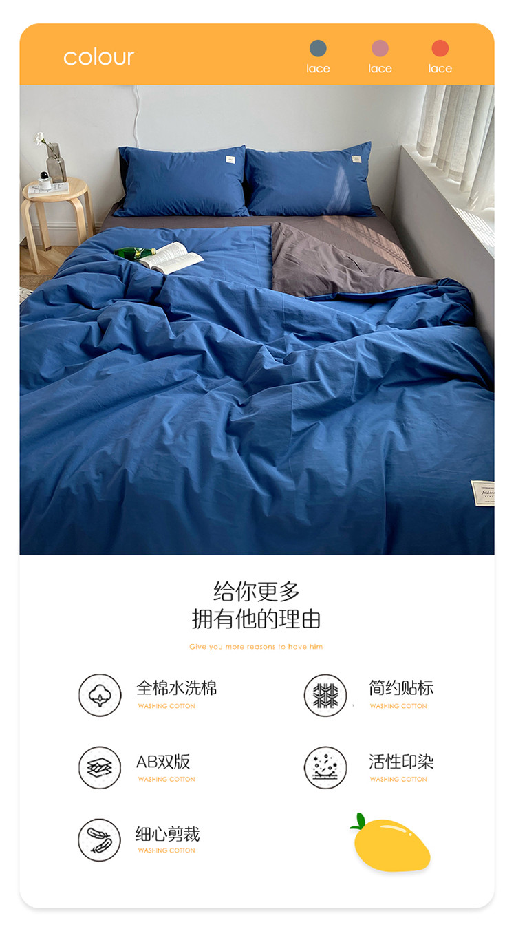 (总)雅居纺家纺 2022新款全棉水洗棉四件套,Ins粉蓝,ins浅蓝,白+墨子绿,白+绅士红,低调灰,低调灰绅士灰,豆绿+米黄,复古绿卡其,果绿绅士黄,焦糖咖啡,咖啡+卡其,米黄,米黄+明黄,米黄咖啡,米黄水绿,墨子绿,墨子绿卡其,墨子绿绅士黄,牛仔蓝低调灰,浅蓝深灰,清雅蓝绅士灰,绅士红卡其,绅士黄卡其,绅士灰,新蓝米黄
