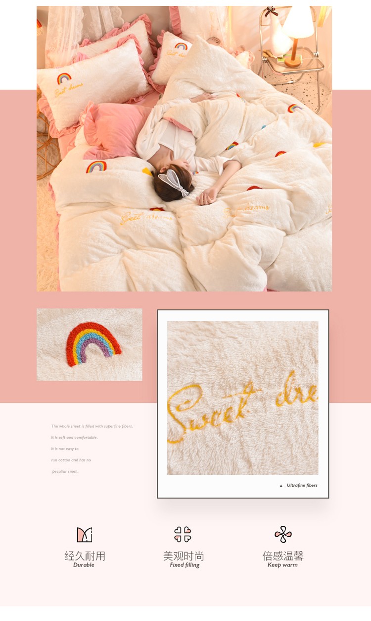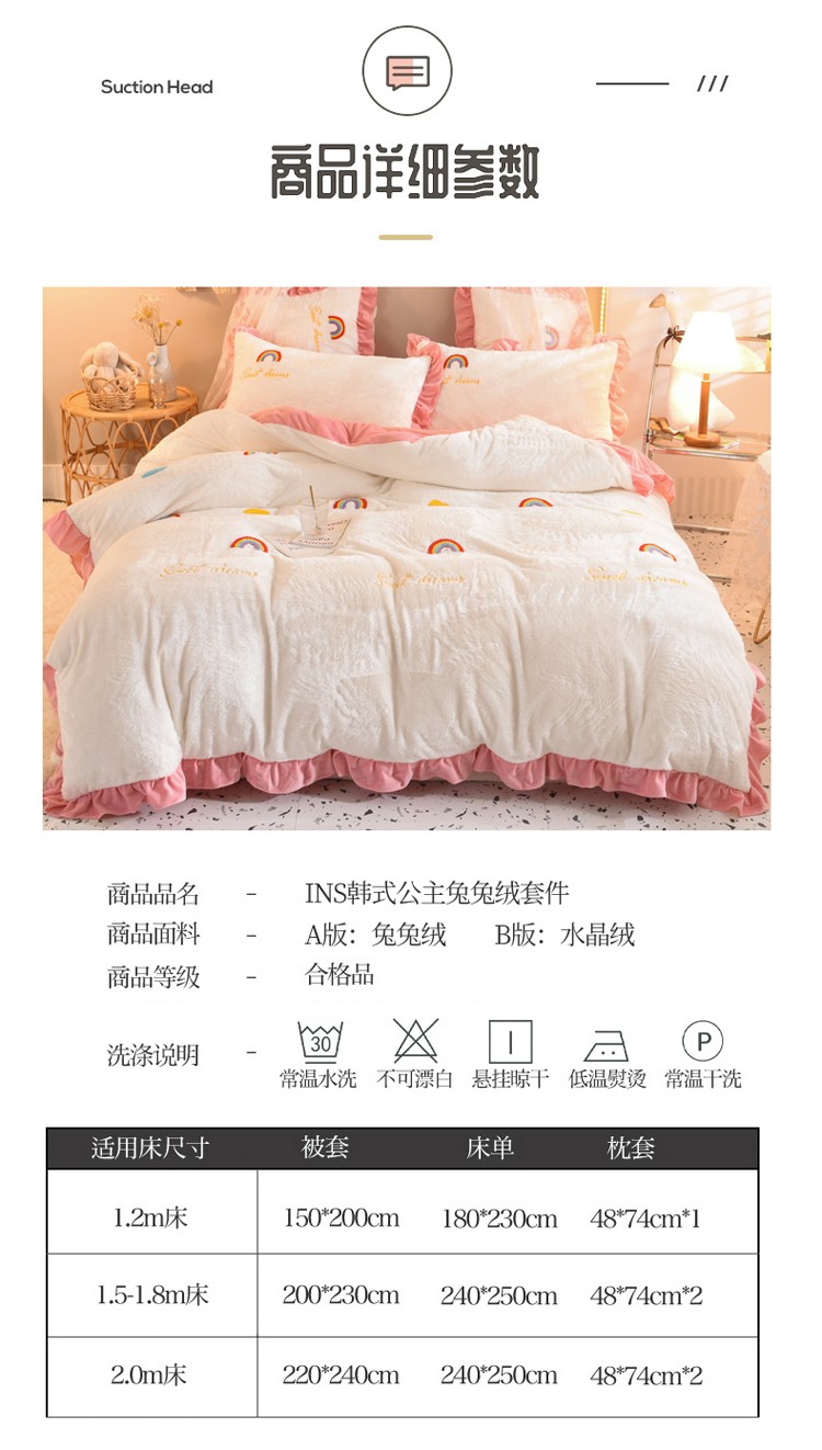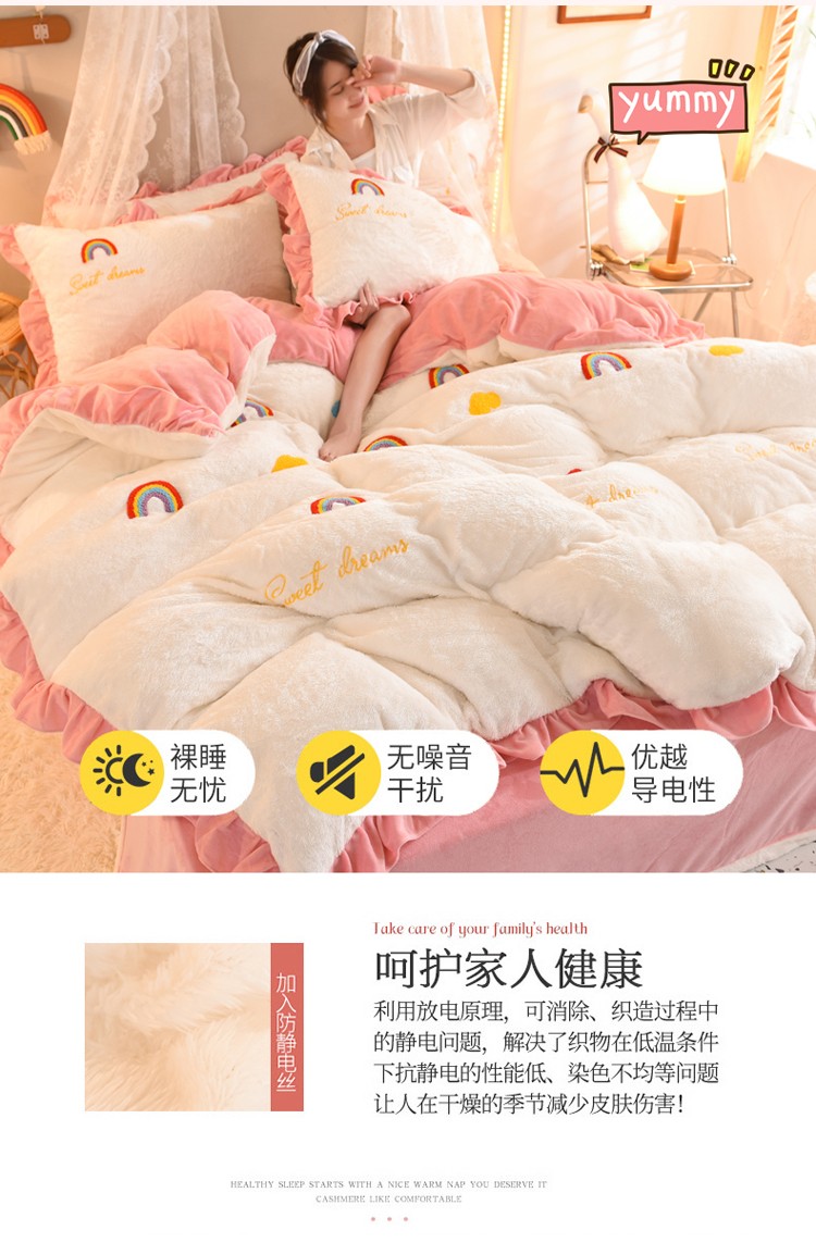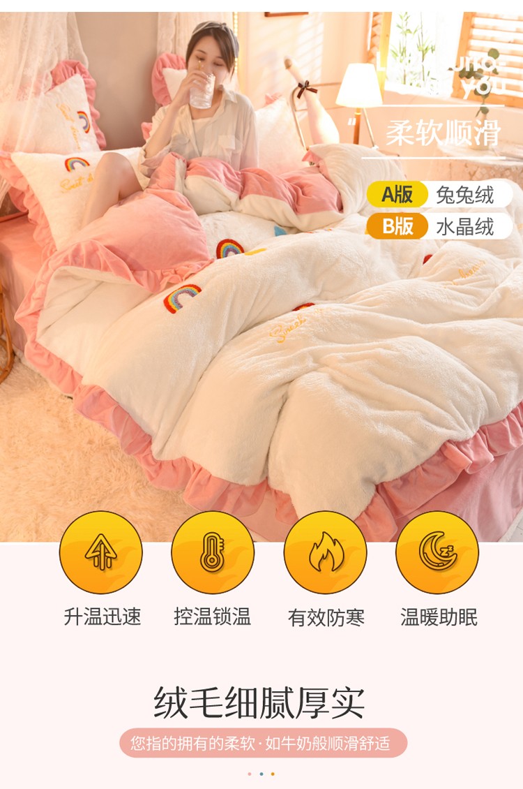 商品名称:欧冠 2021新款INS韩式公主兔兔绒四件套 彩虹