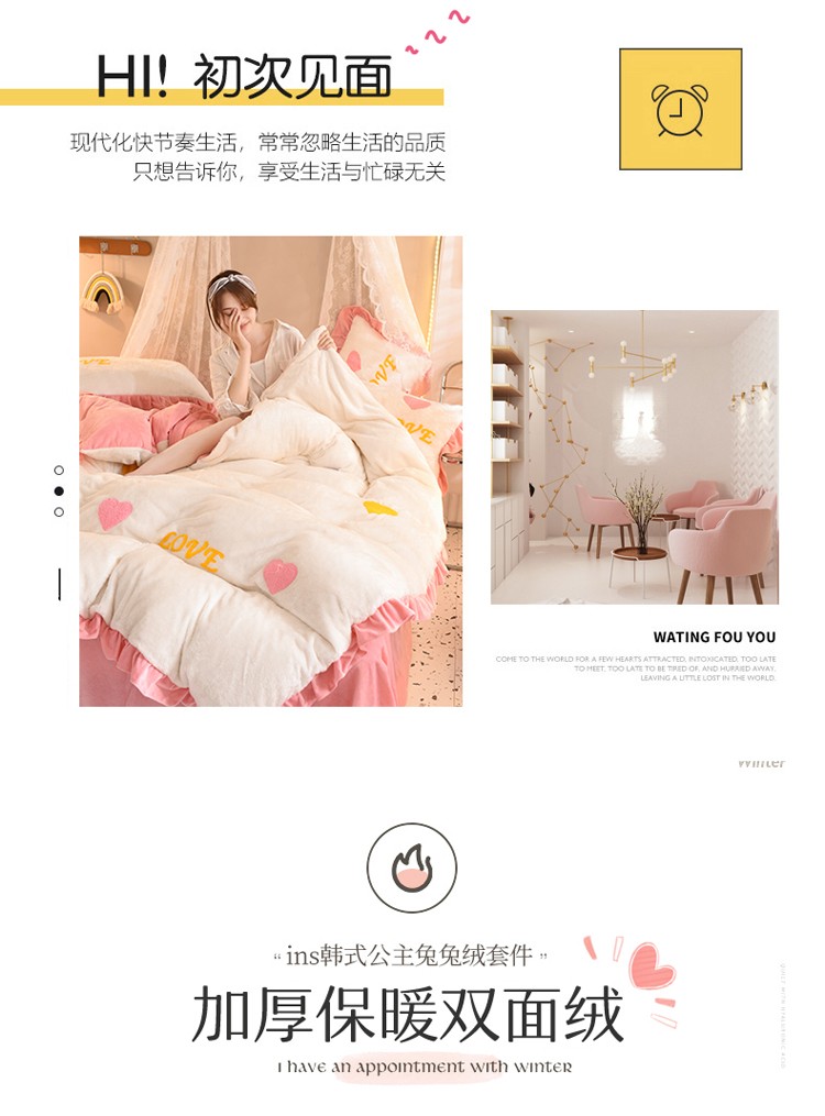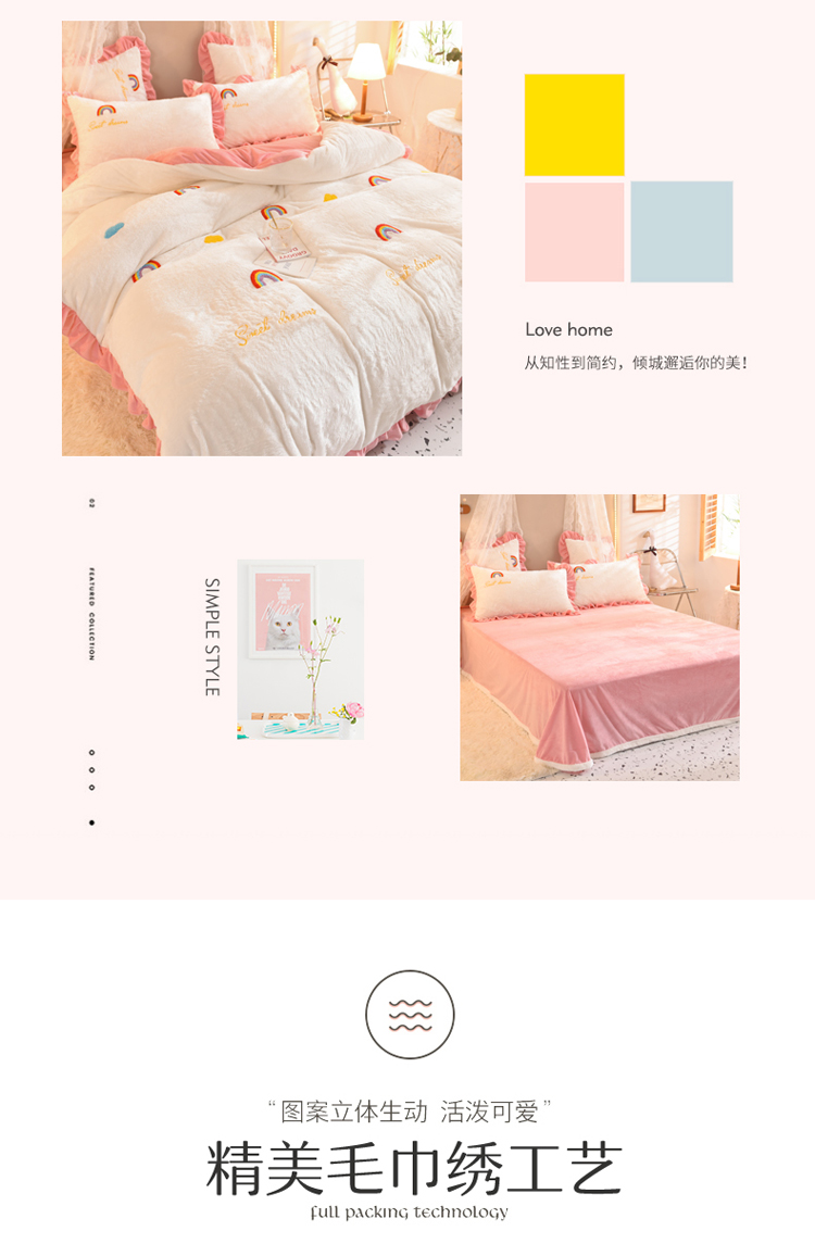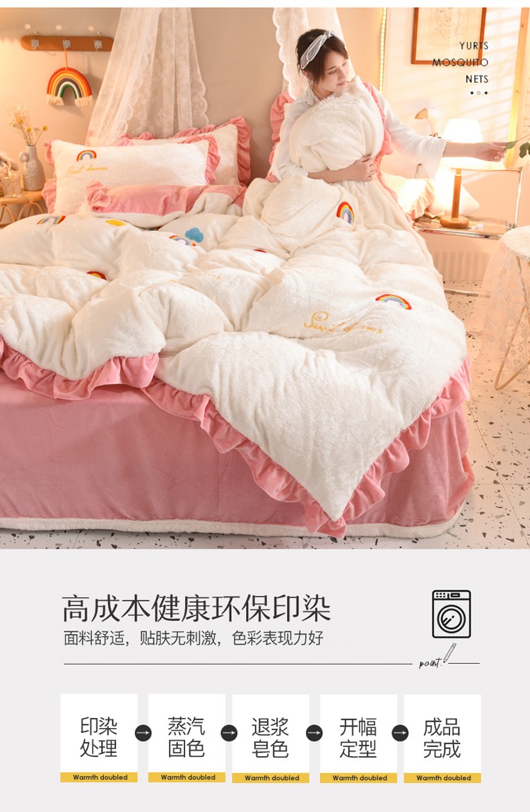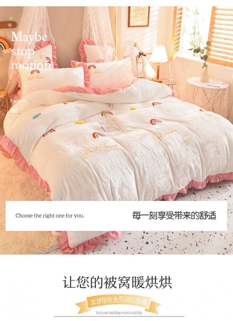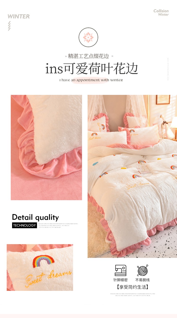 商品名称:欧冠 2021新款INS韩式公主兔兔绒四件套 彩虹