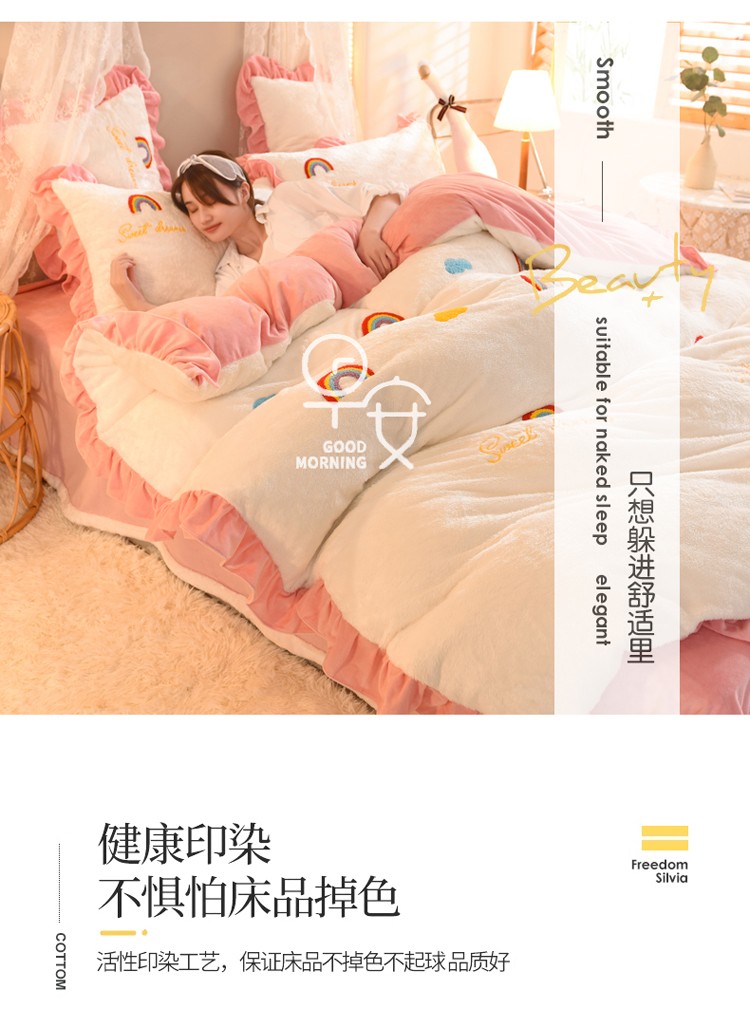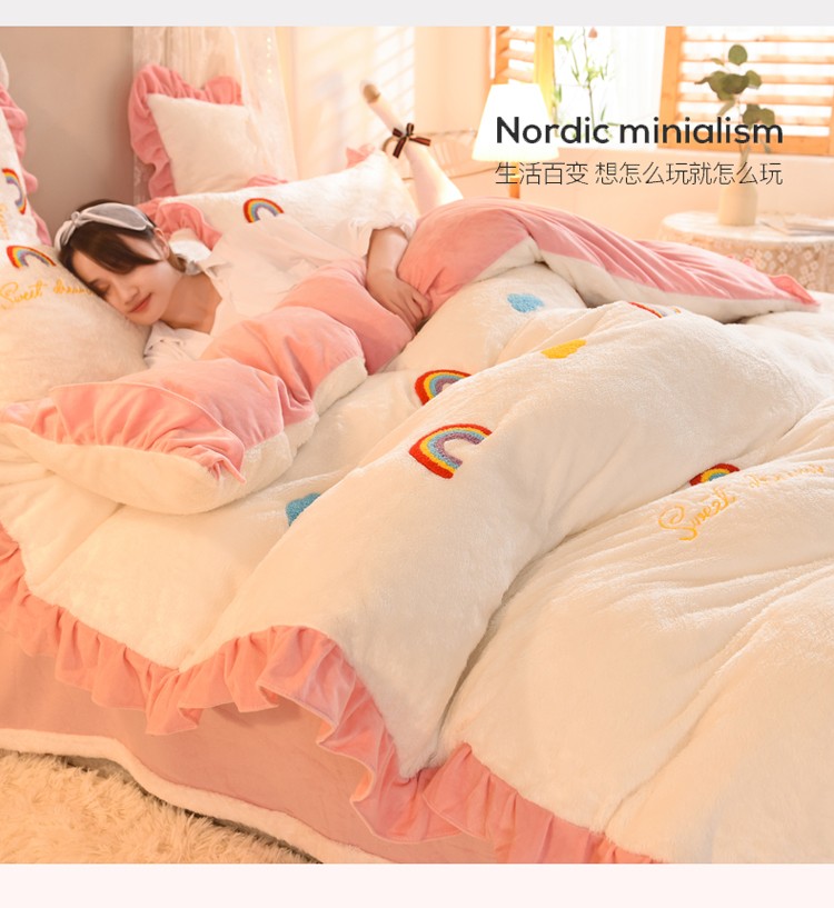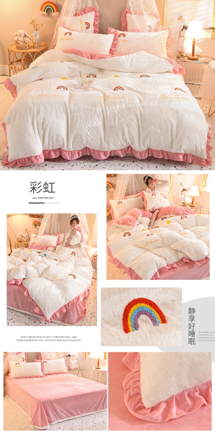 欧冠 2021新款INS韩式公主兔兔绒四件套 彩虹