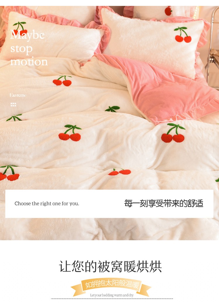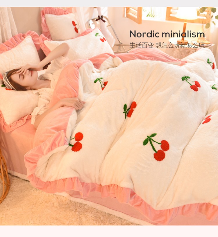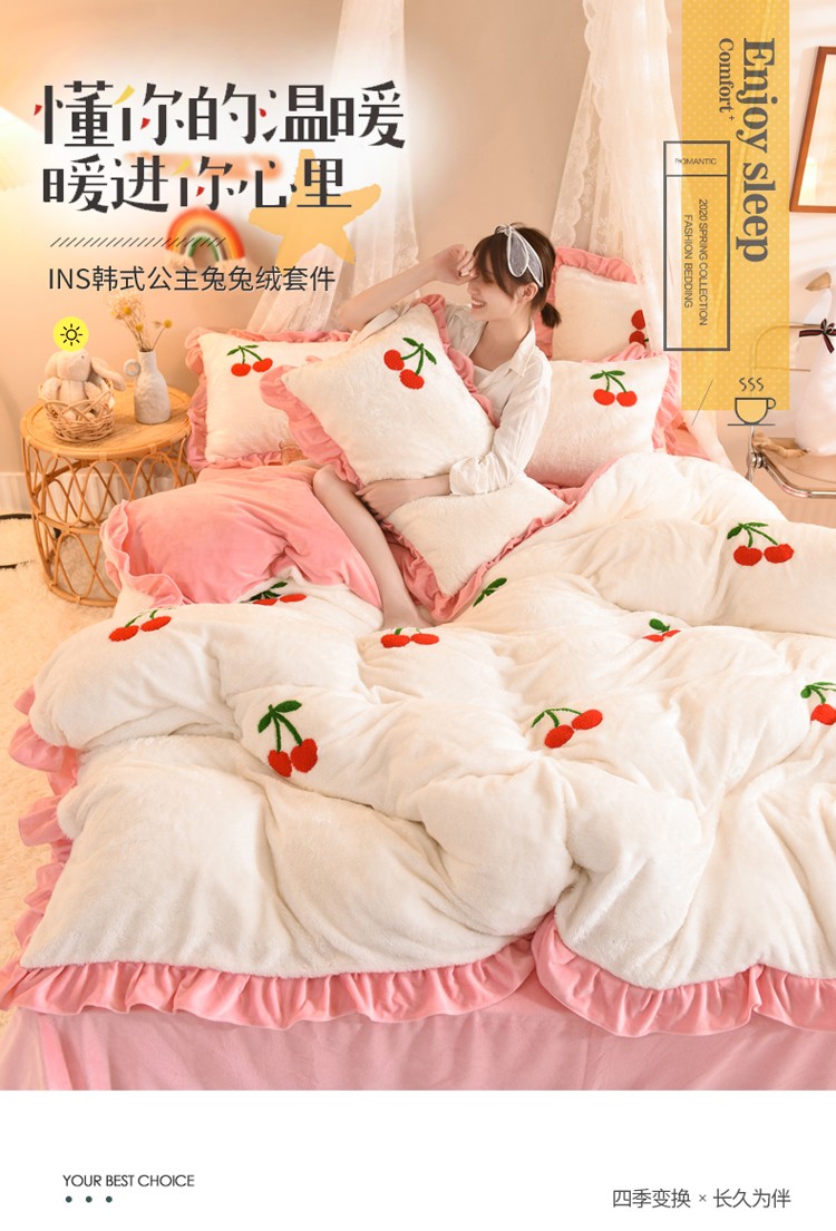 欧冠 2021新款INS韩式公主兔兔绒四件套 樱桃