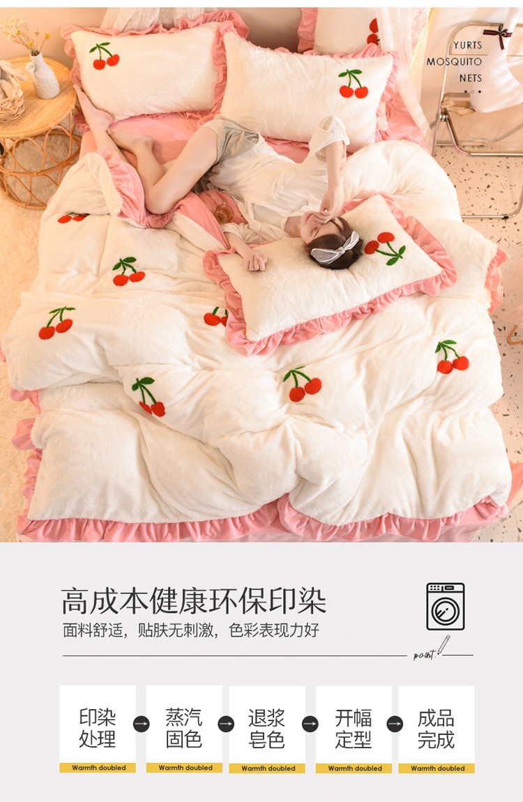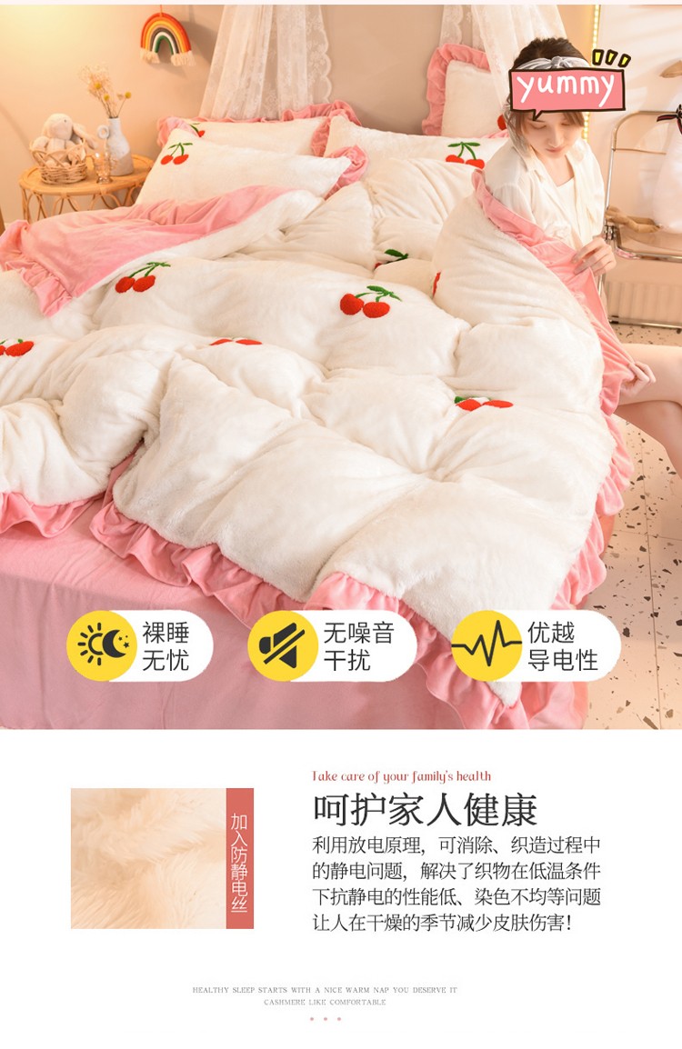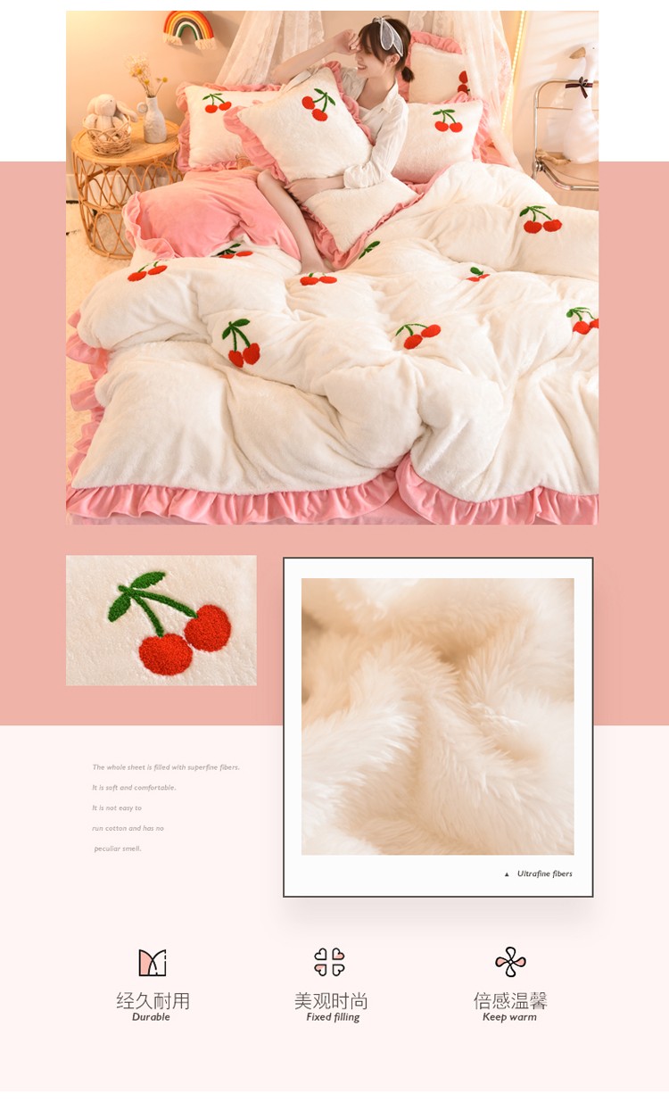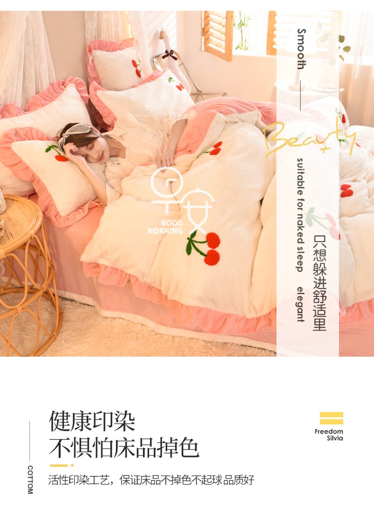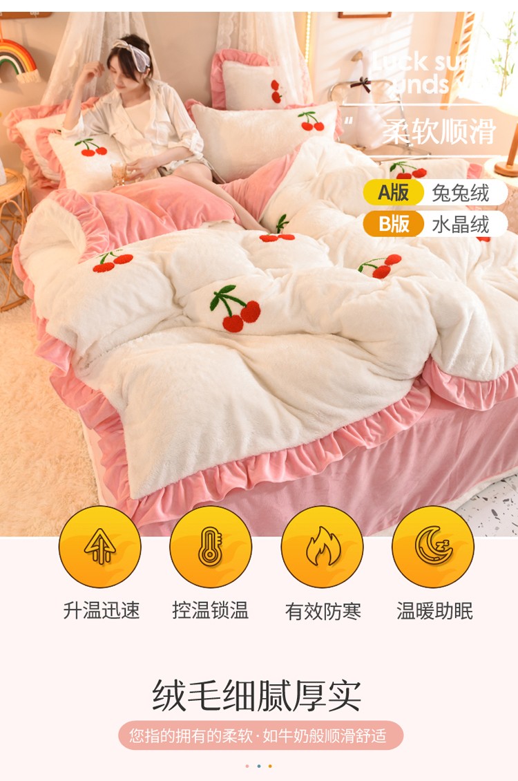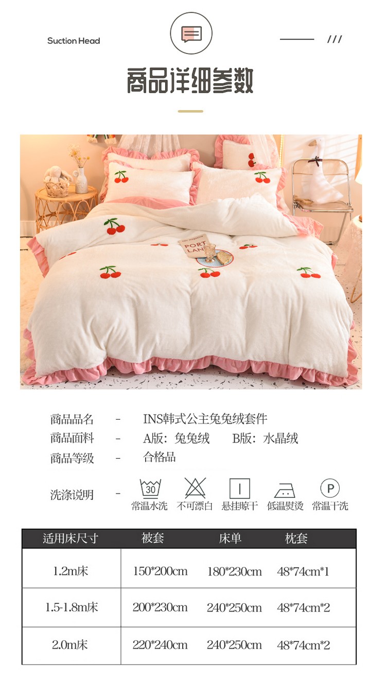 商品名称:欧冠 2021新款INS韩式公主兔兔绒四件套 樱桃
