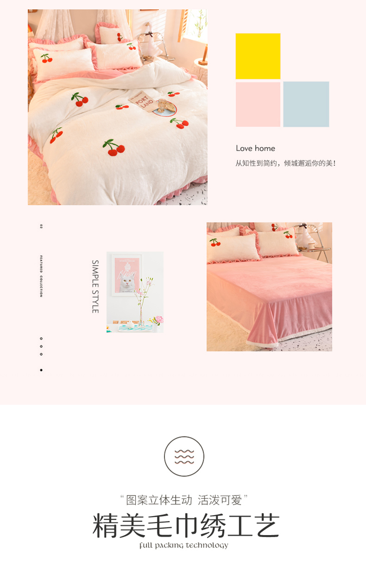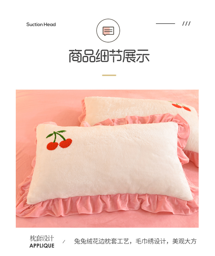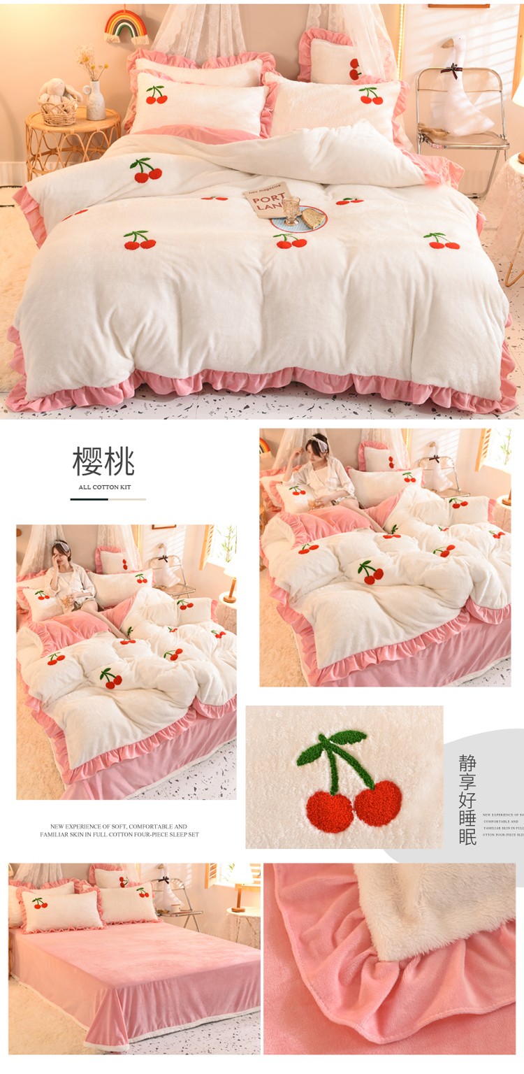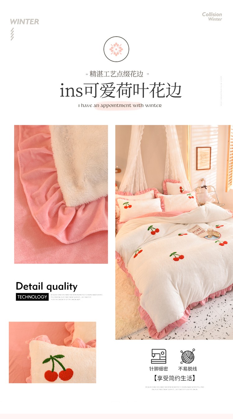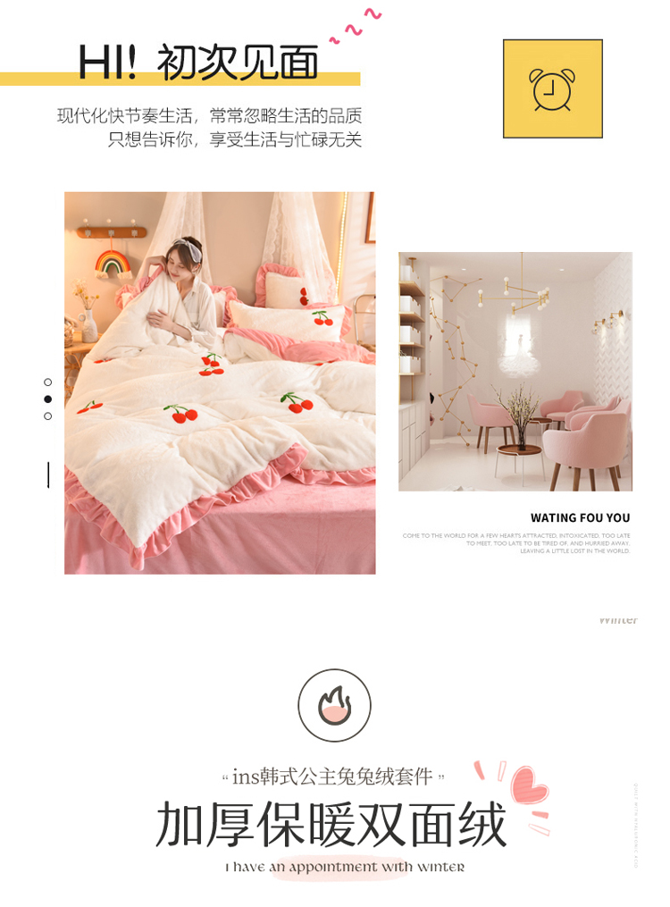 商品名称:欧冠 2021新款INS韩式公主兔兔绒四件套 樱桃