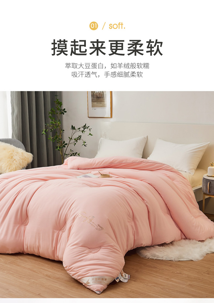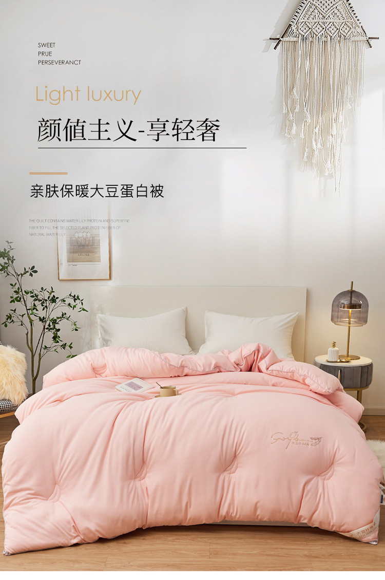 • 91家纺网 家纺一手货源 找家纺 慕尚 2022新款磨毛镶钻大豆冬被暖色调 大豆粉