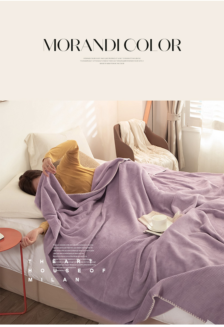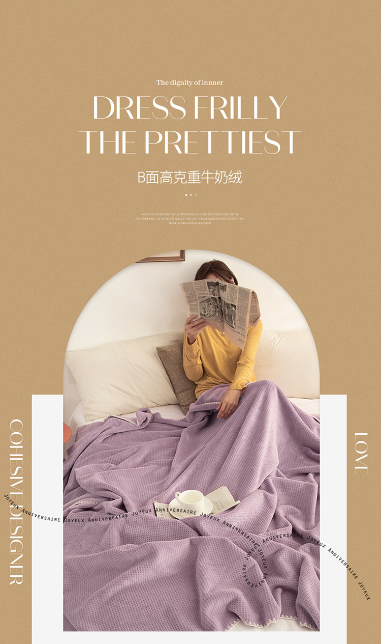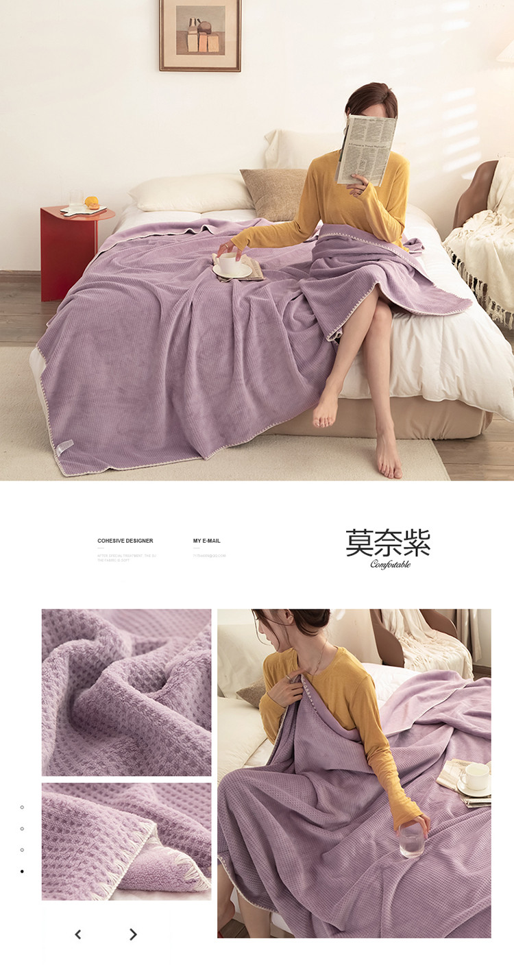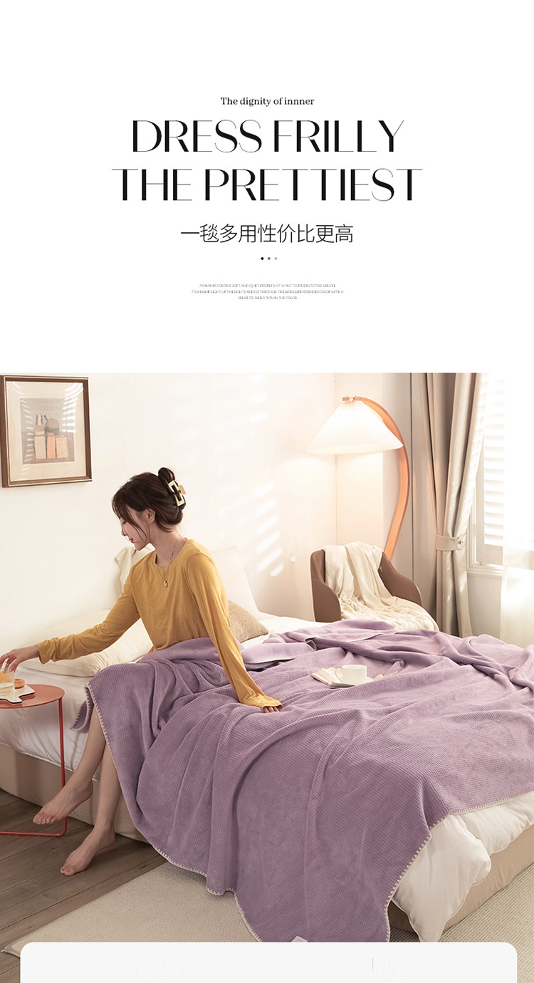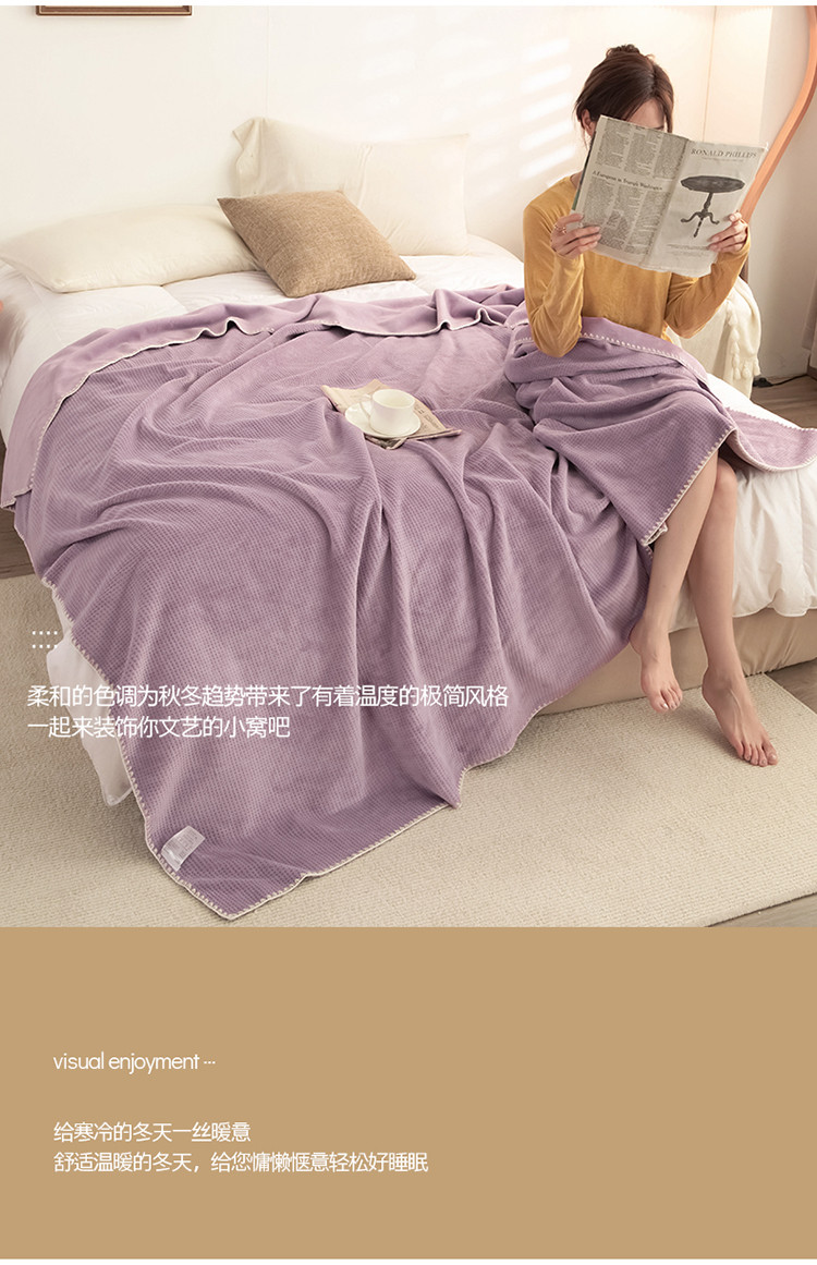 羋多家纺 2023新款双层牛奶绒华夫格复合毯莫奈紫