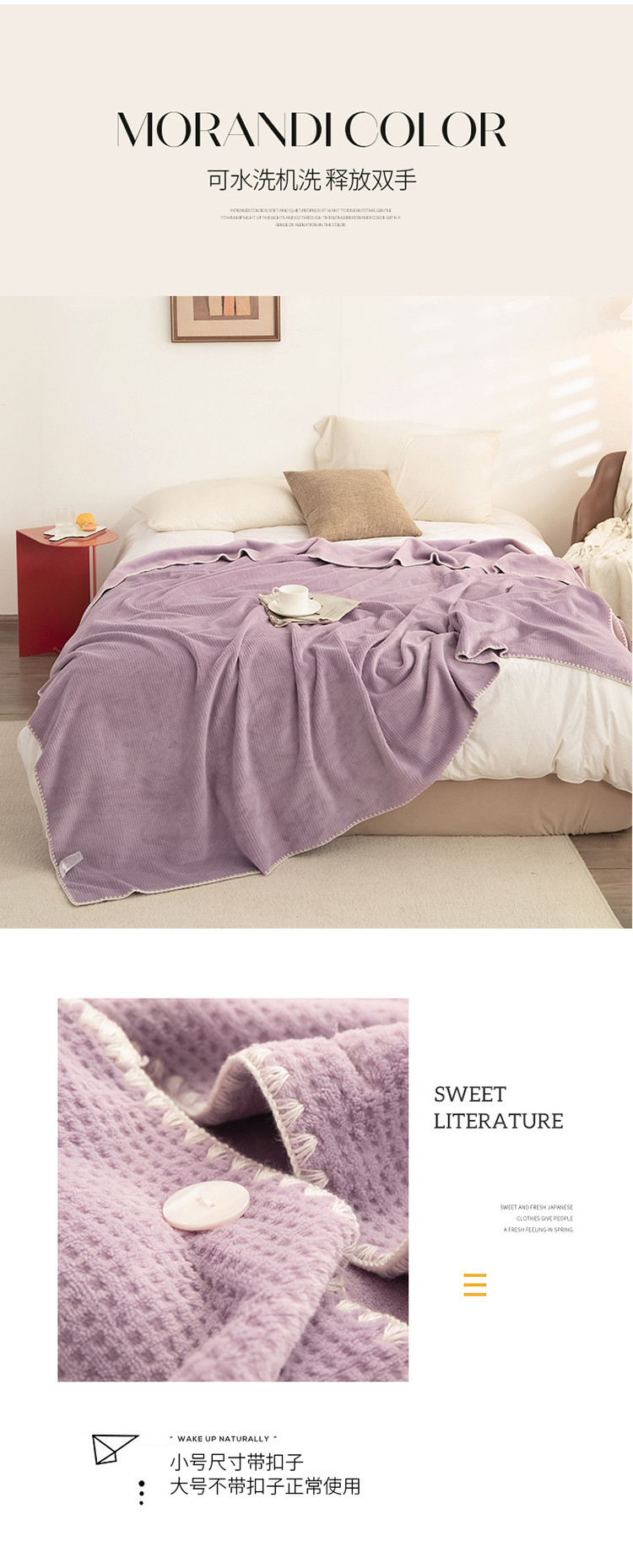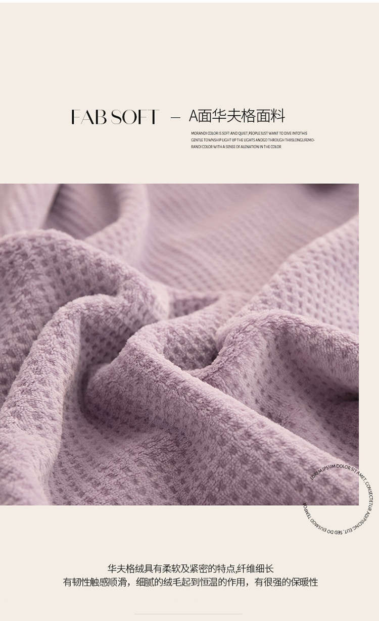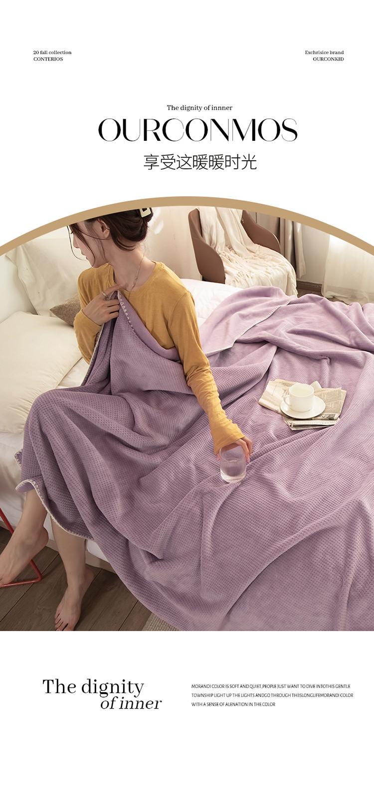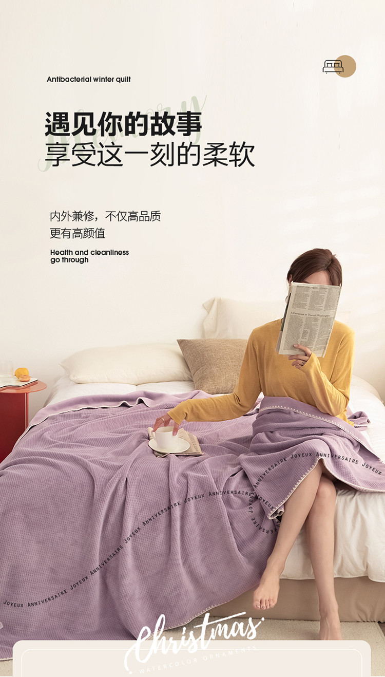 羋多家纺 2023新款双层牛奶绒华夫格复合毯莫奈紫