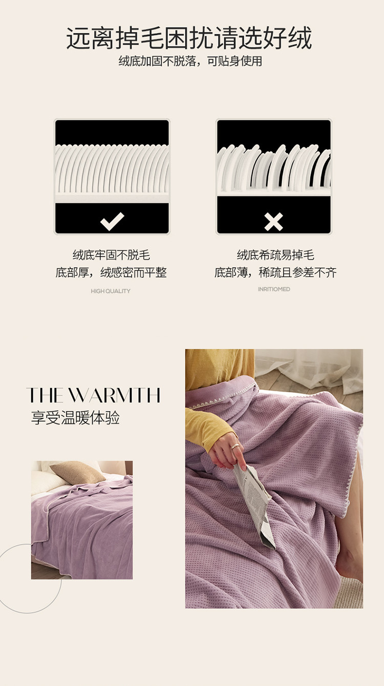 商品名称:羋多家纺 2023新款双层牛奶绒华夫格复合毯莫奈紫