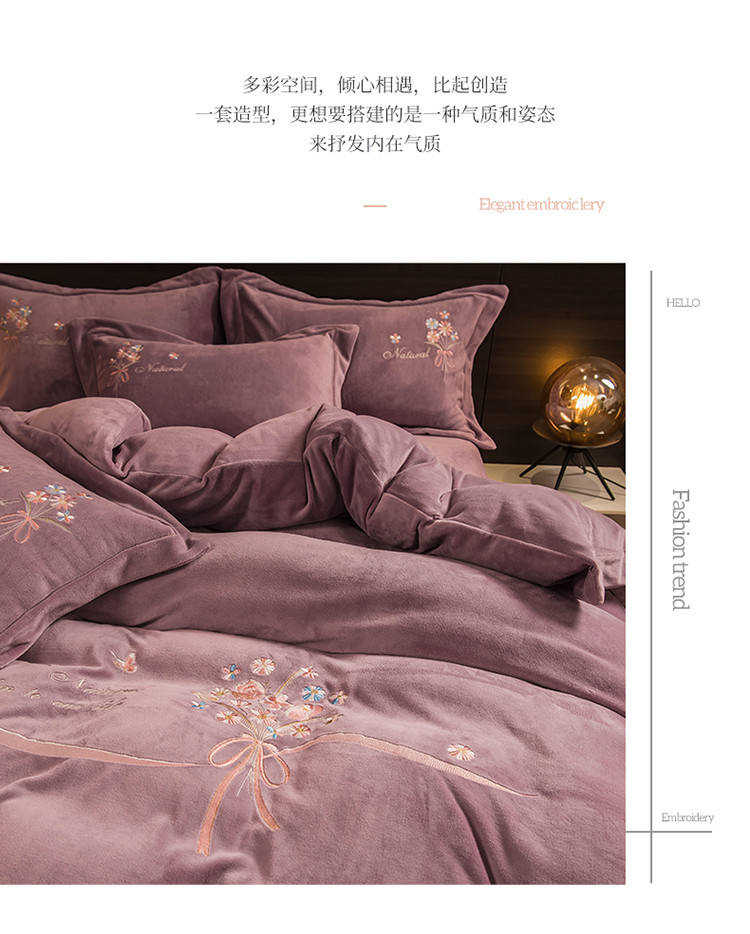 (总)绒博士 2025新款220克牛奶绒刺绣三件套--欧拉系列,欧拉-宾利蓝,欧拉-芳菲紫,欧拉-灰色,欧拉-奶绿,欧拉-樱花粉