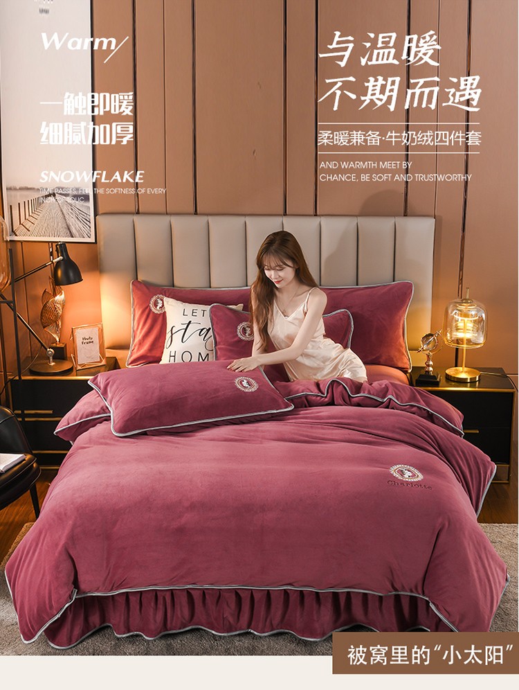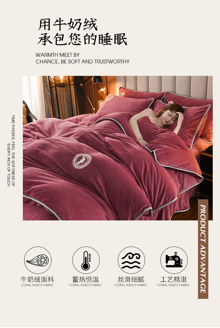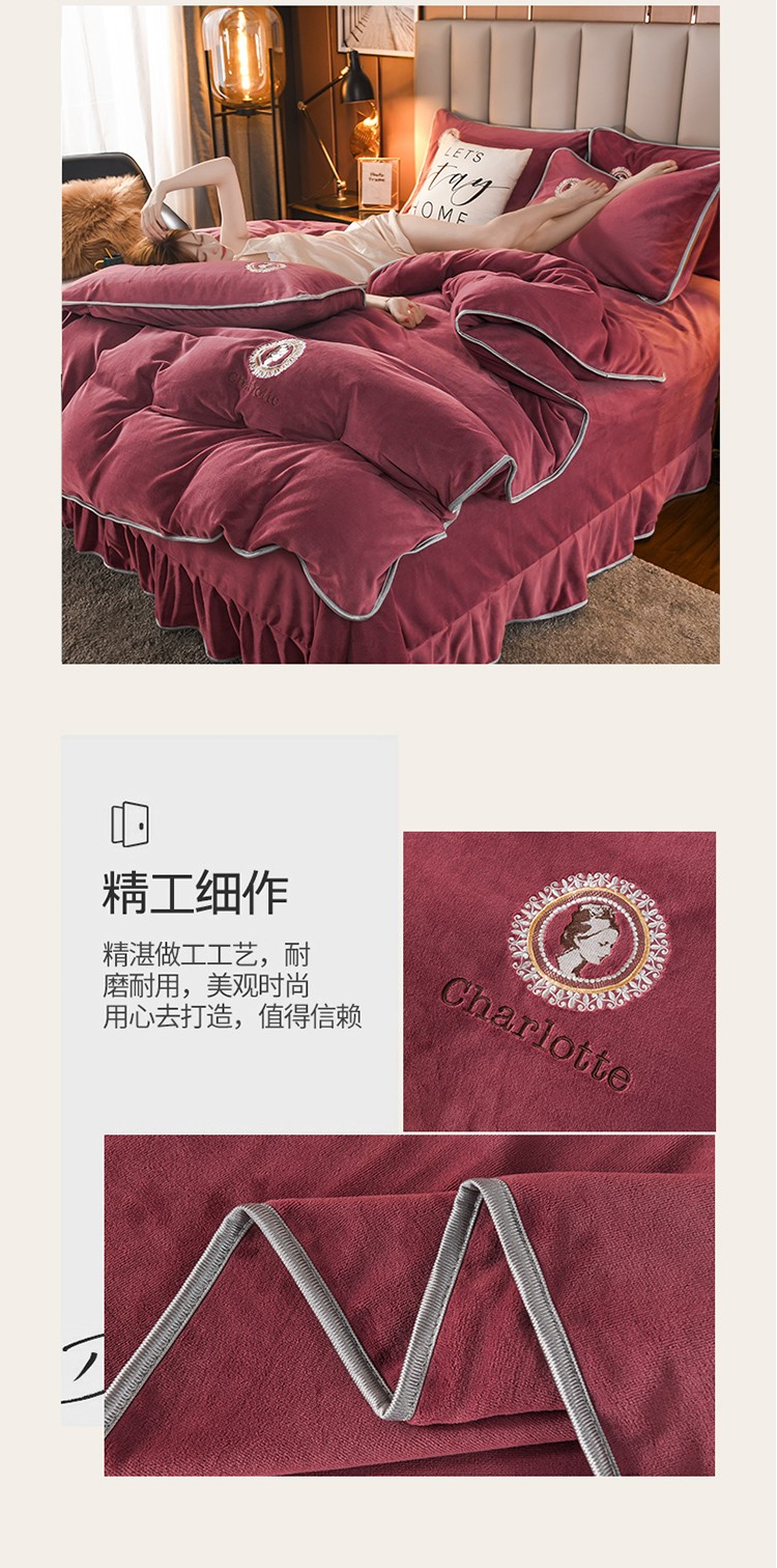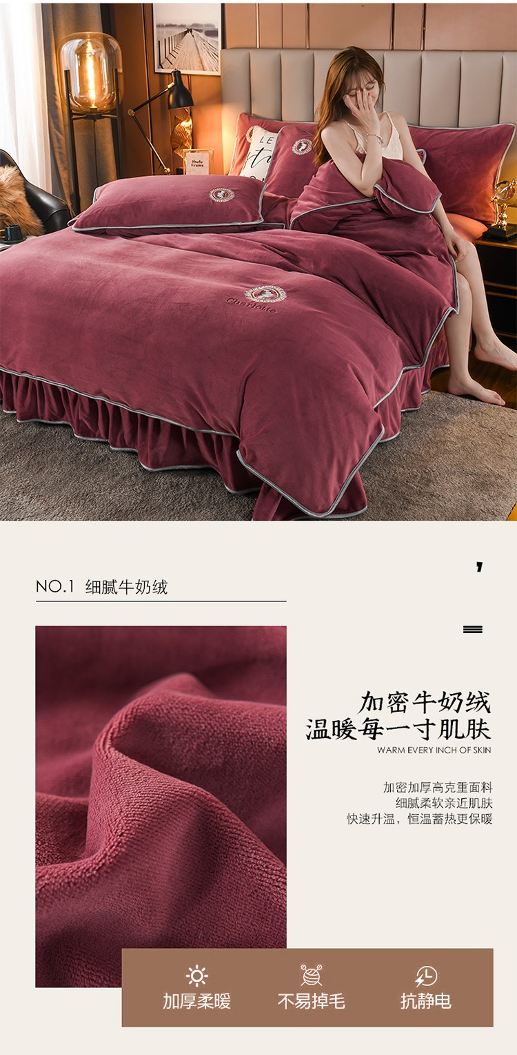 商品名称:迷仙巢 2021新款牛奶绒系列四件套枫叶 枫叶-豆沙