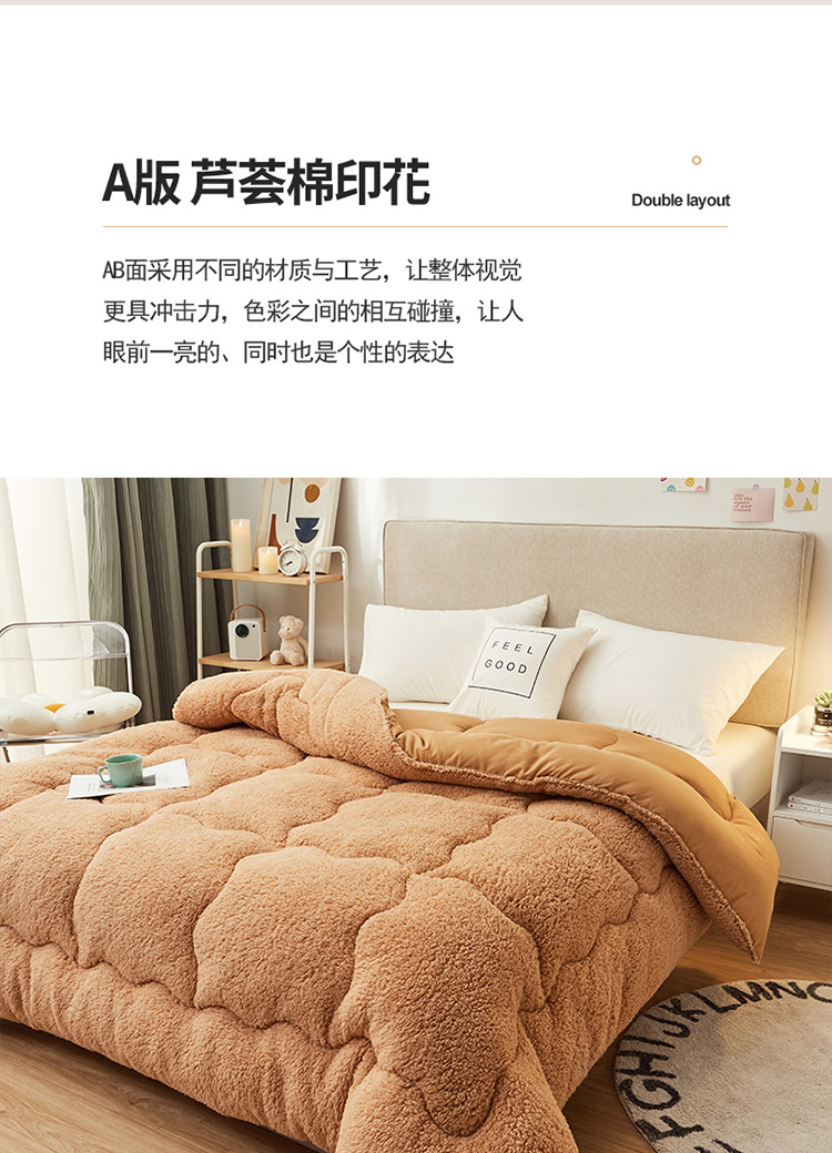 商品名称:畅销被业 2021新款羊羔绒冬被 驼色