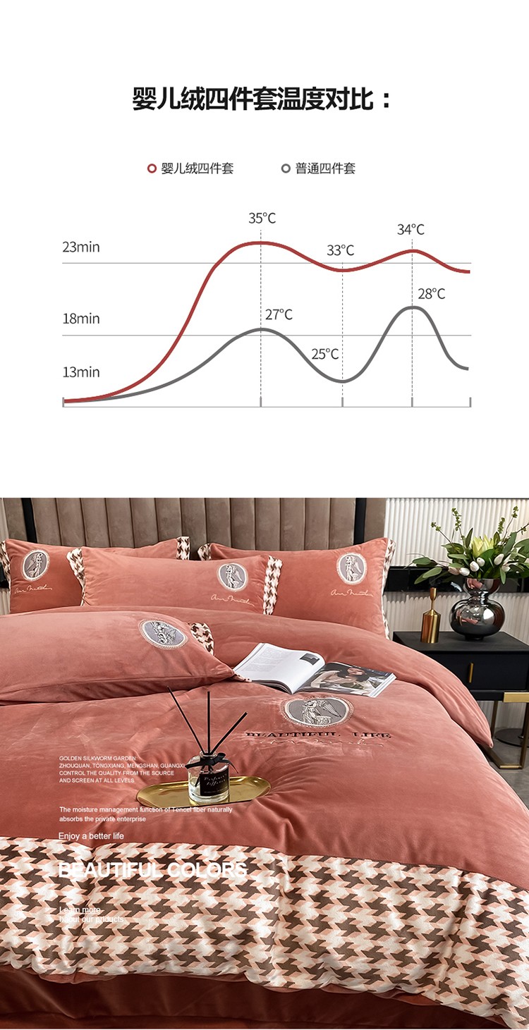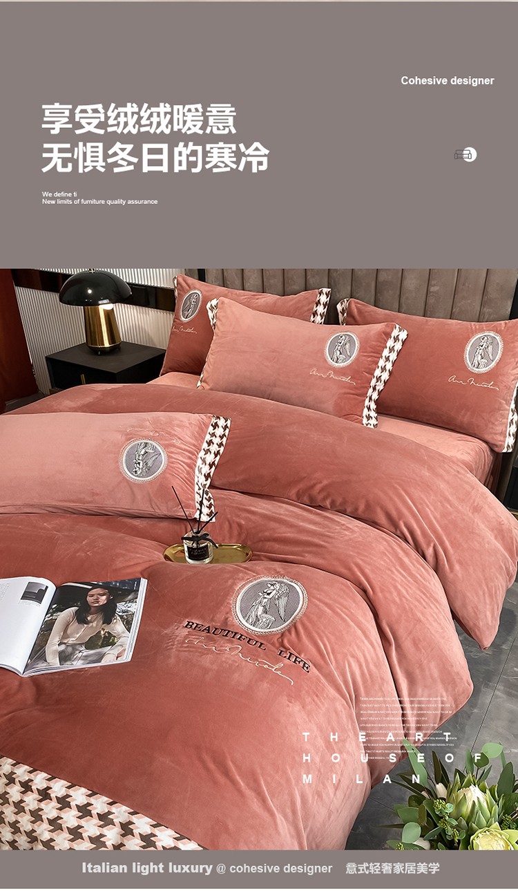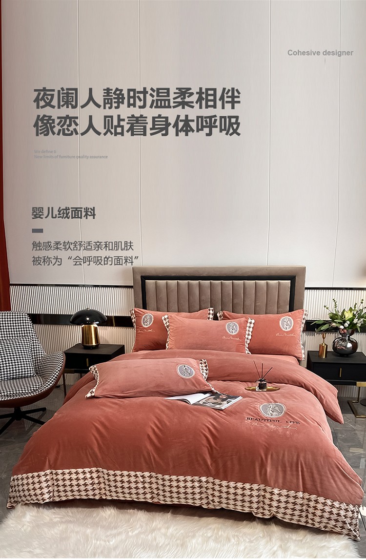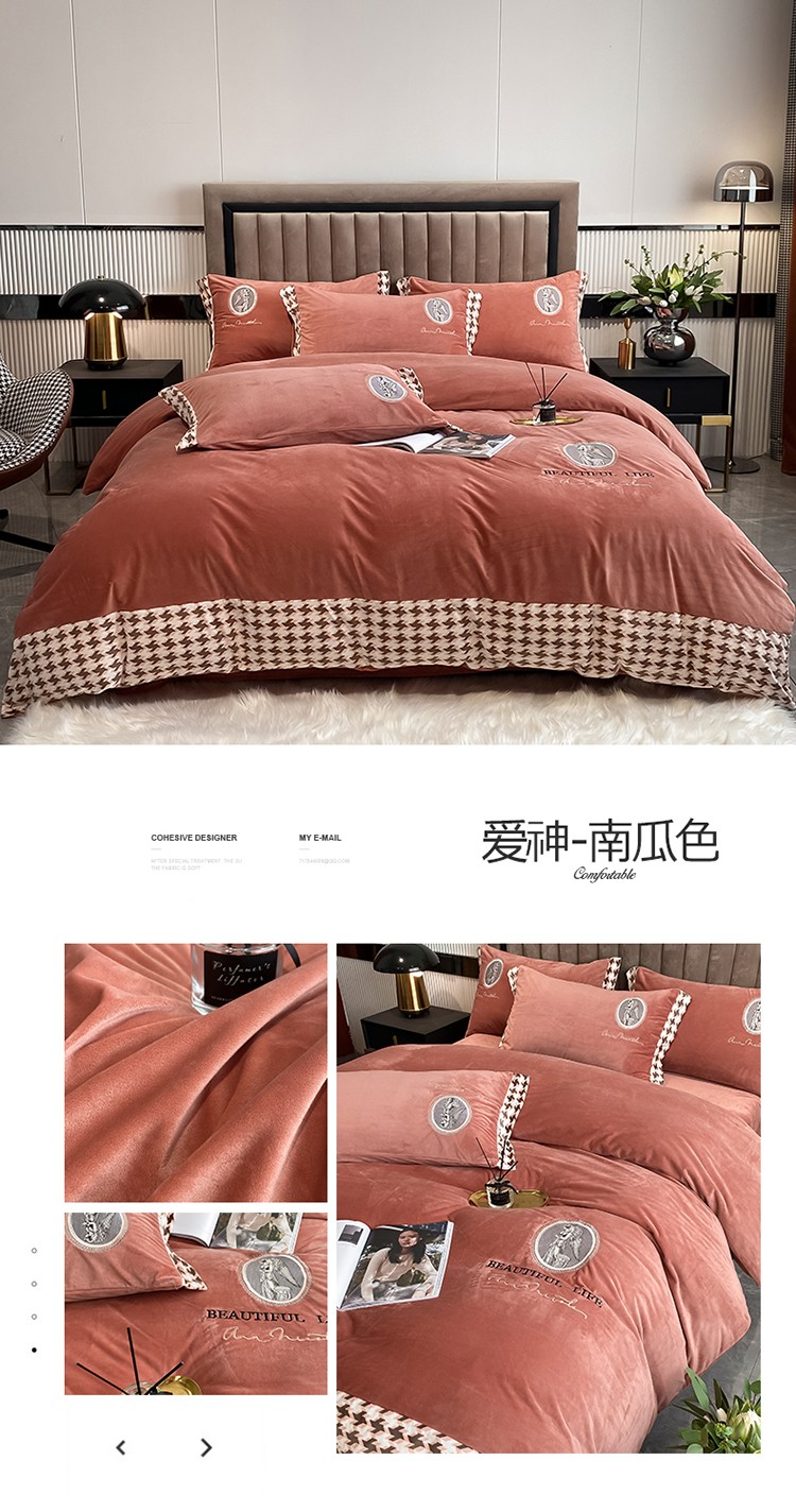 澳梵 2021【爱神系列】婴儿绒轻奢风刺绣四件套 爱神-南瓜色