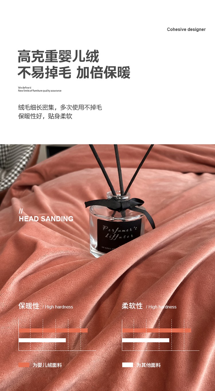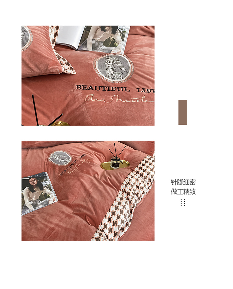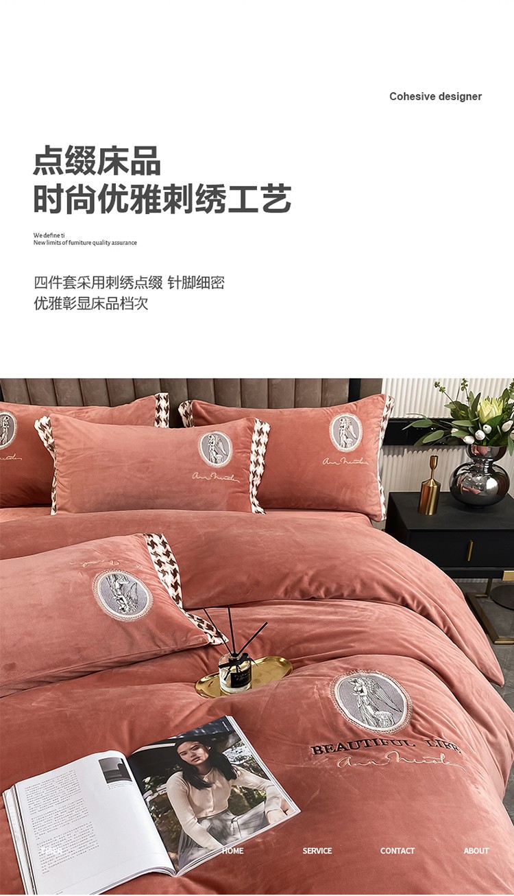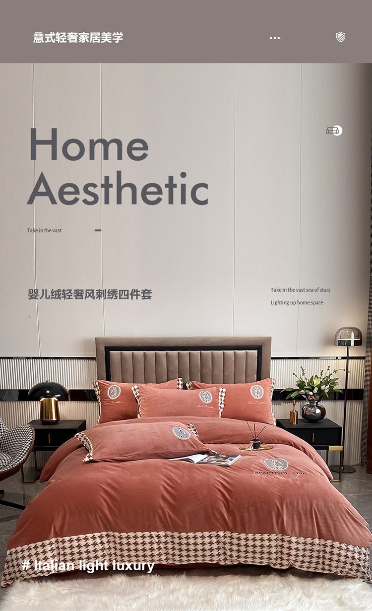 澳梵 2021【爱神系列】婴儿绒轻奢风刺绣四件套 爱神-南瓜色