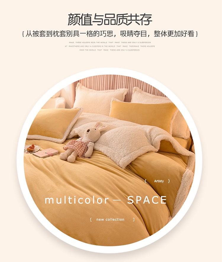 商品名称:艾米 2021新款牛奶绒羊羔绒双拼四件套 灰色