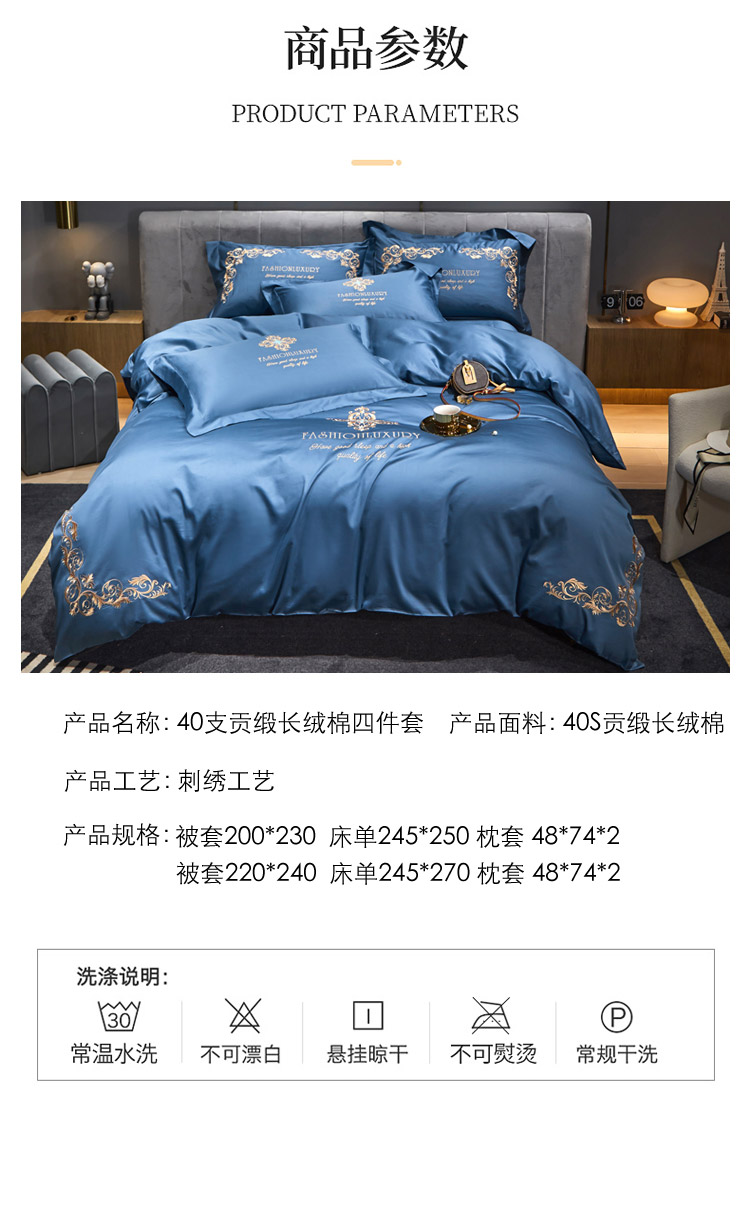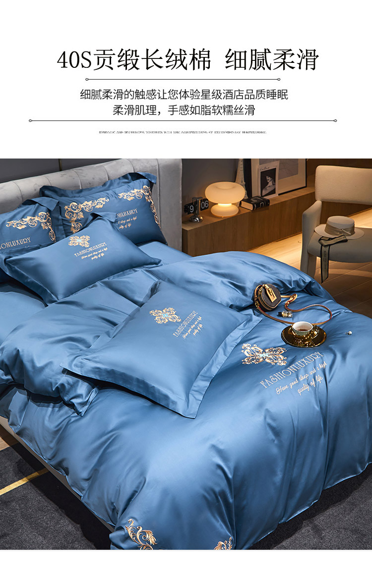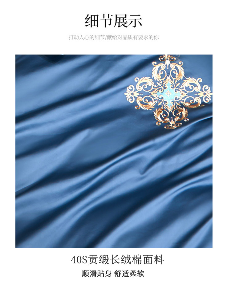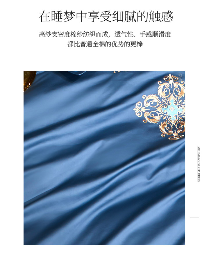 商品名称:凡客2022春夏新款浪漫时节60S贡缎长绒棉绣花四件套 浪漫时节(宝蓝)