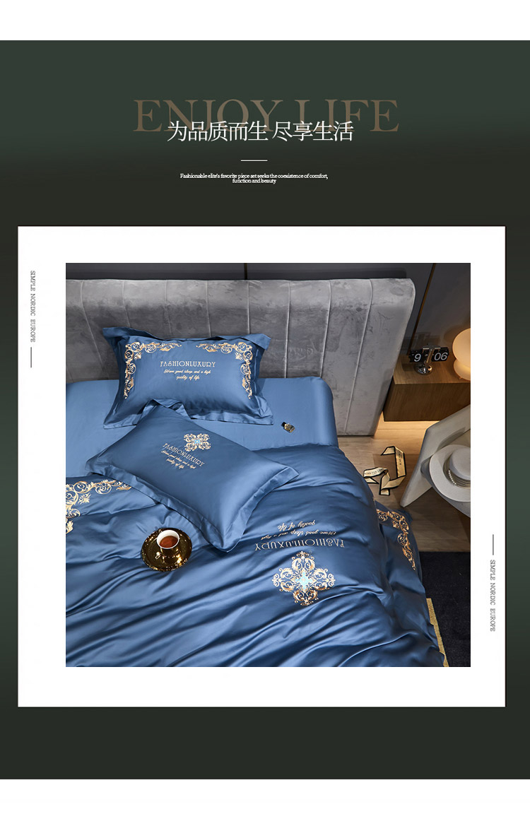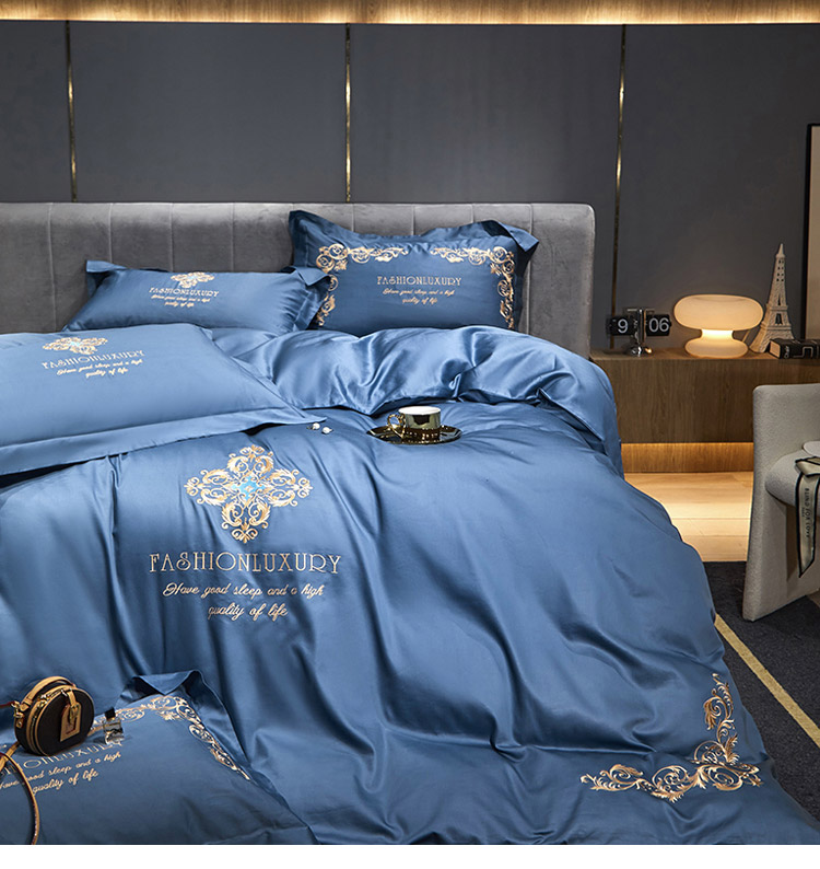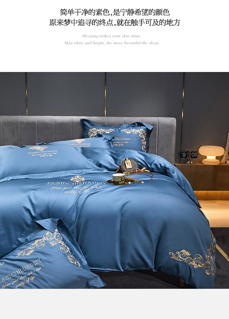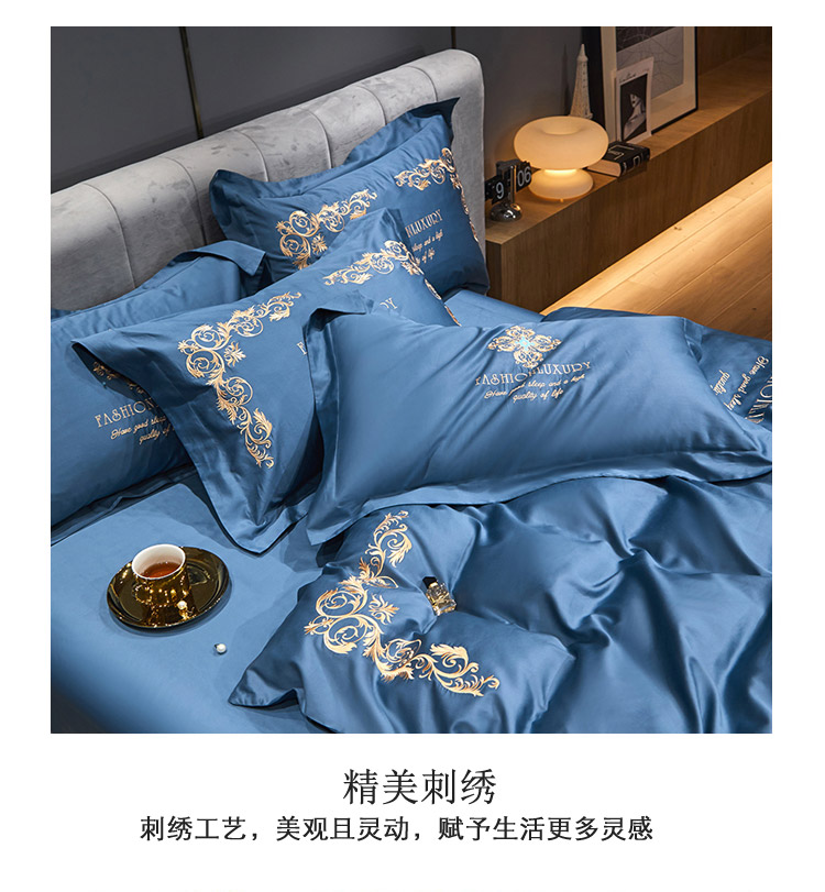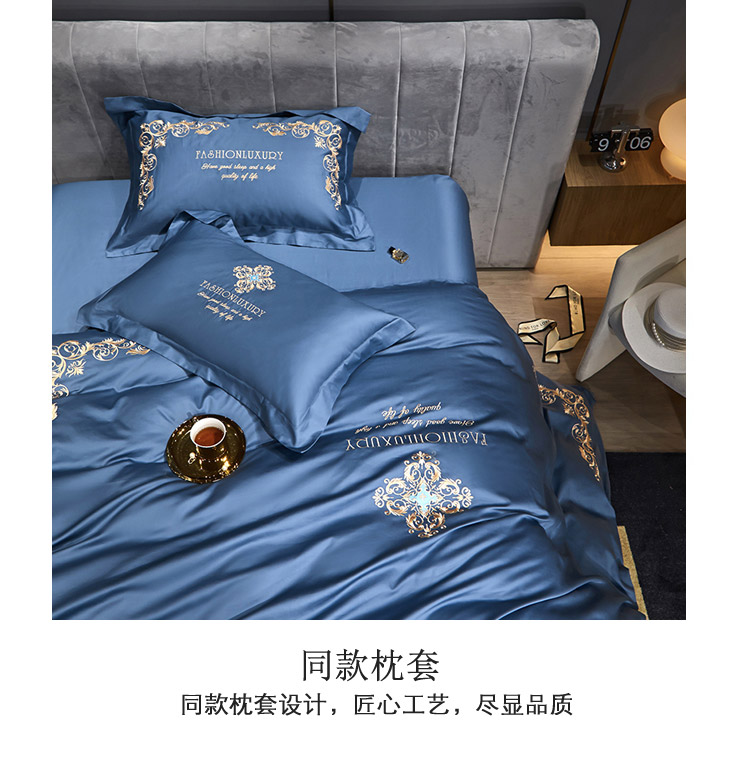 商品名称:凡客2022春夏新款浪漫时节60S贡缎长绒棉绣花四件套 浪漫时节(宝蓝)