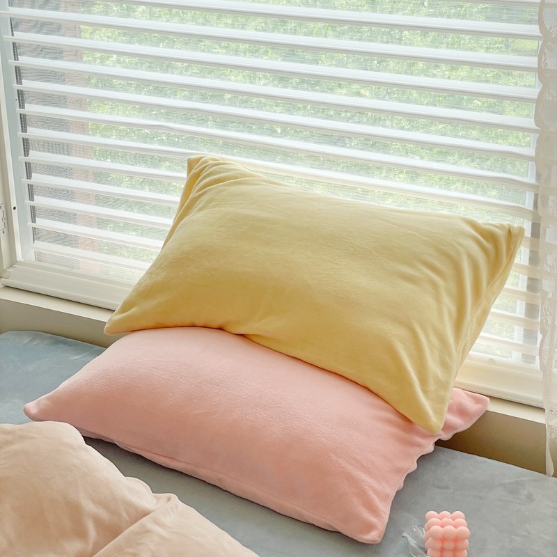 慕尚2025纯色搭色奶油席牛奶绒枕套48*74cm 黄色+玉