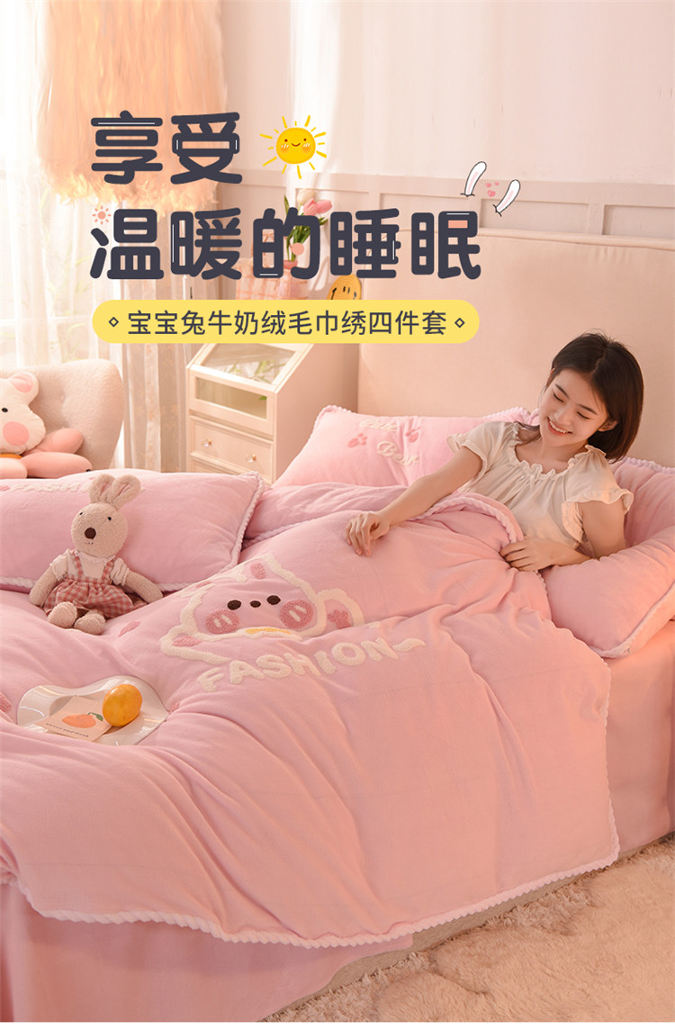 (总)菲儿家纺 2023新款牛奶绒毛巾绣四件套,可爱兔-粉,可爱兔-黄,可爱兔-蓝,可爱兔-绿,可爱兔-紫,小蘑菇-白+粉,小蘑菇-白+黄,小蘑菇-粉,小蘑菇-黄,小蘑菇-蓝,小蘑菇-绿,小蘑菇-紫