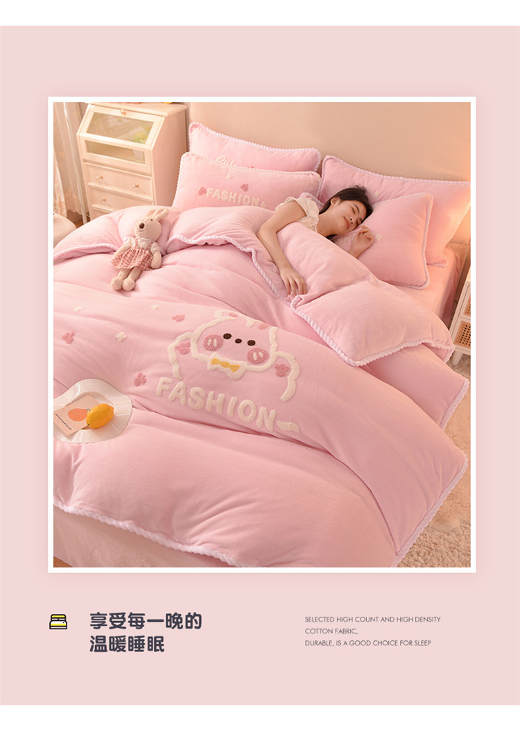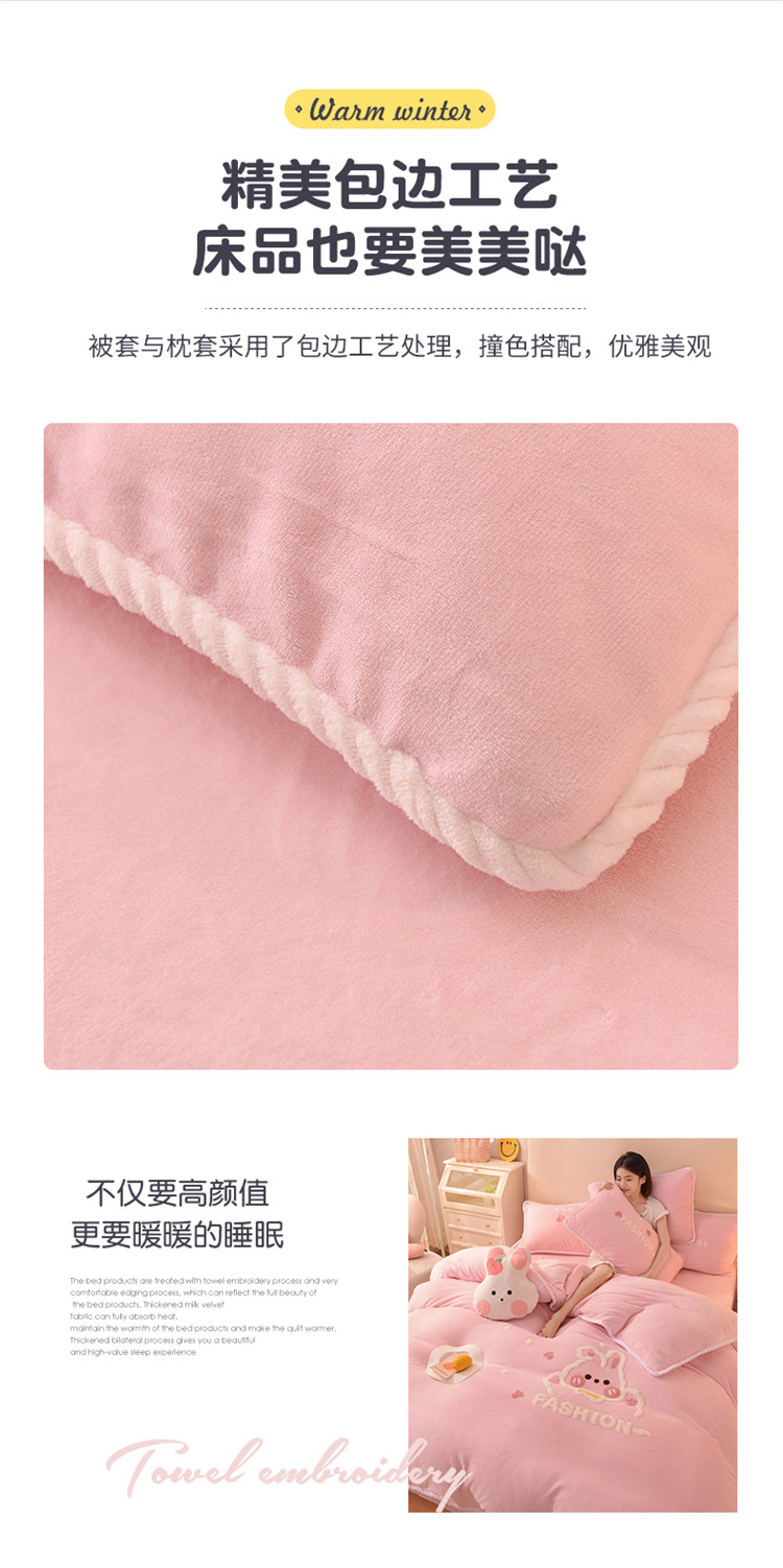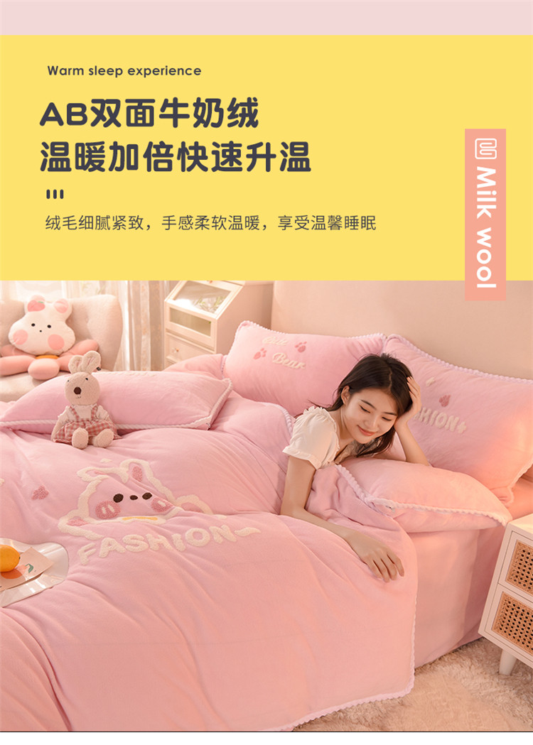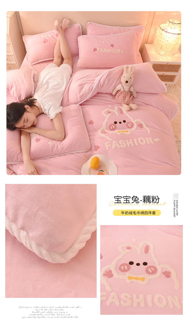 菲儿 2021新款牛奶绒四件套法莱水晶 宝宝兔-藕粉