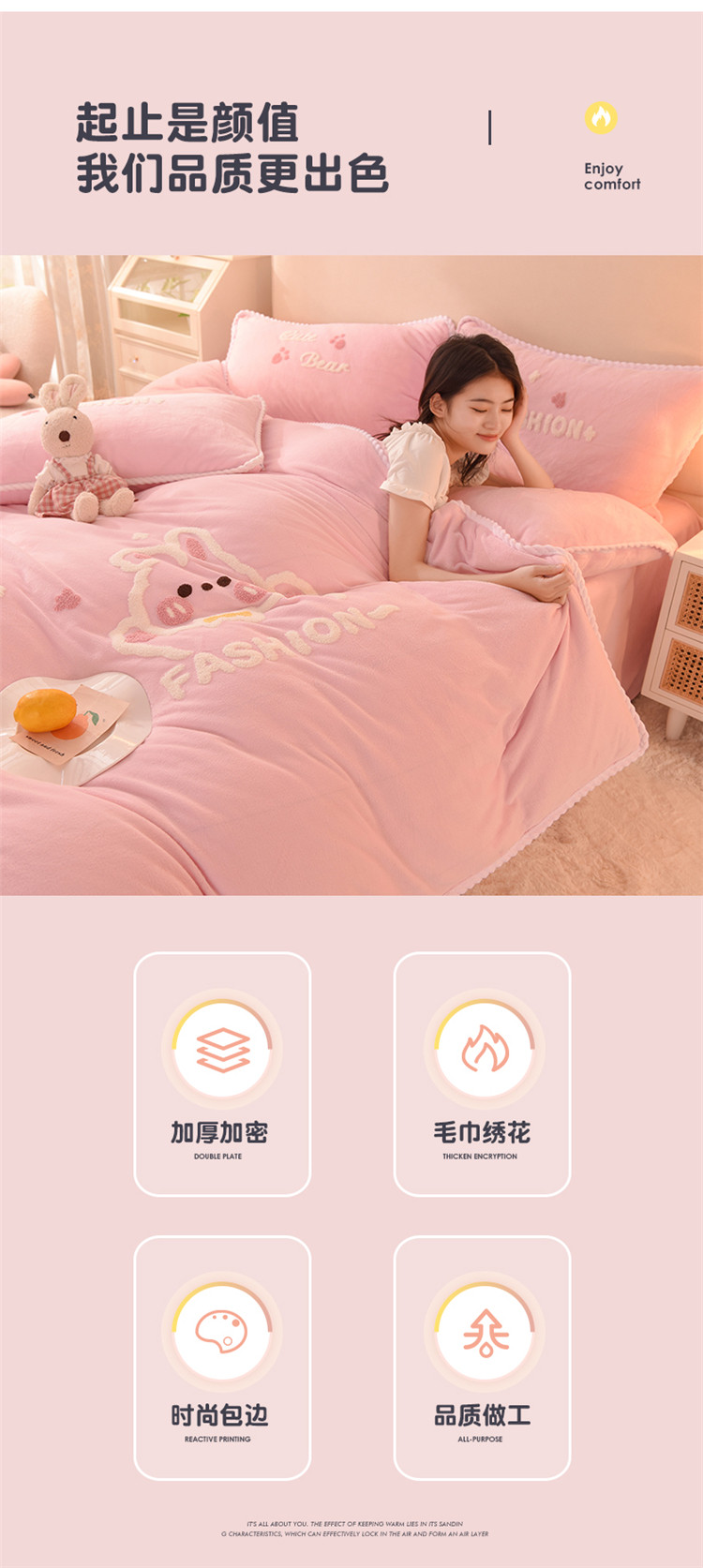 (总)菲儿家纺 2023新款毛巾绣牛奶绒四件套,哇塞小熊-豆绿,哇塞小熊-金桔黄,哇塞小熊-浅粉,哇塞小熊-优雅紫,哇塞小熊-月光蓝,小熊猫-奶黄,小熊猫-少女粉,小熊猫-松石绿,小熊猫-星空蓝,小熊猫-芋泥紫