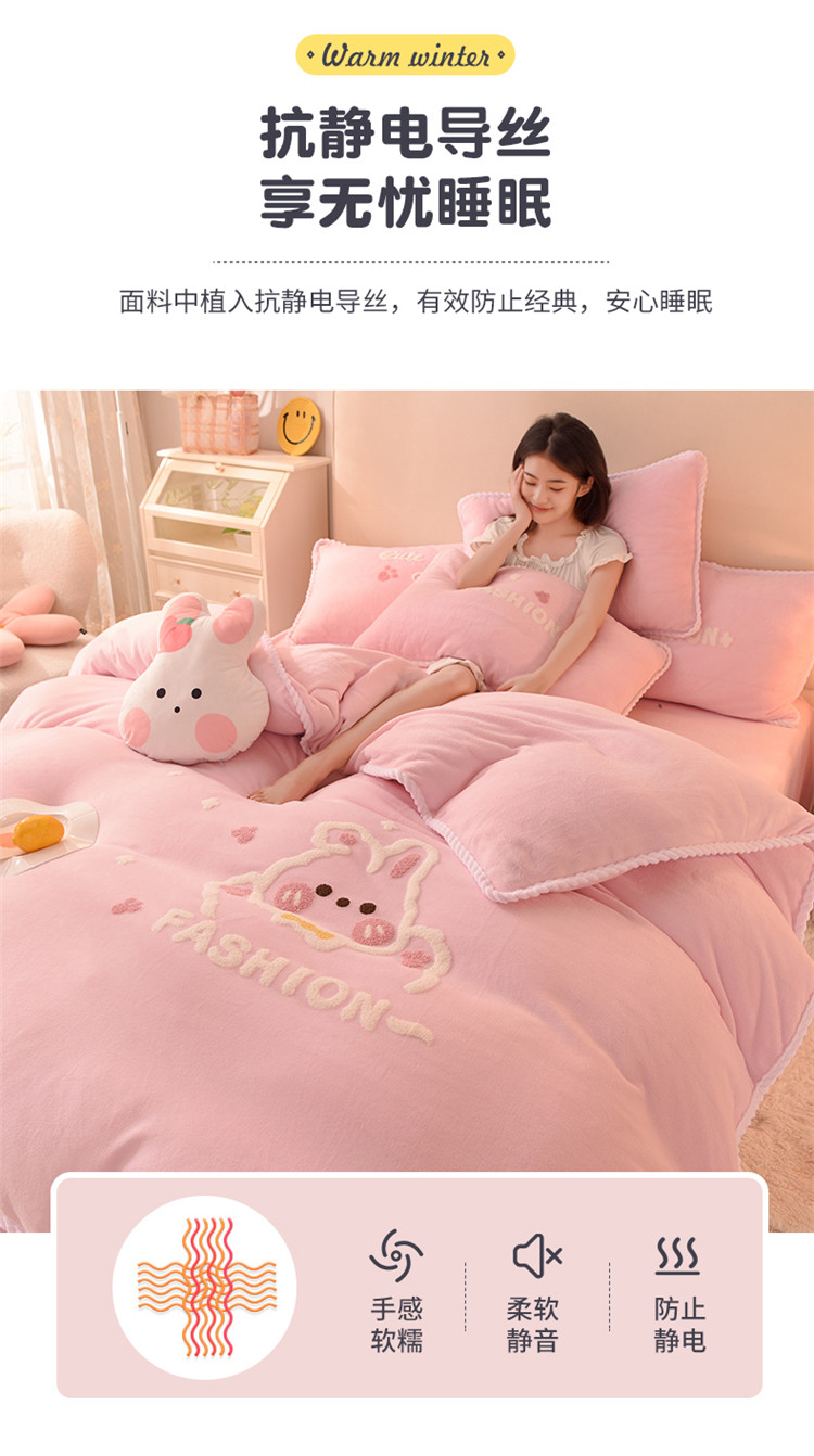 商品名称:菲儿 2021新款牛奶绒四件套法莱水晶 宝宝兔-藕粉