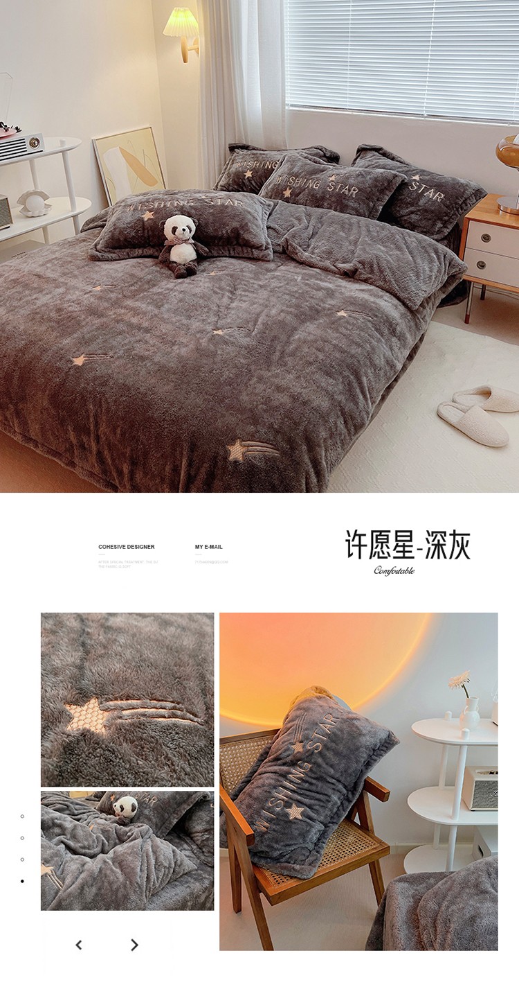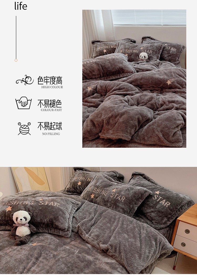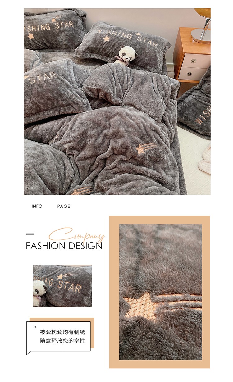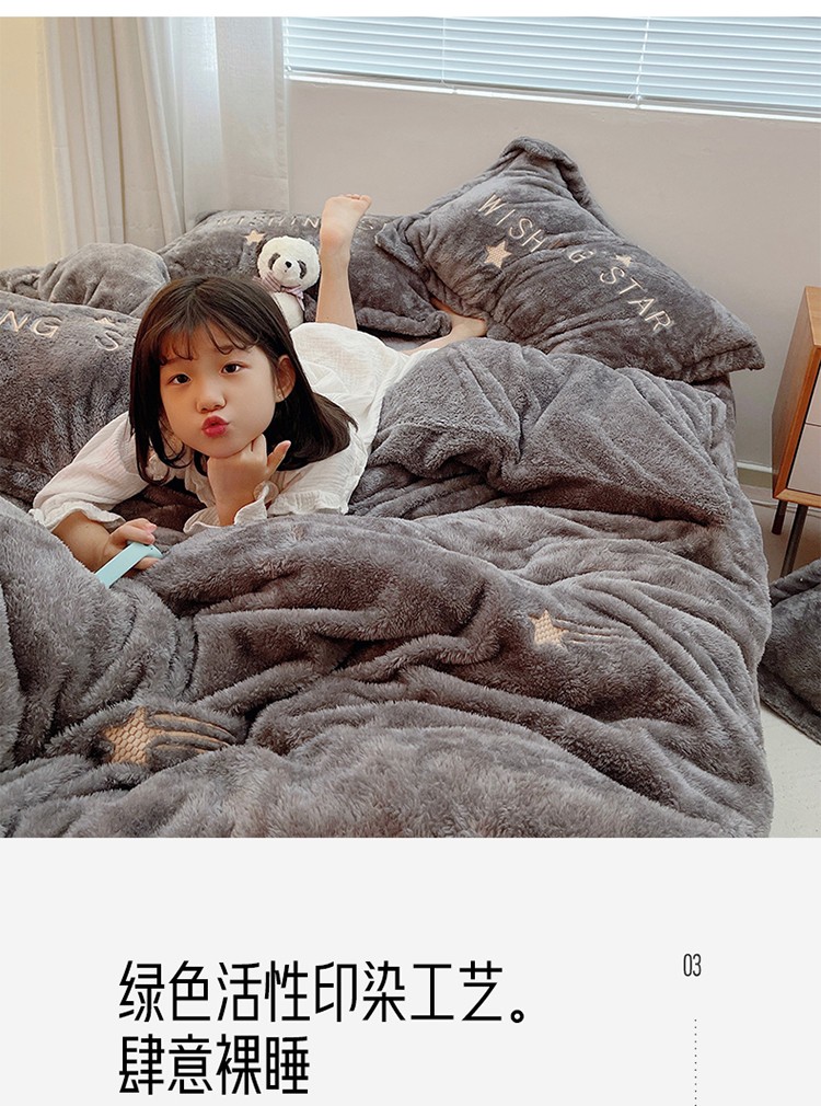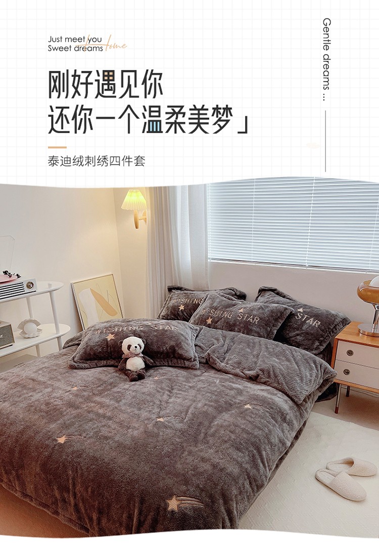 商品名称:雅居纺 2022新款泰迪绒绣花四件套拍摄风格1 许愿星-深灰