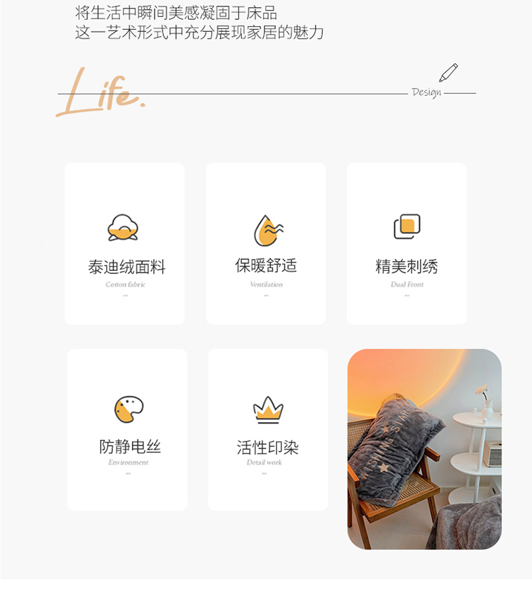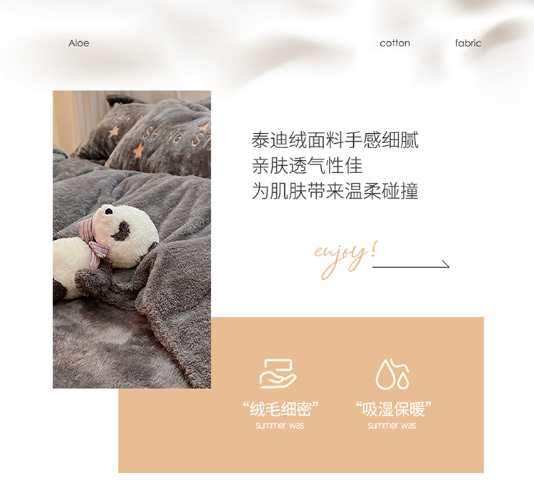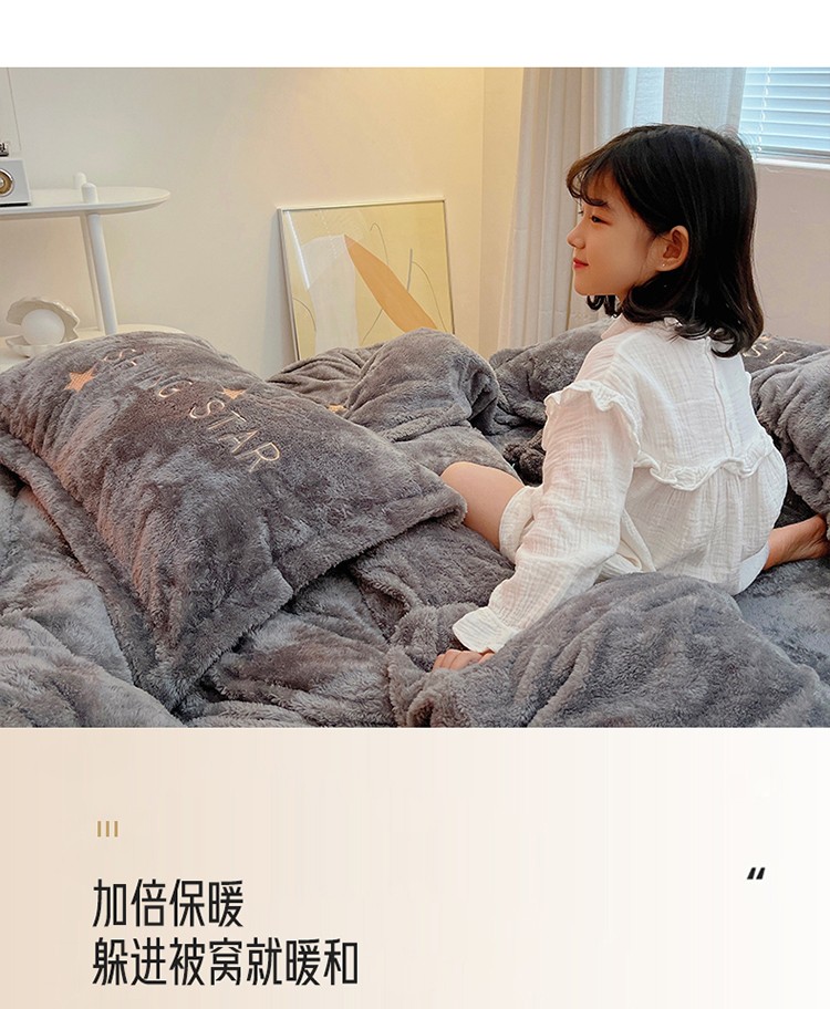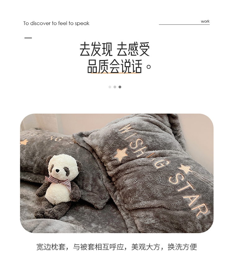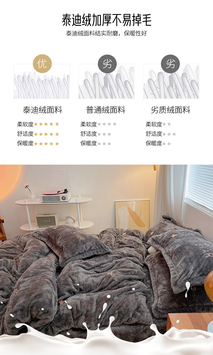 商品名称:雅居纺 2022新款泰迪绒绣花四件套拍摄风格1 许愿星-深灰