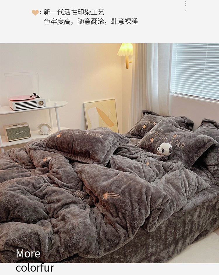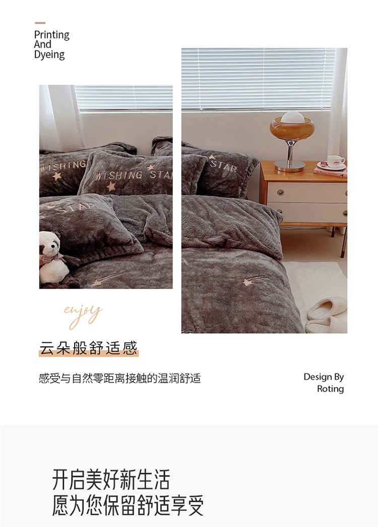 雅居纺 2022新款泰迪绒绣花四件套拍摄风格1 许愿星-深灰