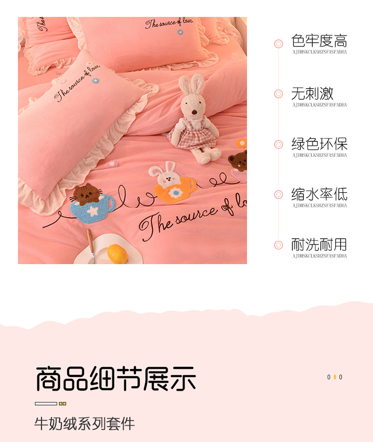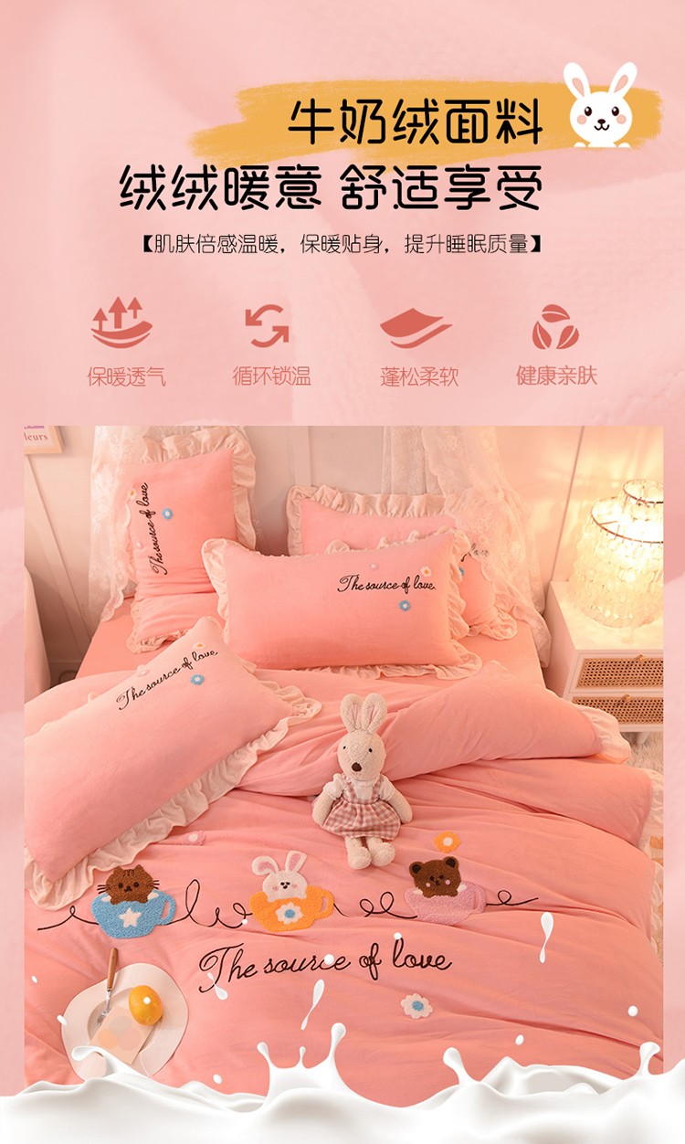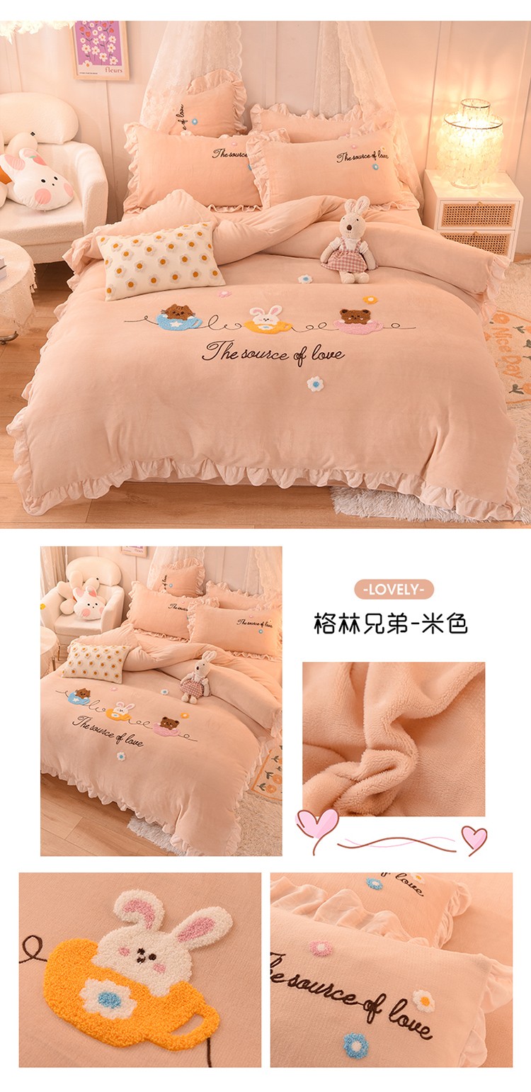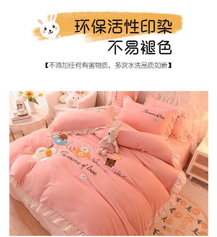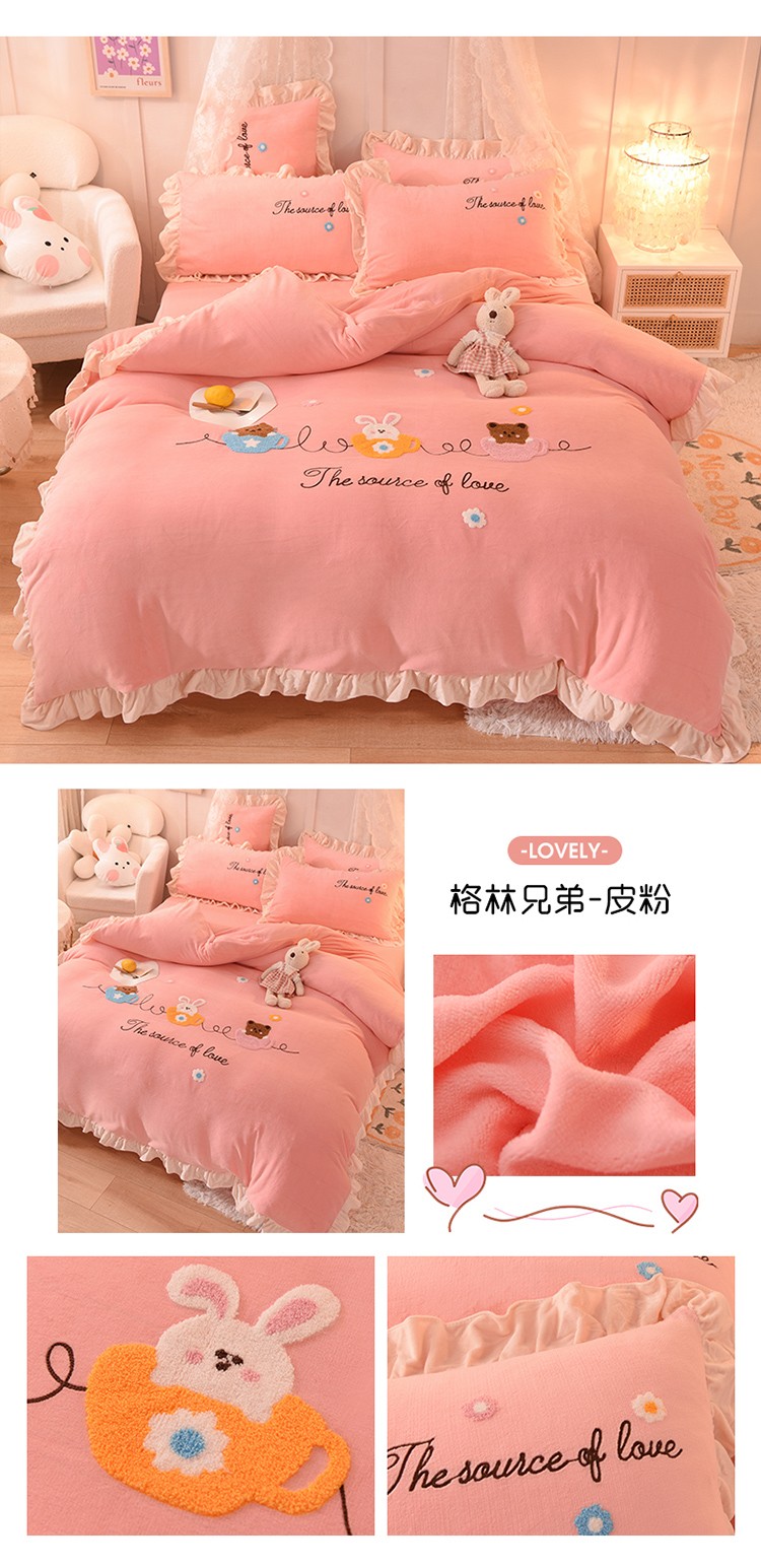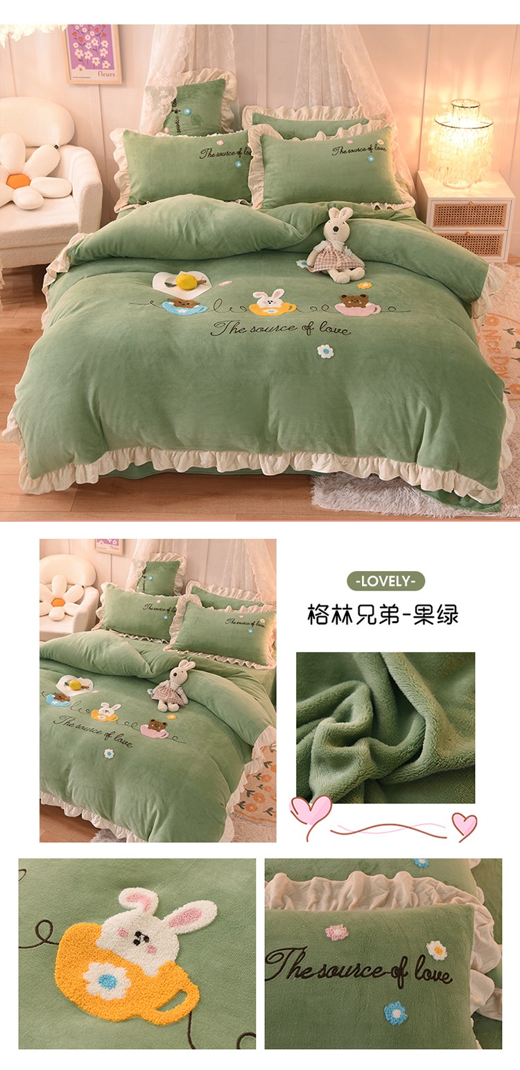 总大米家居2024款爱心兔兔绒双层牛奶绒花边雕花绒兔毛四件套多巴胺色系,多巴胺-绿,多巴胺-白,多巴胺-粉,多巴胺-黄,多巴胺-蓝