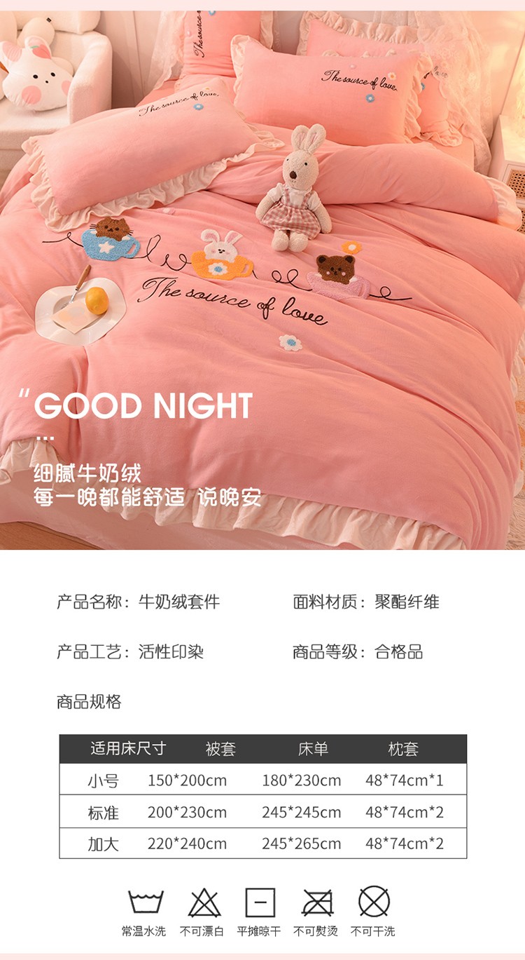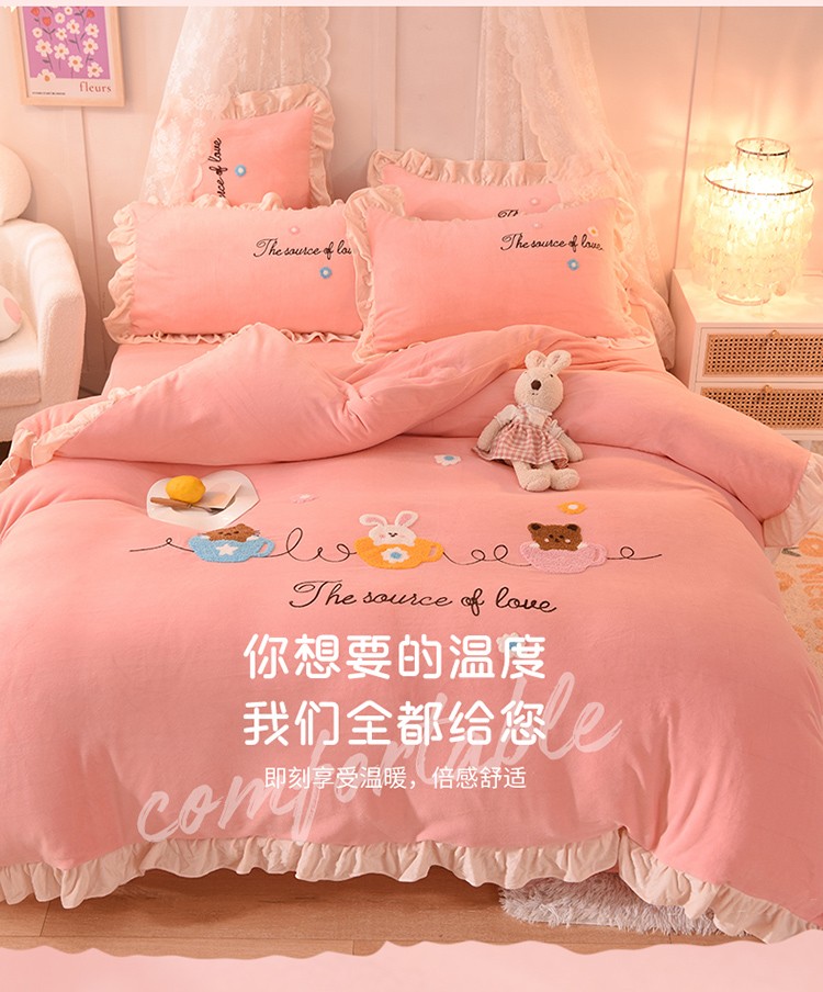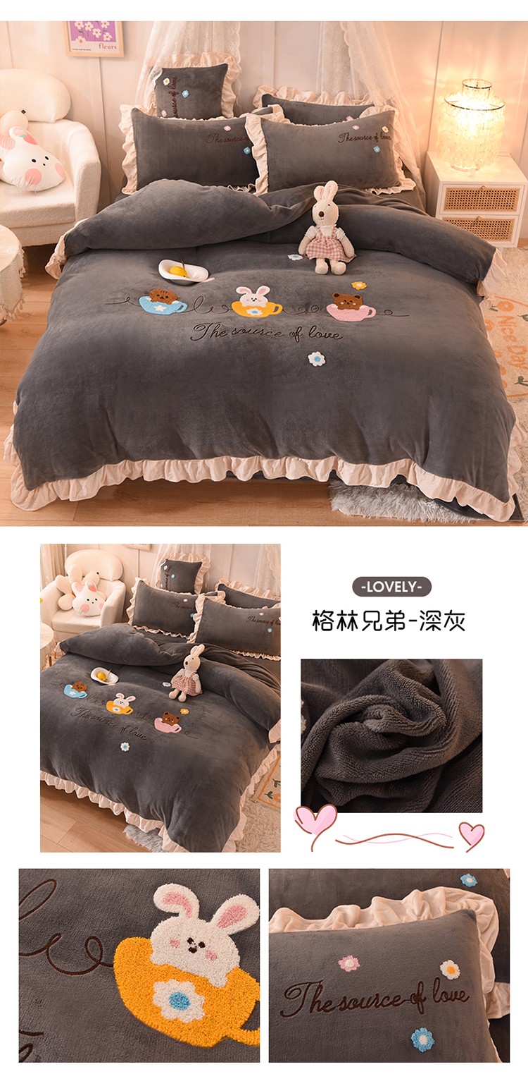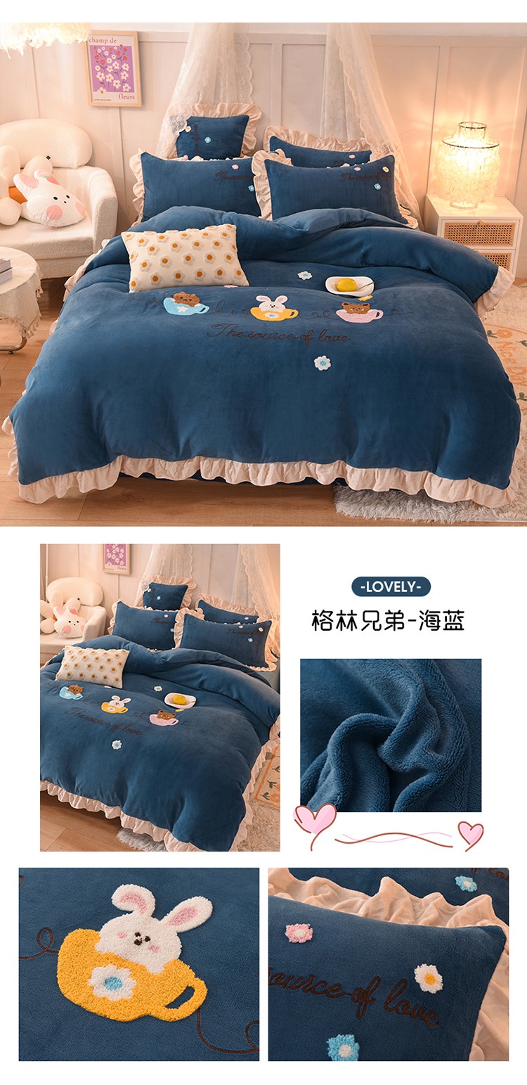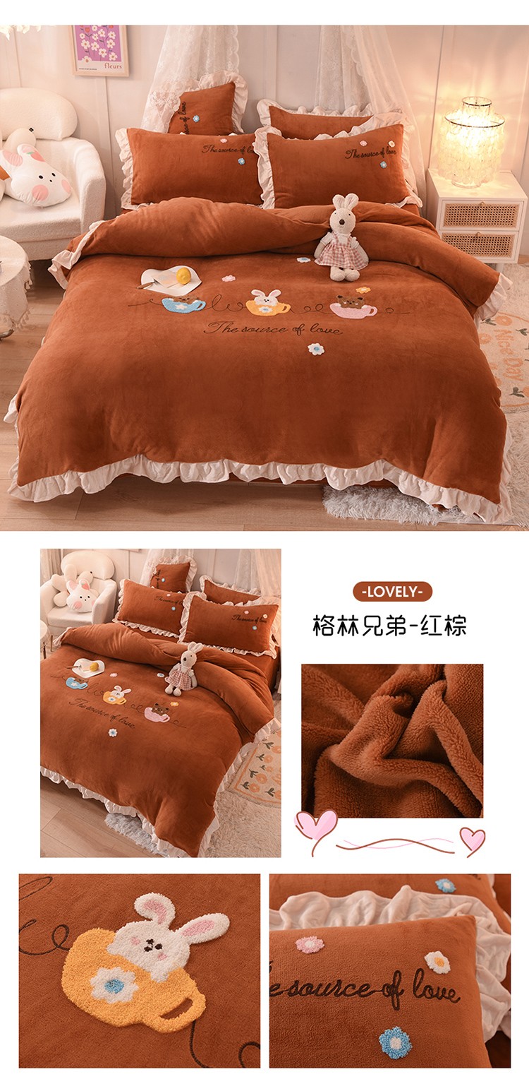总大米家居2024款爱心兔兔绒双层牛奶绒花边雕花绒兔毛四件套多巴胺色系,多巴胺-绿,多巴胺-白,多巴胺-粉,多巴胺-黄,多巴胺-蓝