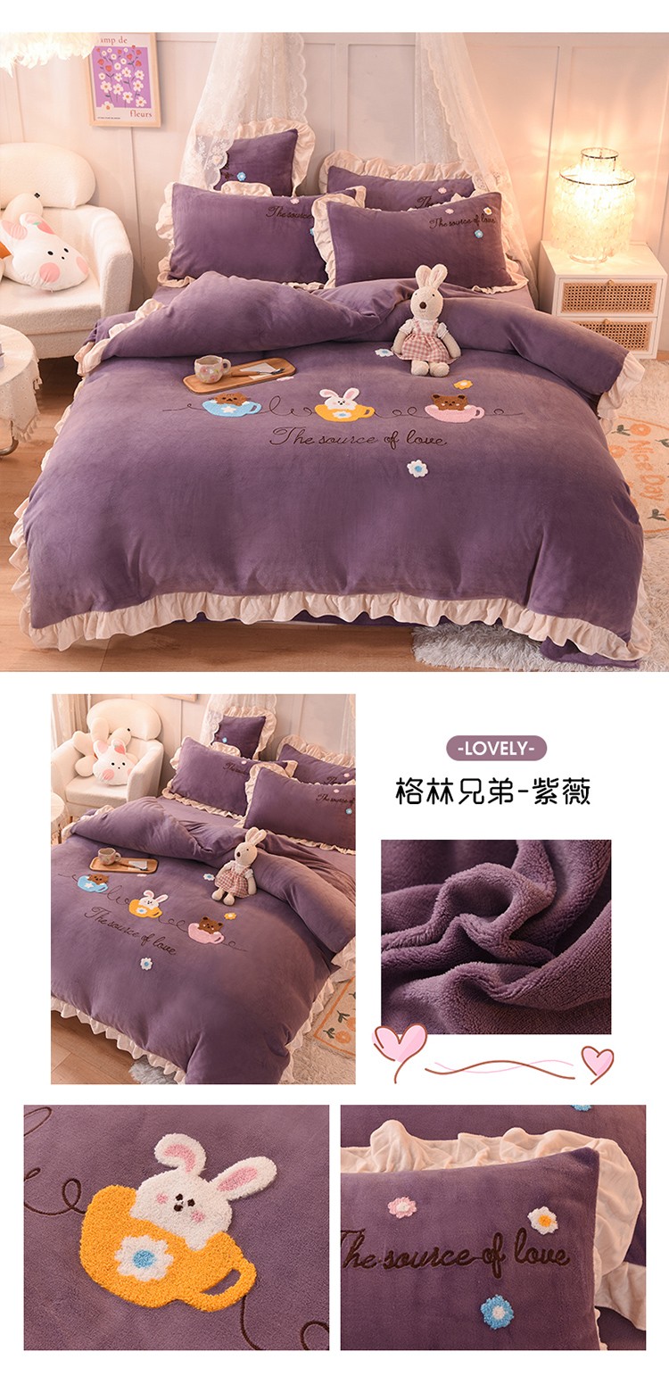 (总)大米家居 2025新款宽边刺绣牛奶绒四件套-罗曼蒂克系列,罗曼蒂克-芭蕾粉,罗曼蒂克-克莱因蓝,罗曼蒂克-莫兰迪绿,罗曼蒂克-暮山紫,罗曼蒂克-奶油橙,罗曼蒂克-星空灰