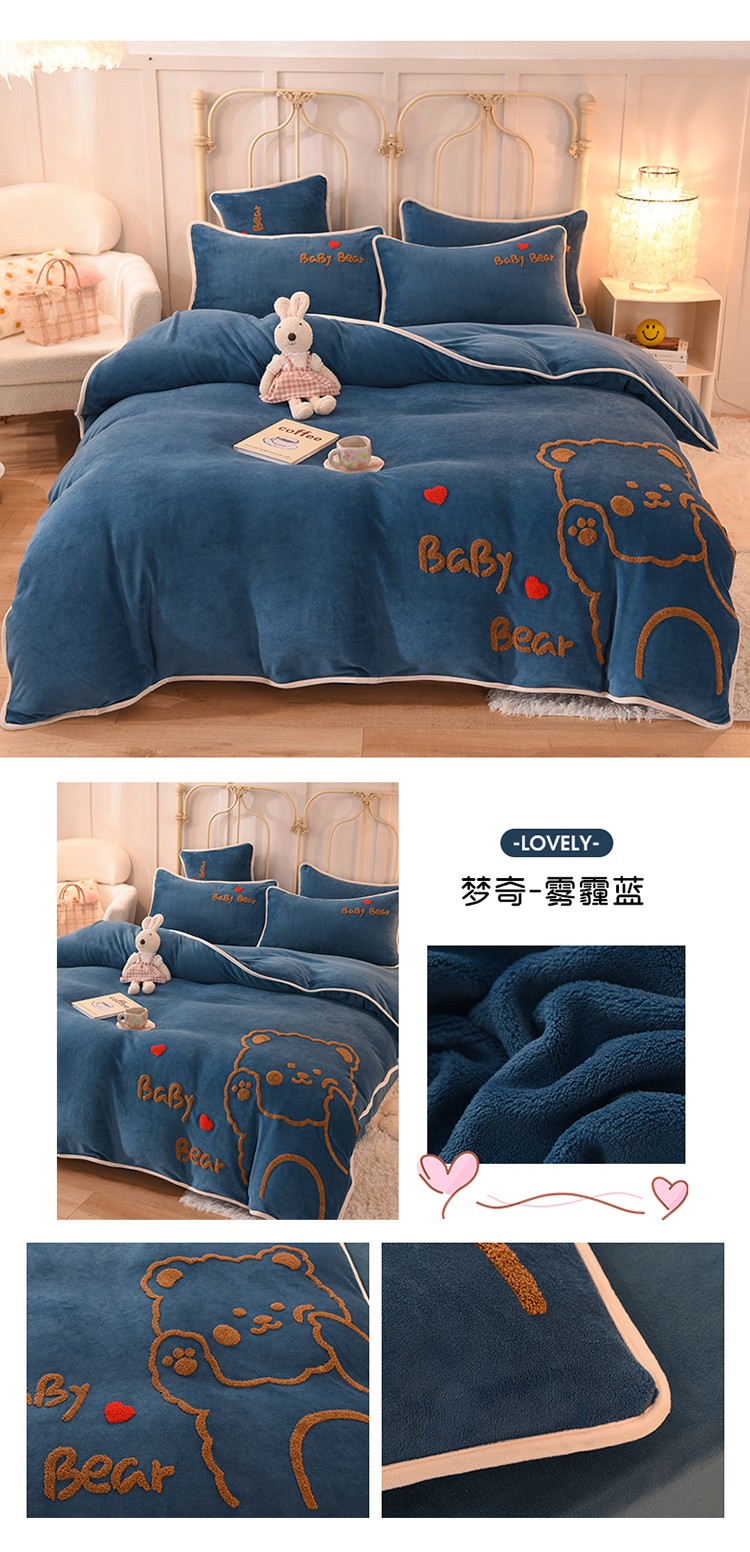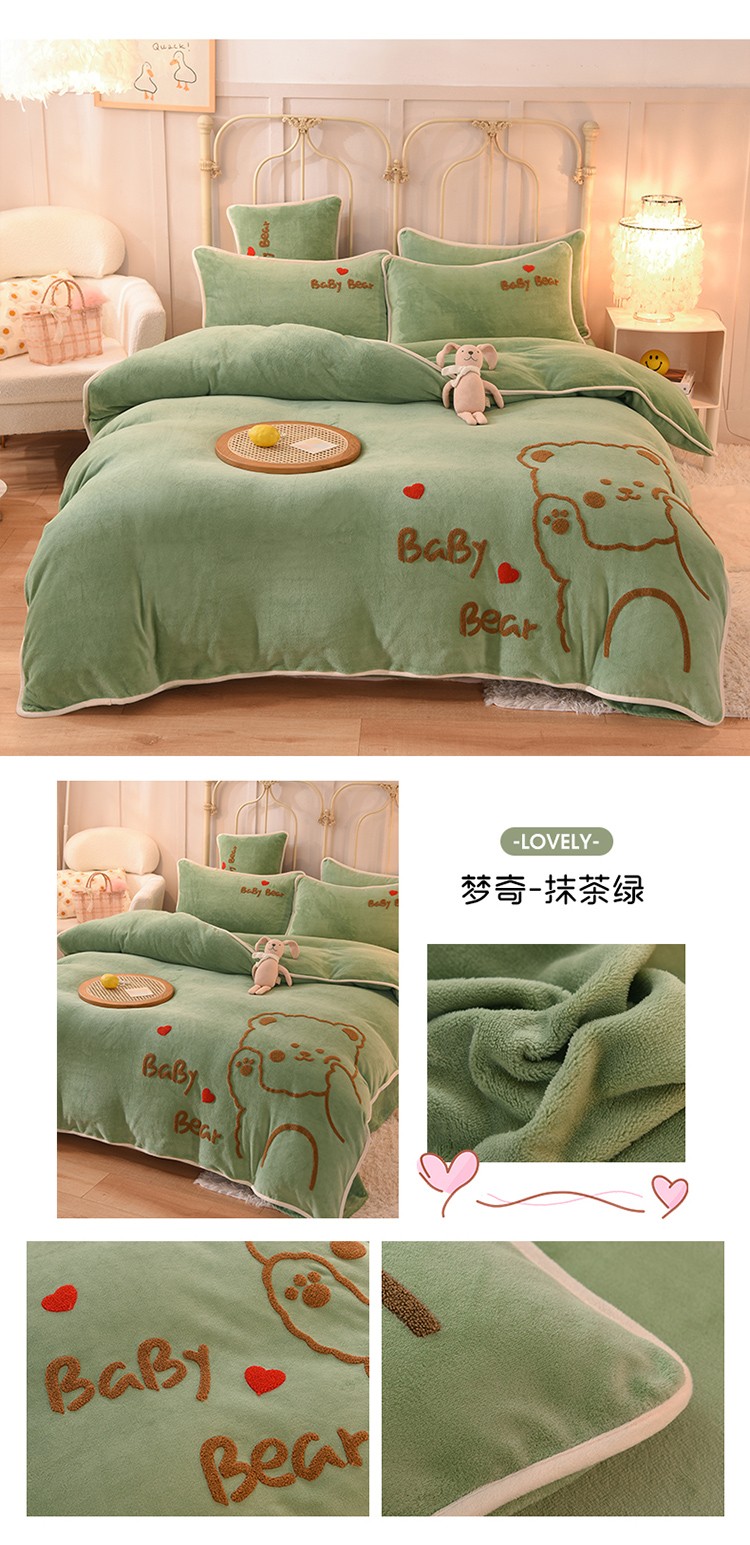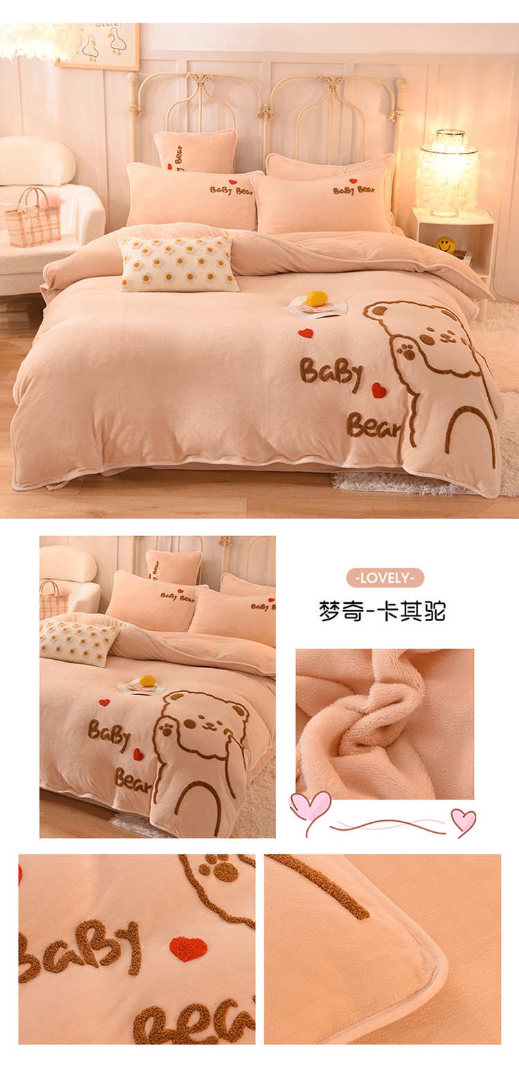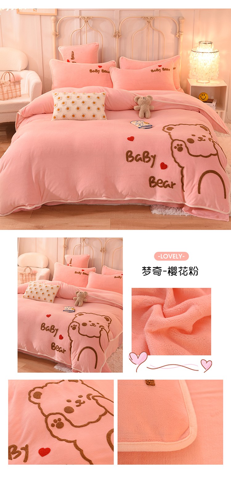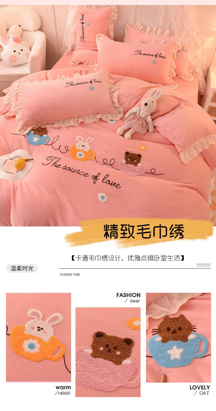 (总)大米家居2023新款卡通毛巾绣牛奶绒刺绣宝宝绒四件套