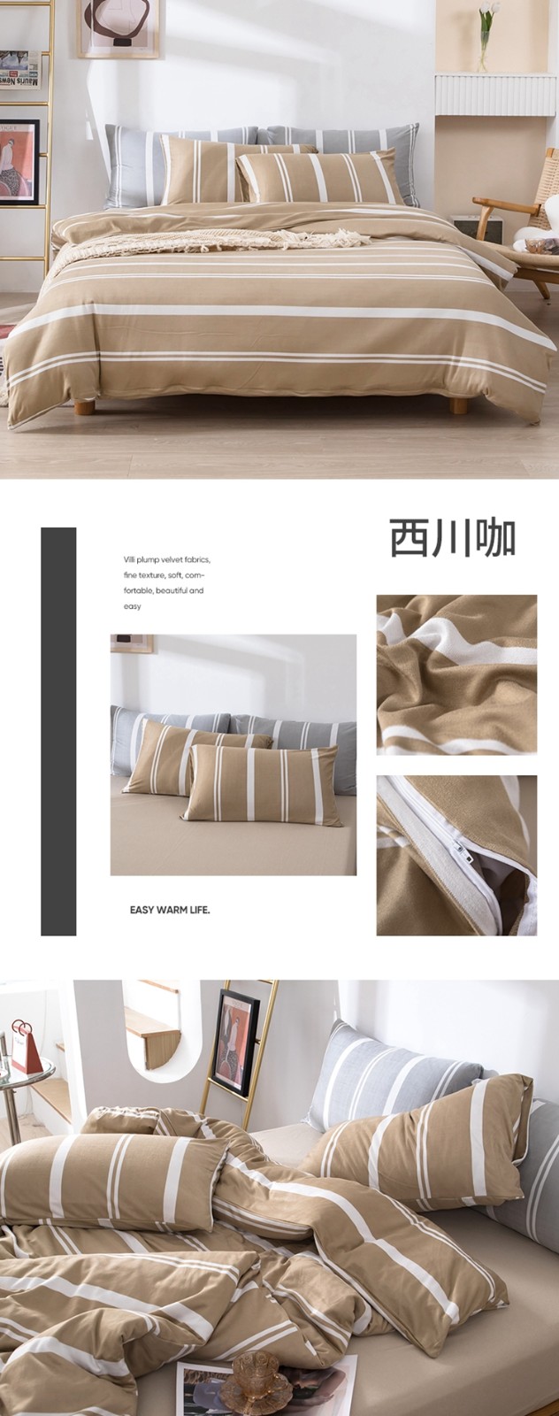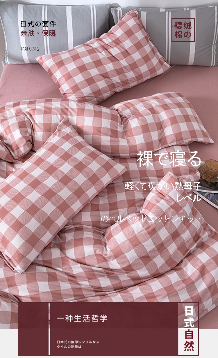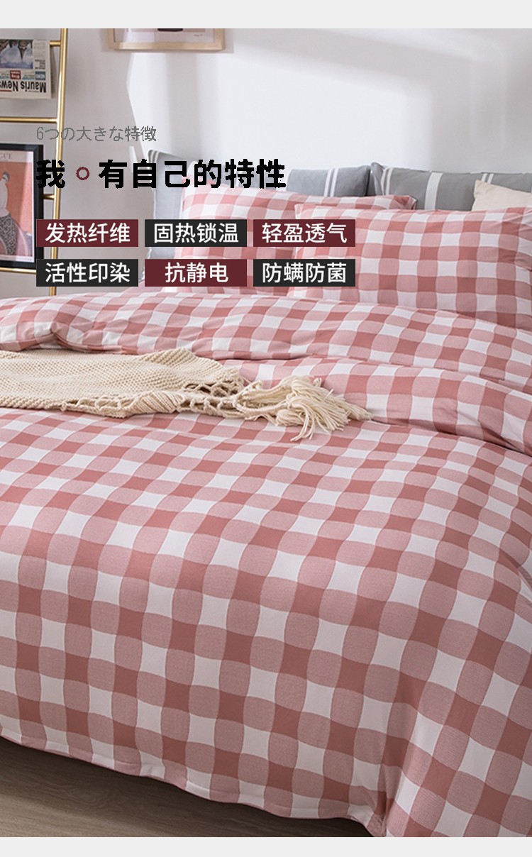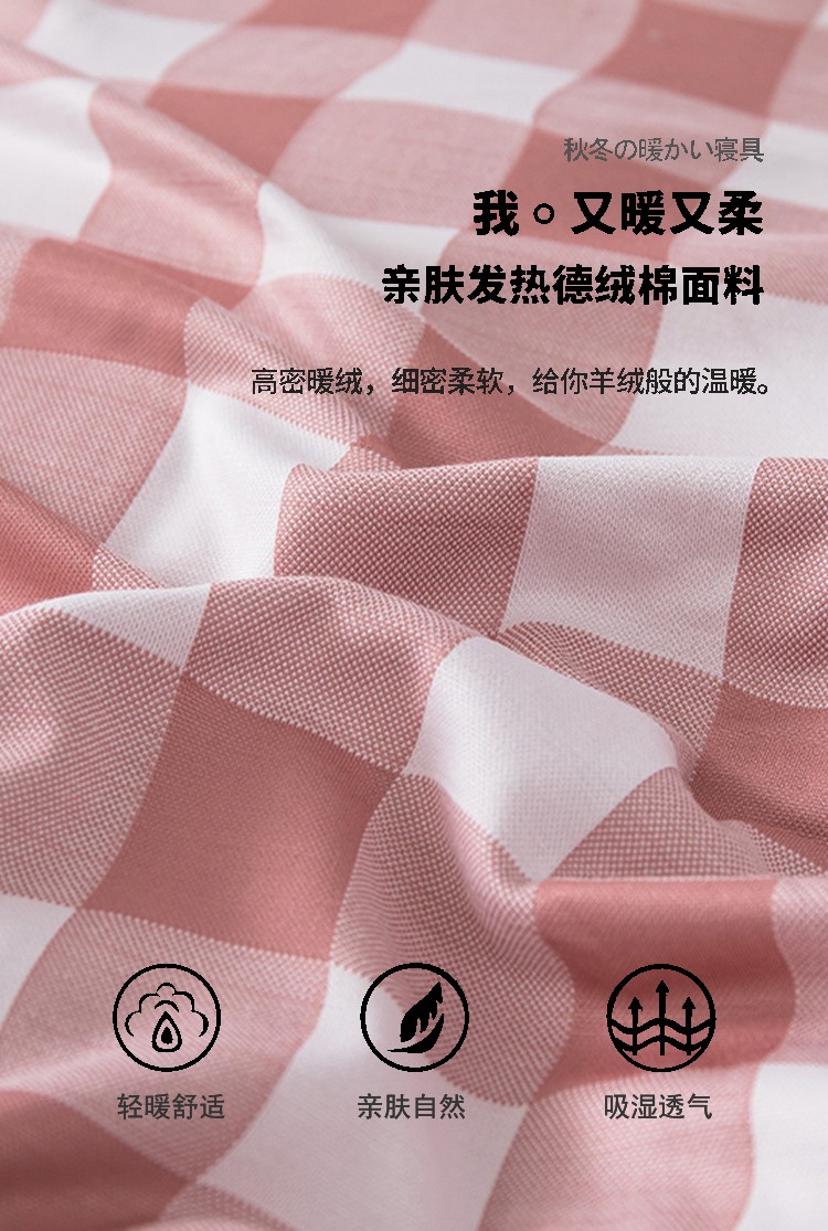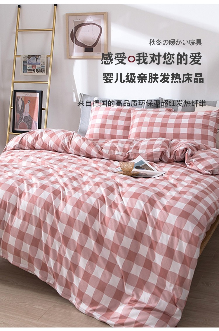 山舍日式无印风简约自发热针织提花纯色德绒条纹格子四件套 格调豆沙