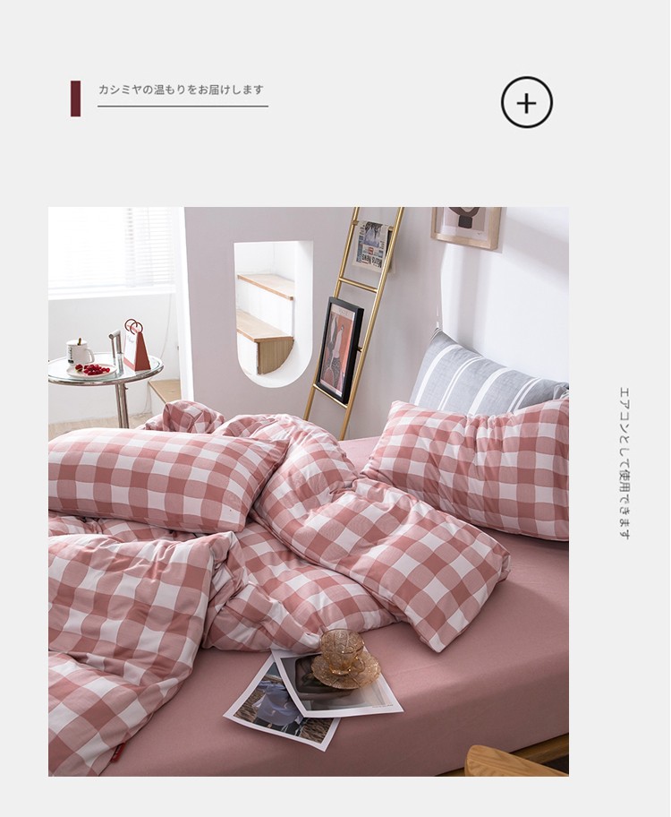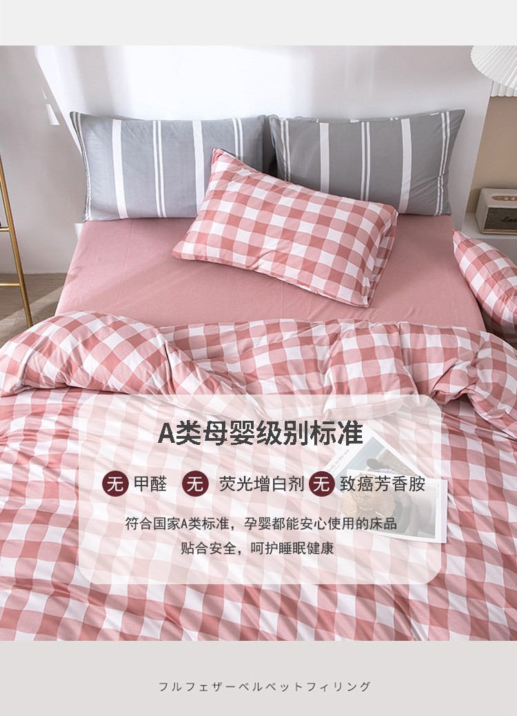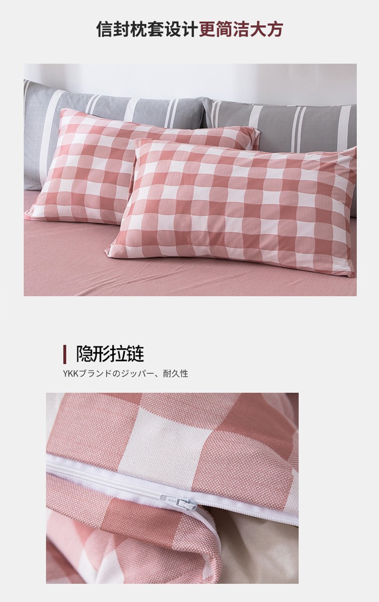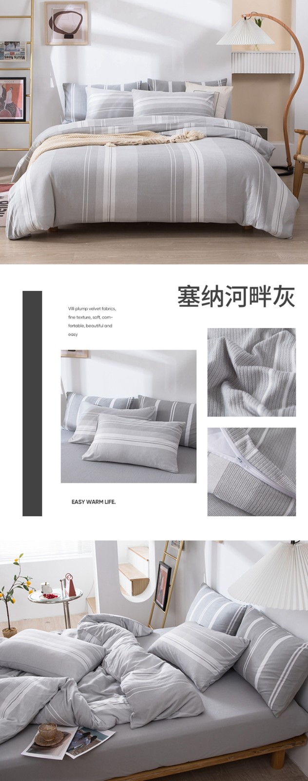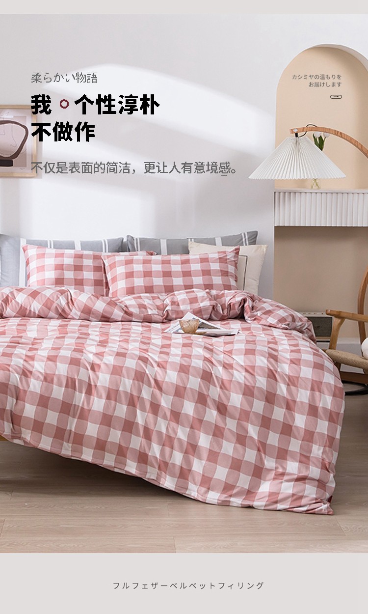 山舍日式无印风简约自发热针织提花纯色德绒条纹格子四件套 格调豆沙