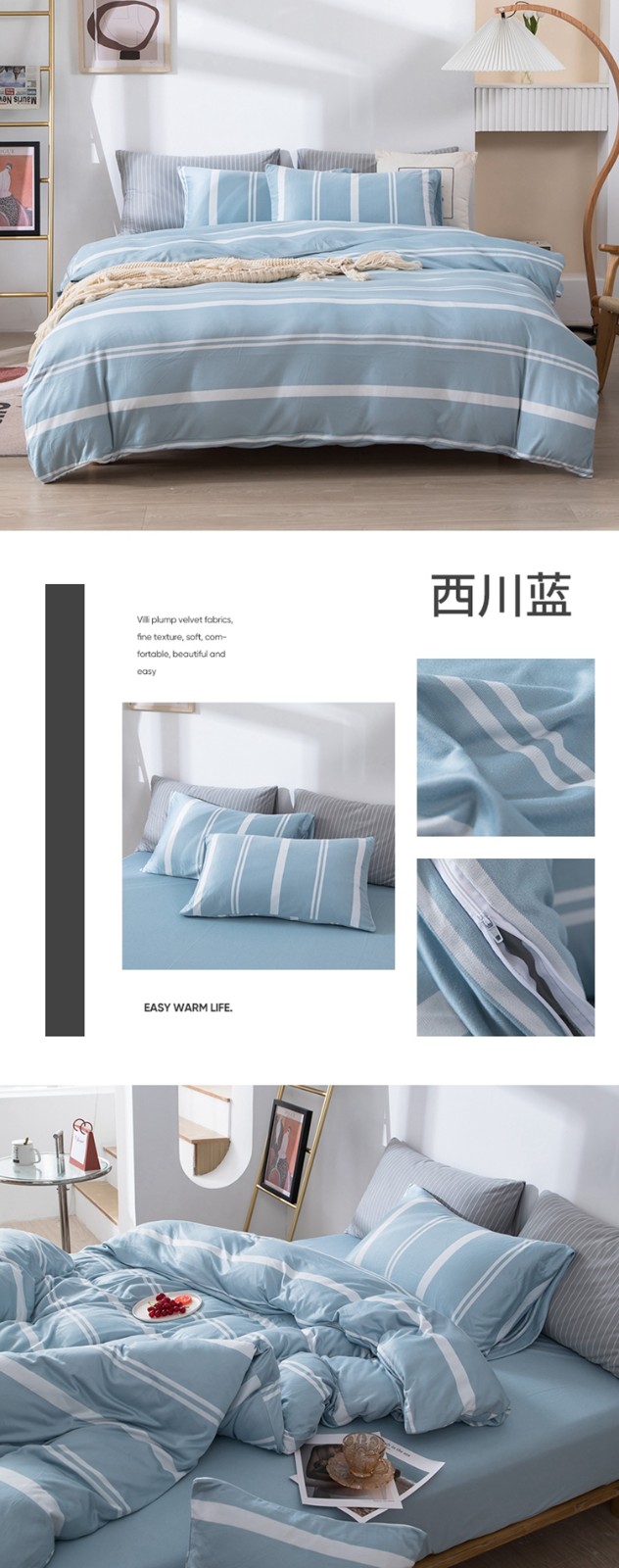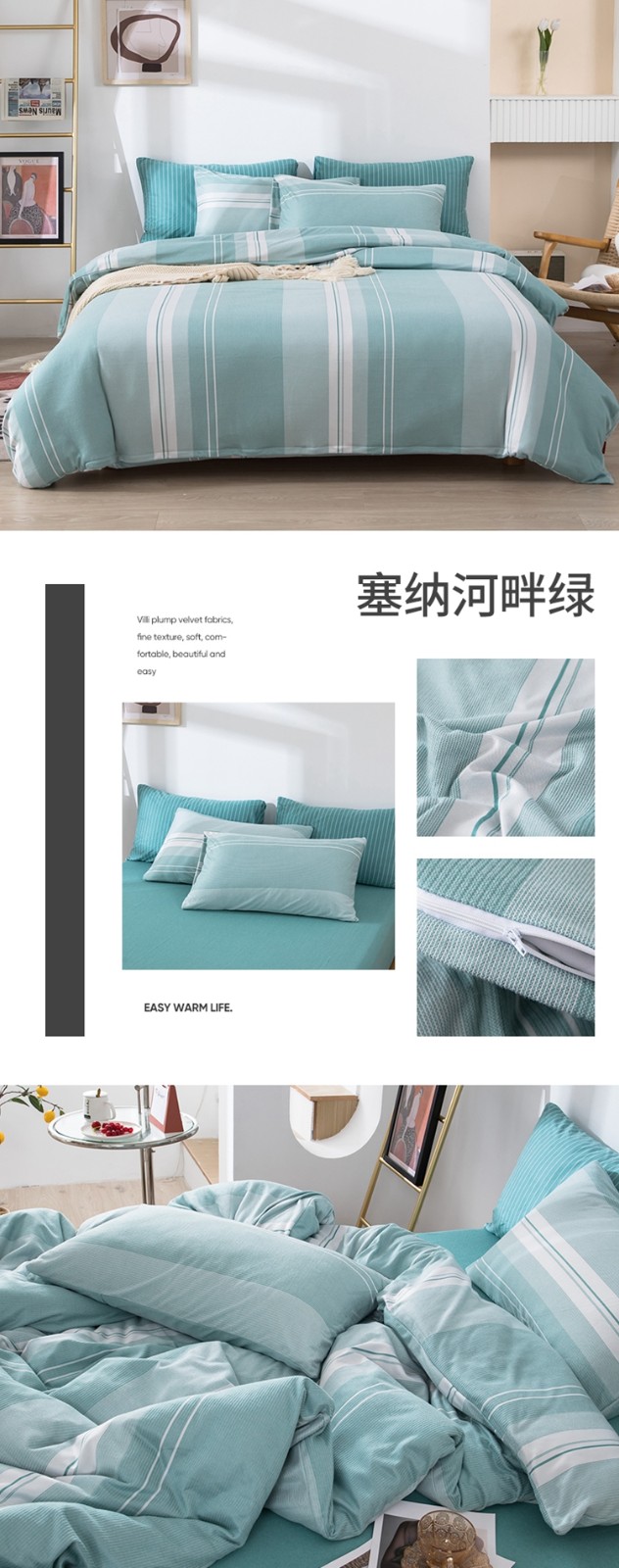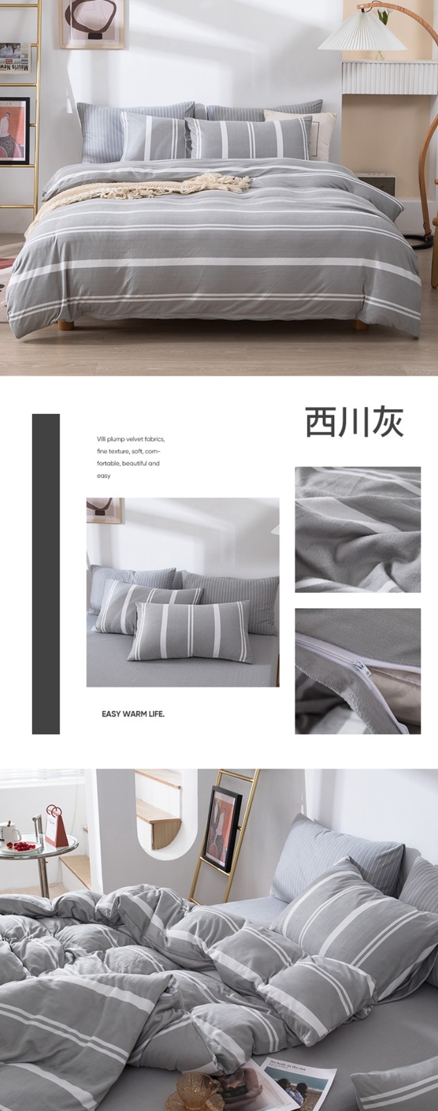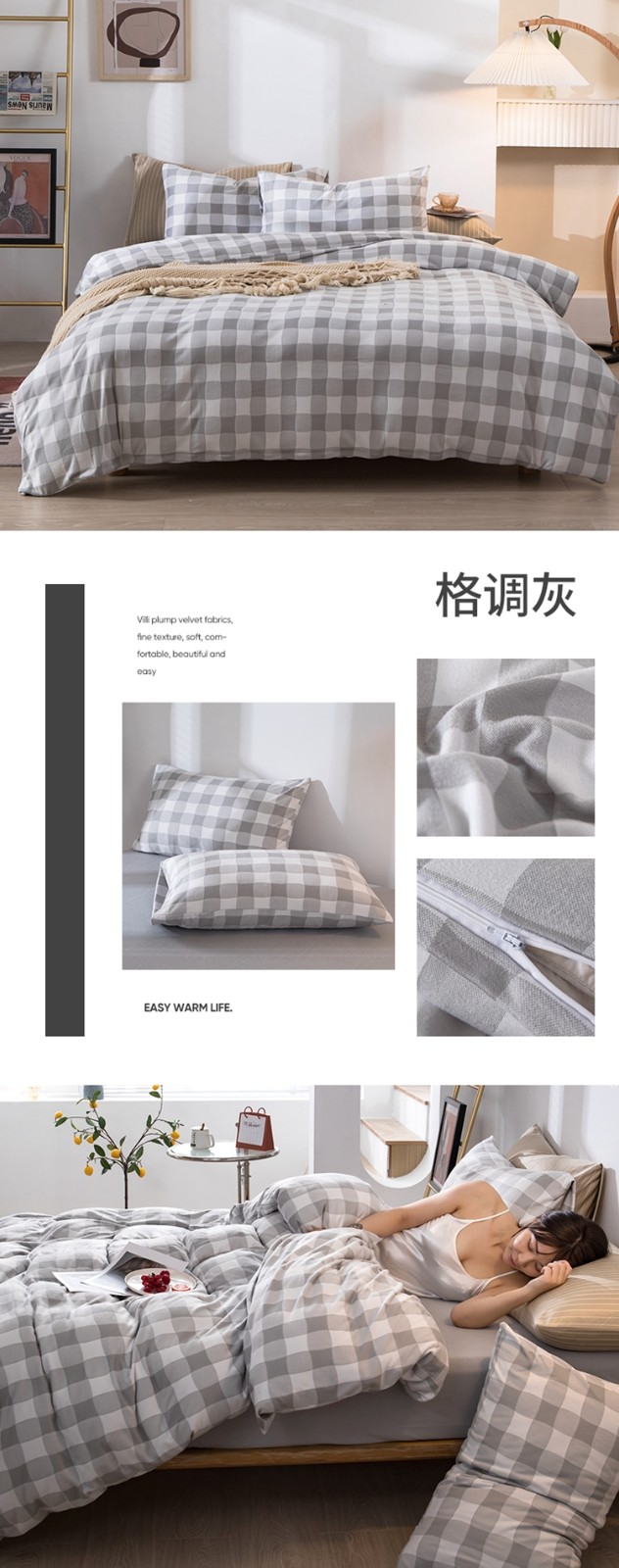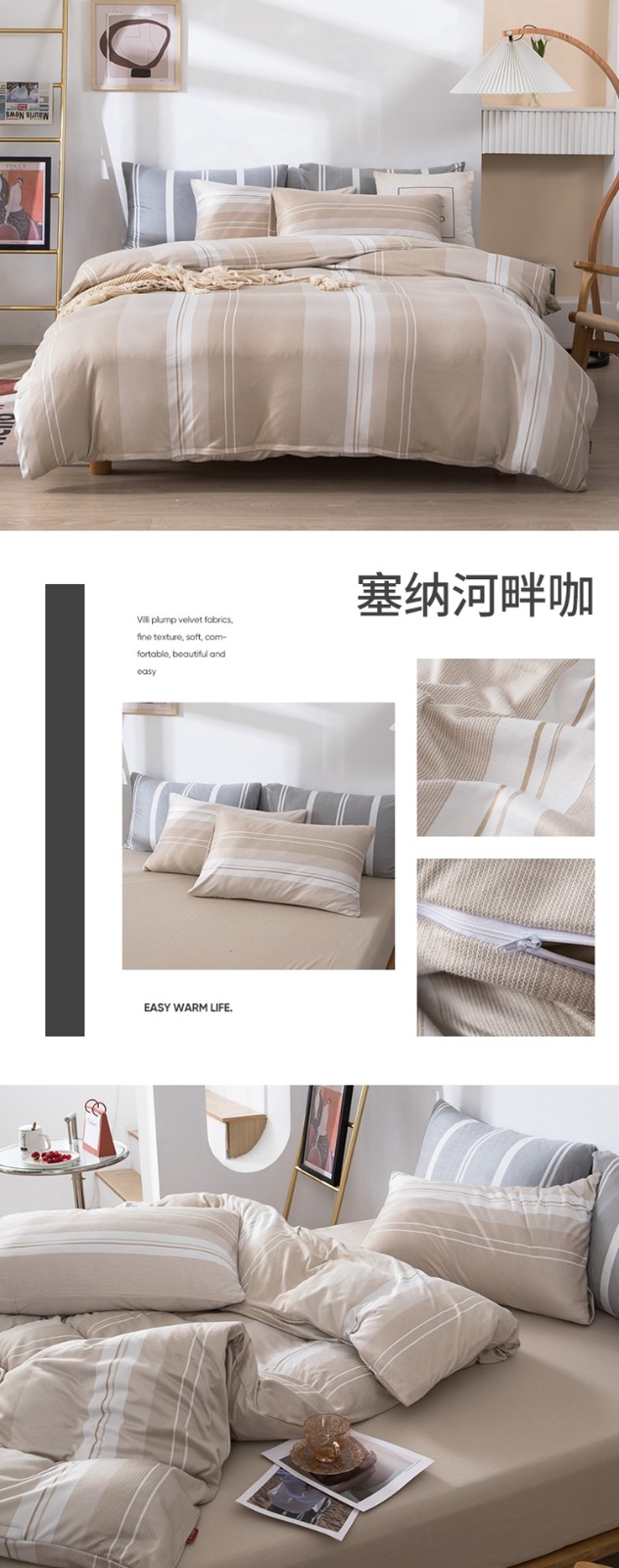 商品名称:山舍日式无印风简约自发热针织提花纯色德绒条纹格子四件套 格调豆沙