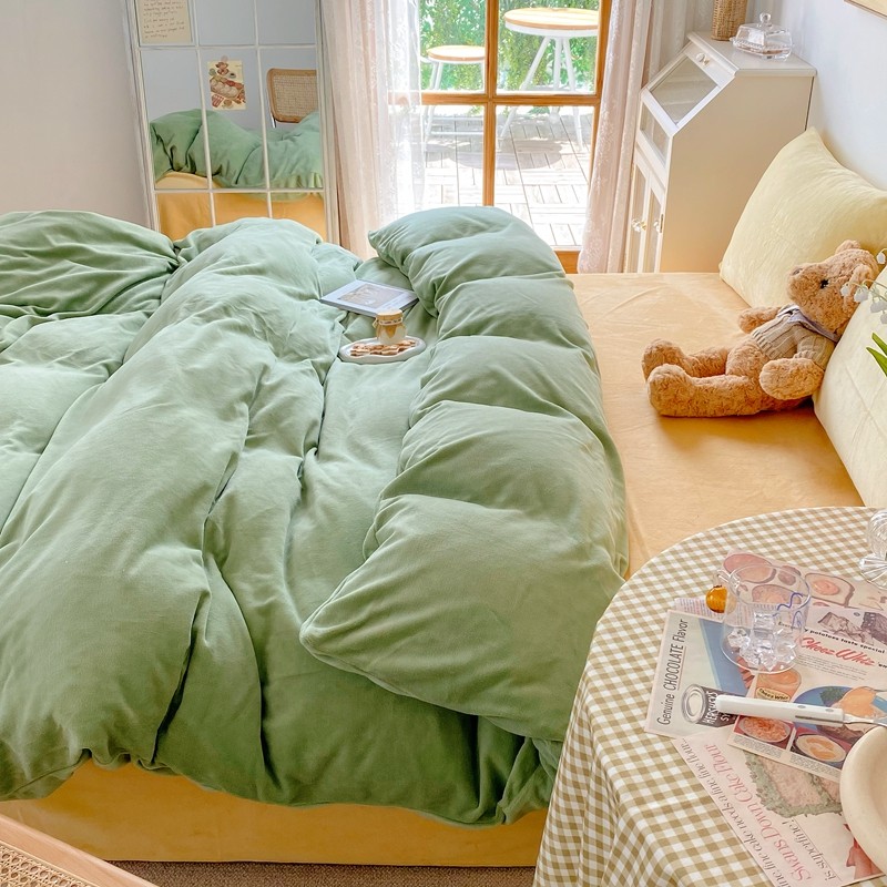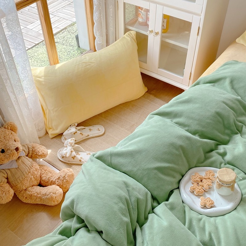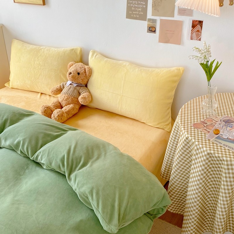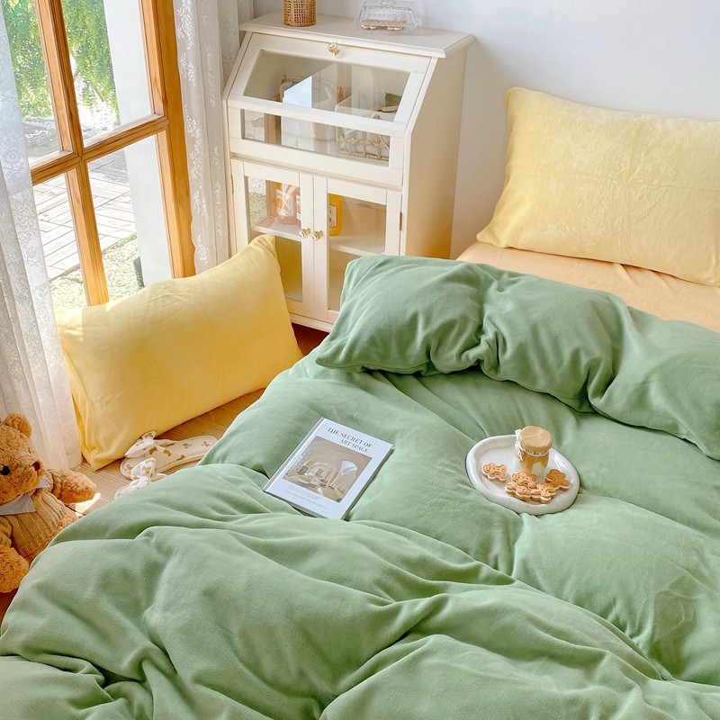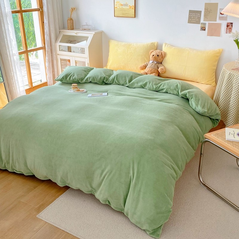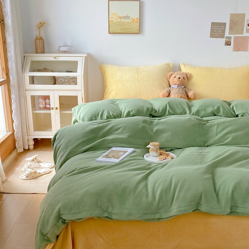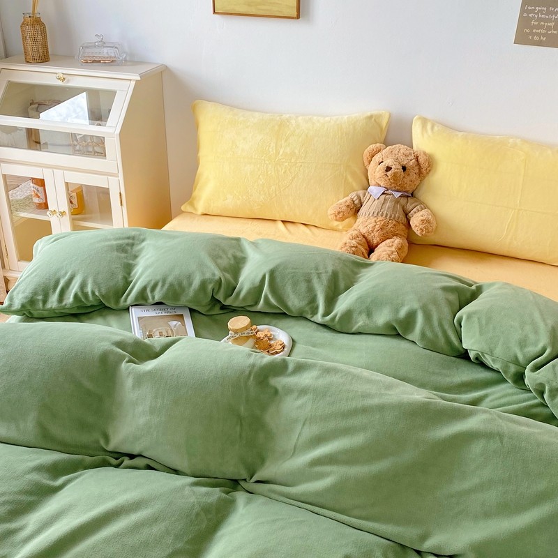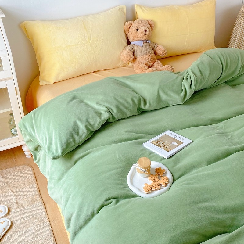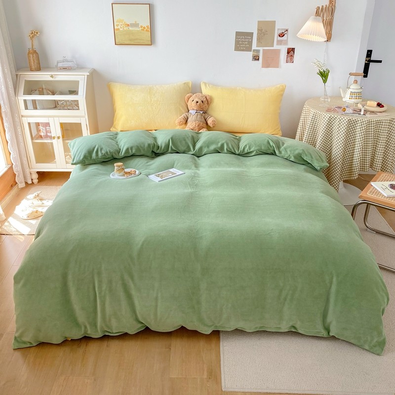 商品名称:星期八 2021新款马卡龙牛奶绒四件套 绿-黄