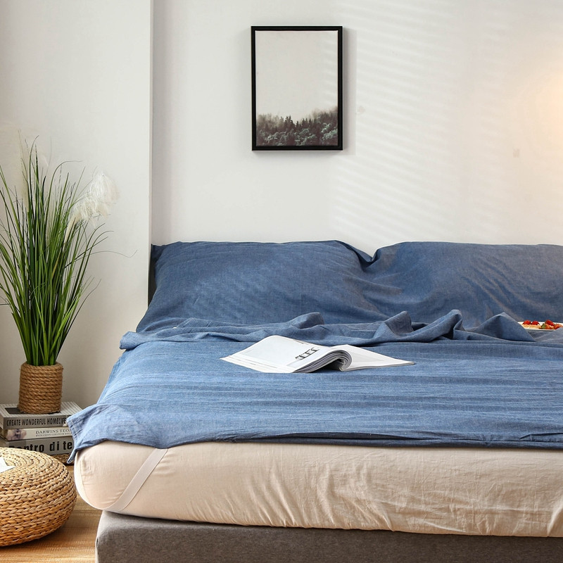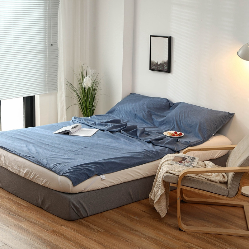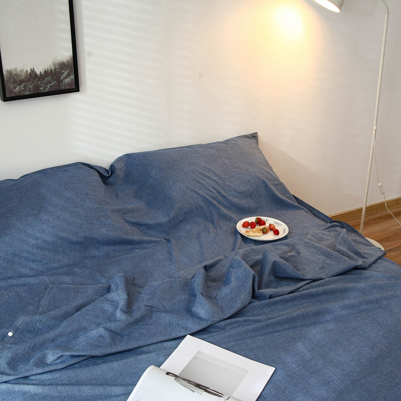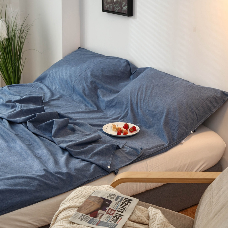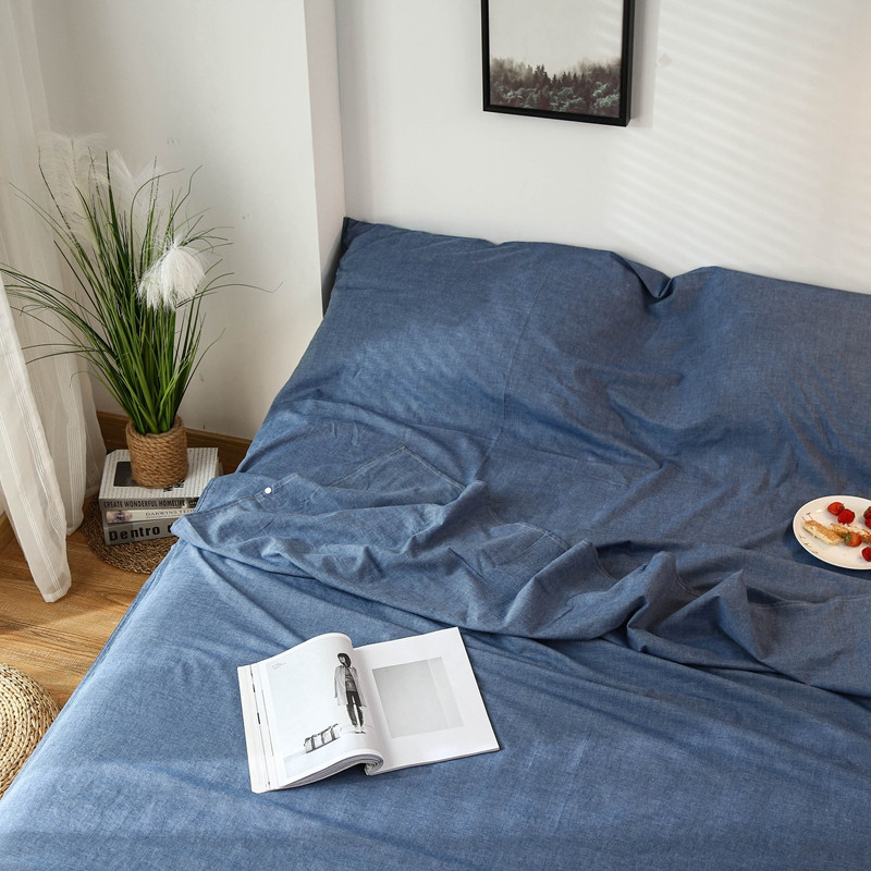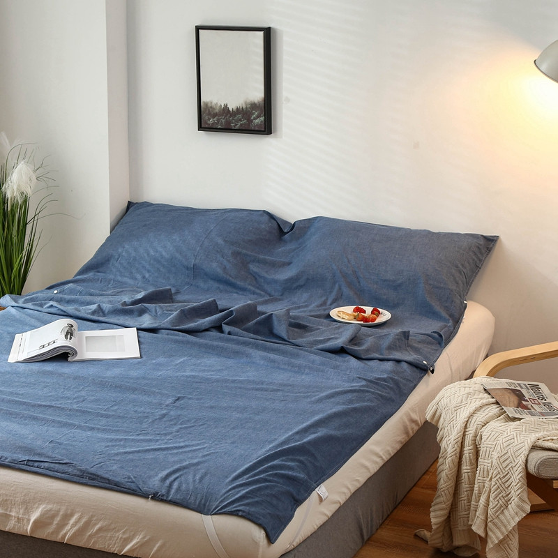 安莱生活 2021新款全棉水洗棉色织睡袋 牛仔蓝