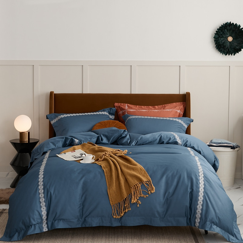 商品名称:涞澳家纺 2021新款50支全棉绣花四件套 西格-法蓝