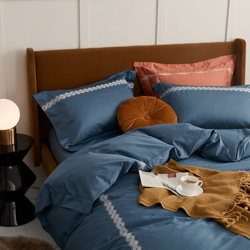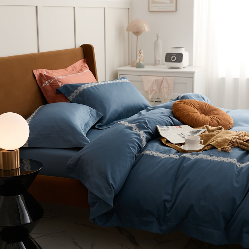涞澳家纺 2021新款50支全棉绣花四件套 西格-法蓝