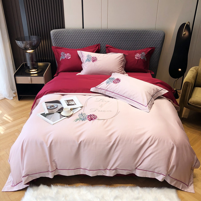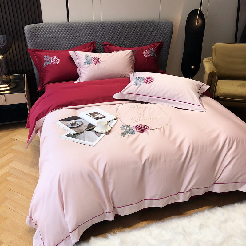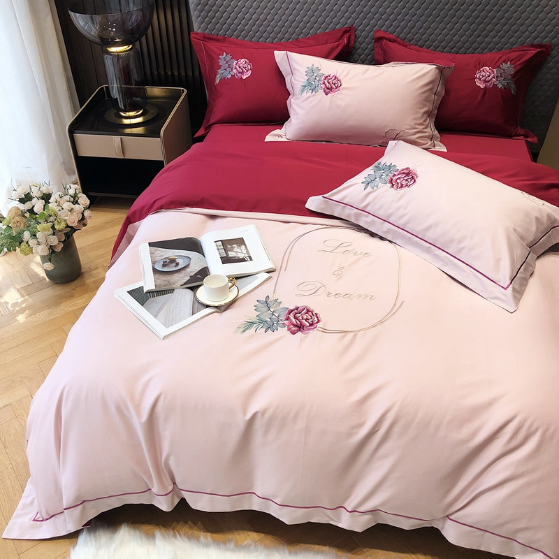 涞澳家纺 2021新款100支全棉长绒棉工艺款四件套-唯爱 粉