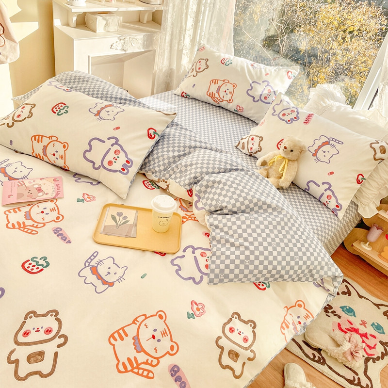 卡巴伦家纺 2023新款春夏全棉花漾年华四件套2 小老虎