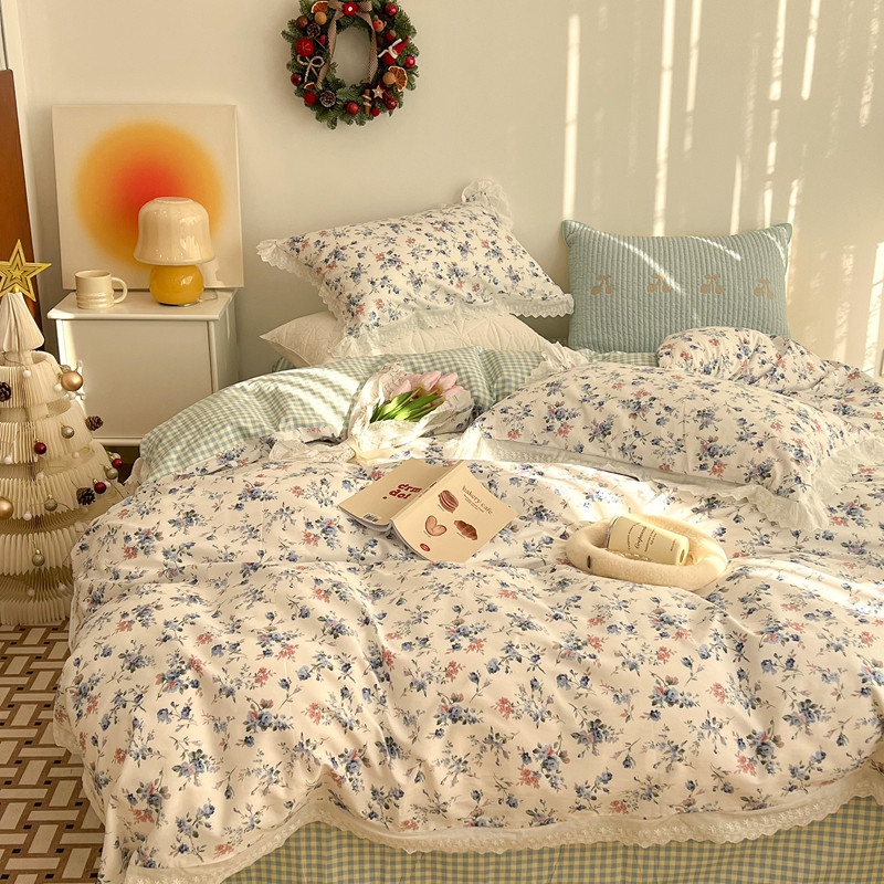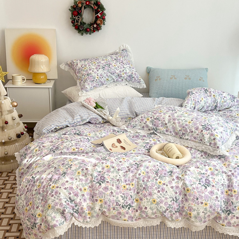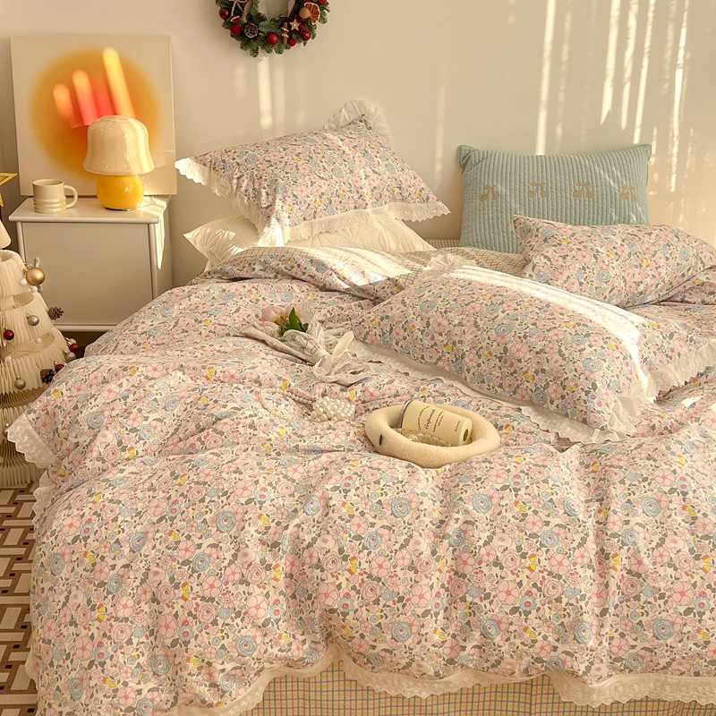(总)昔可家纺 2022新款全棉仙仙蕾丝碎花四件套