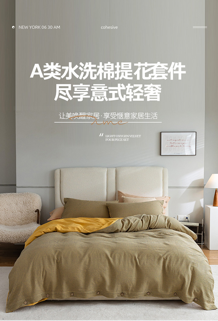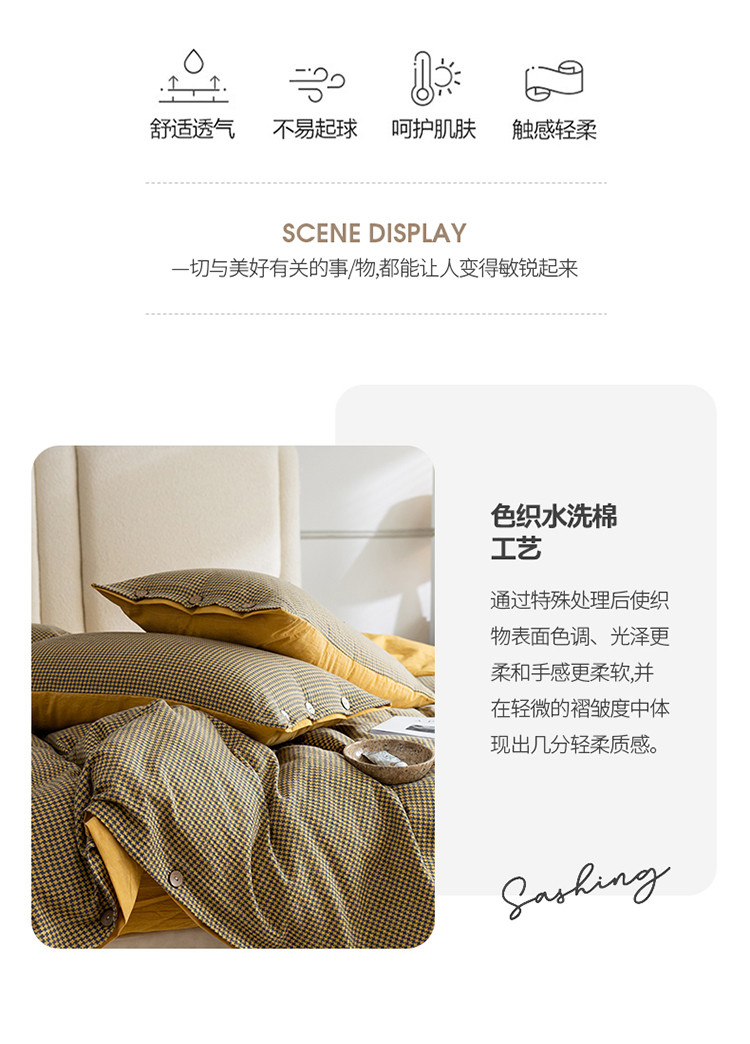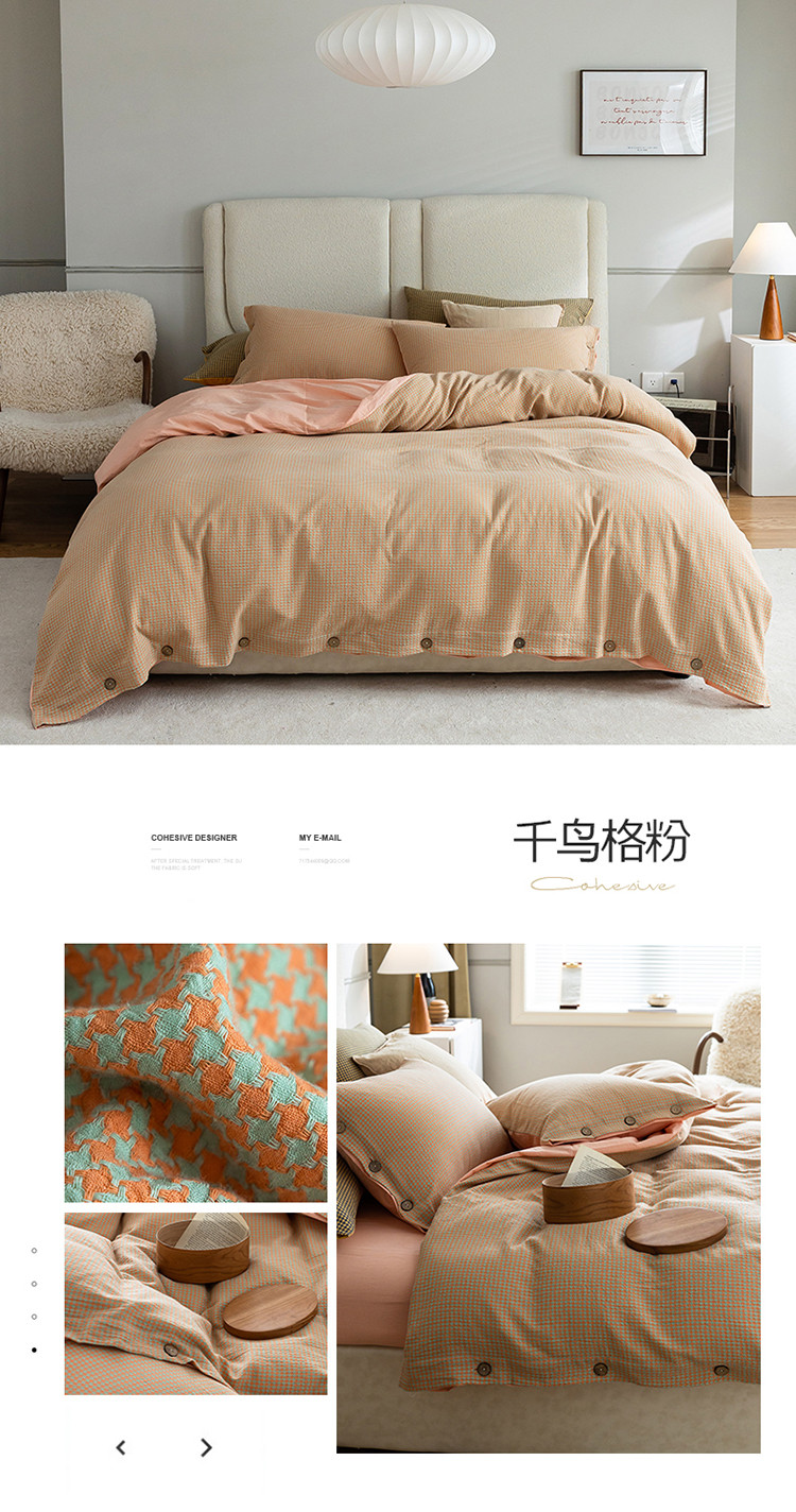 当前位置: 91家纺网 > 商品网购 > 床品套件 > 四件套 > 水洗棉四件套 > (总)寐眠2022新款A类水洗棉提花千鸟格四件套